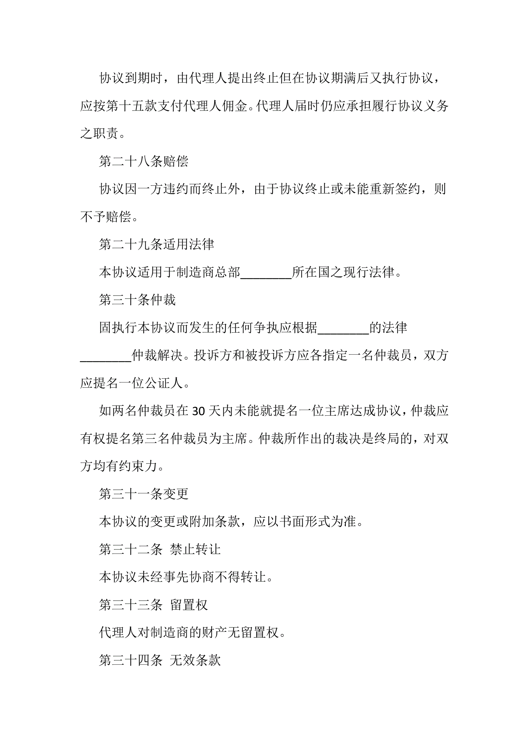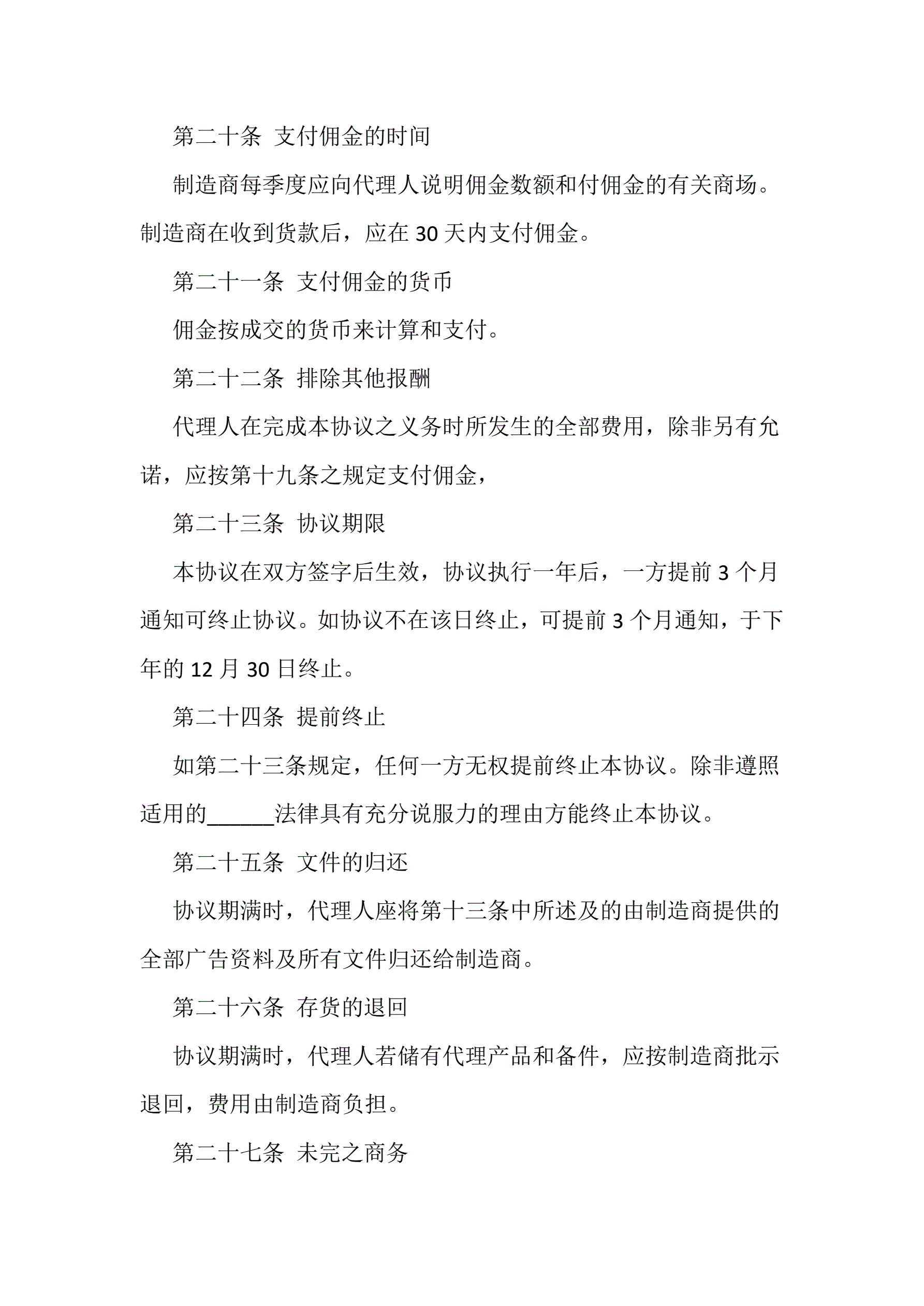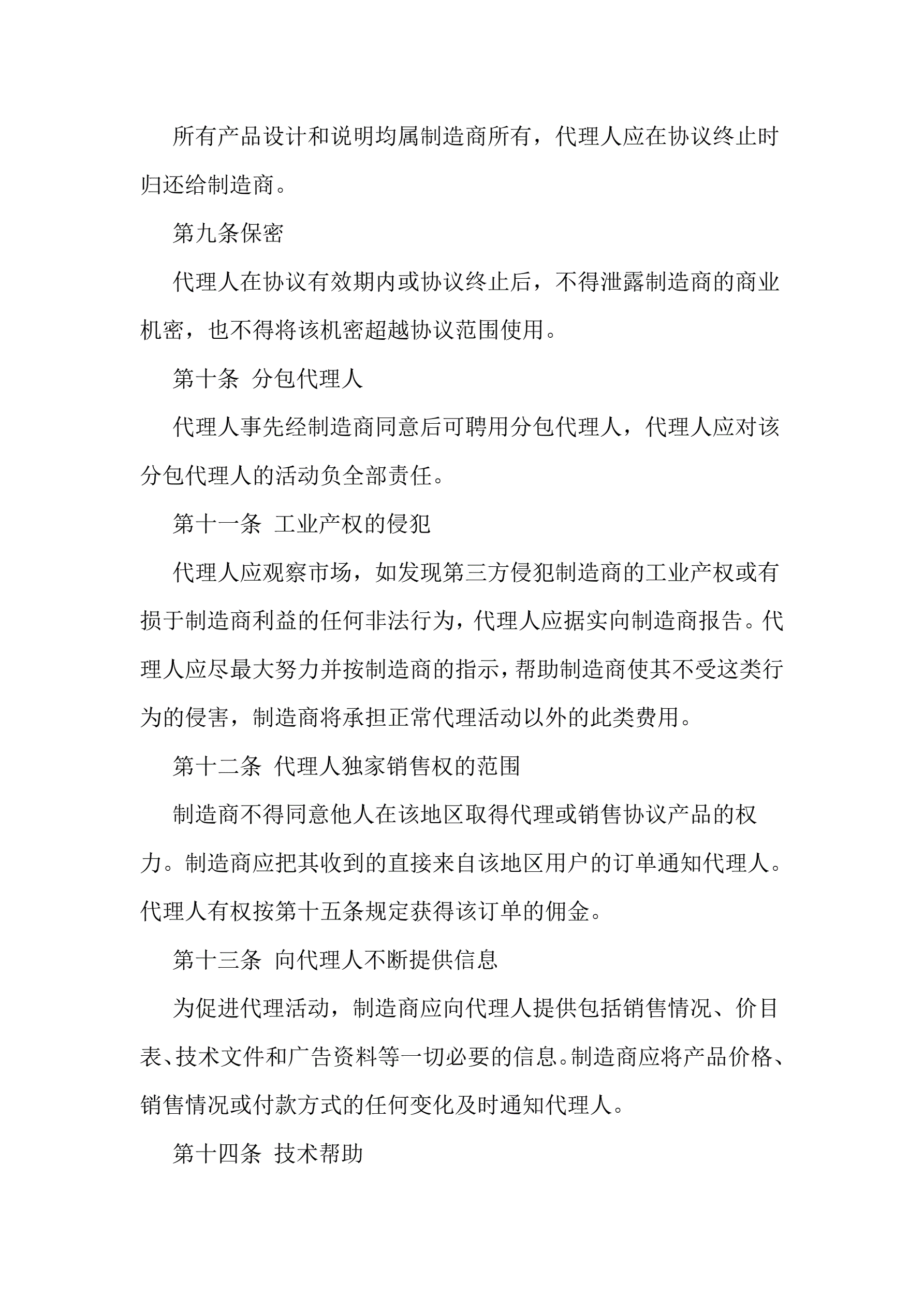 >独家代理产品销售协议