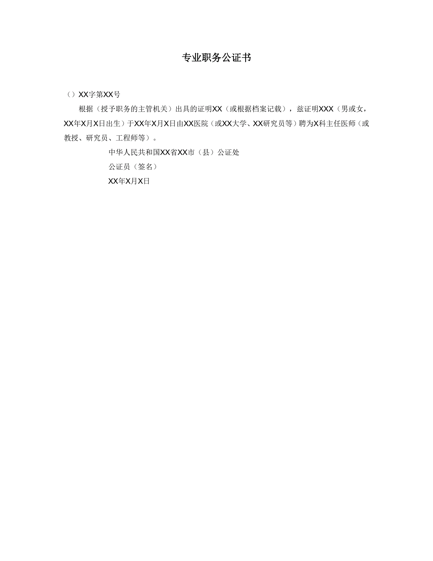 专业职务公证书