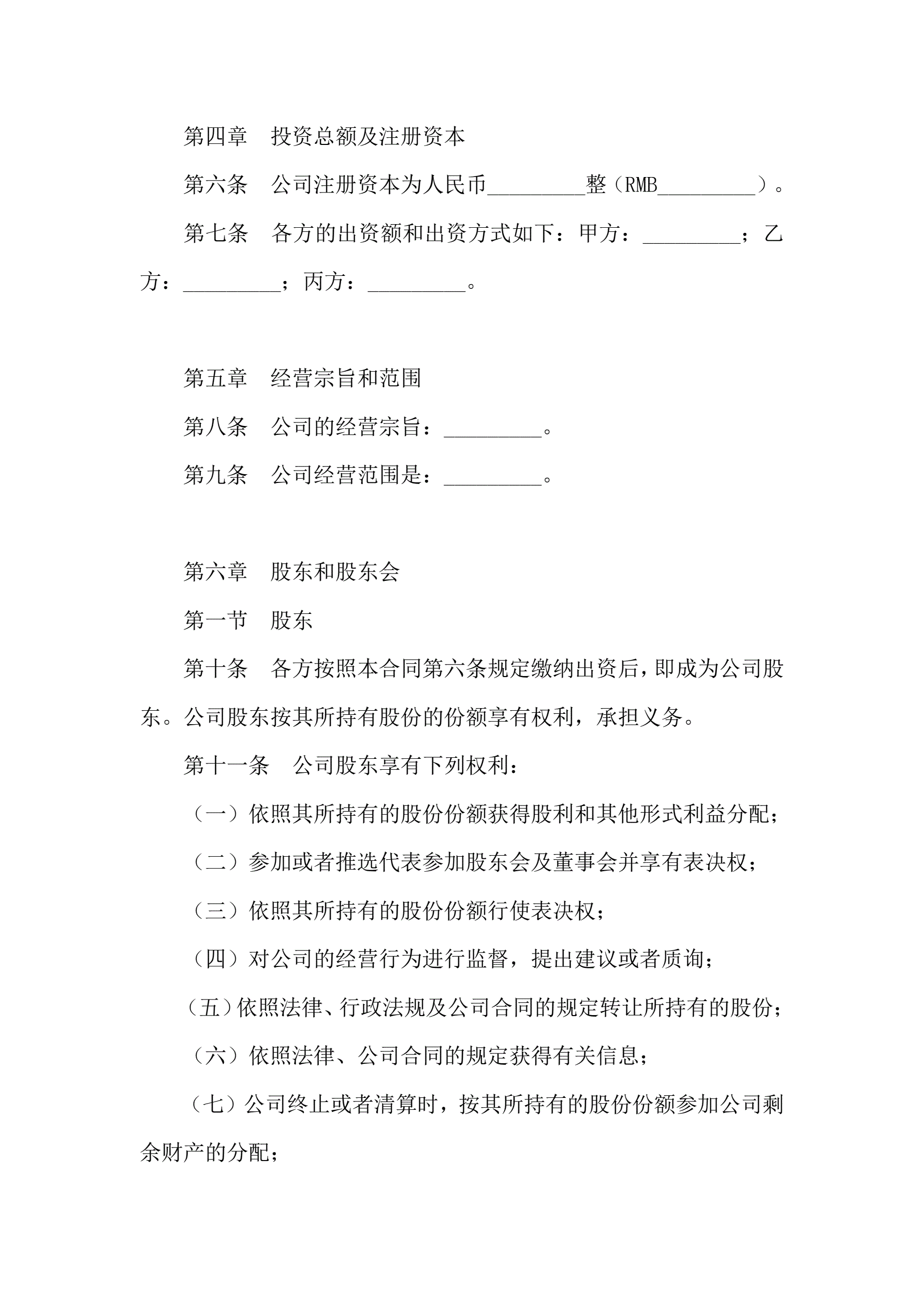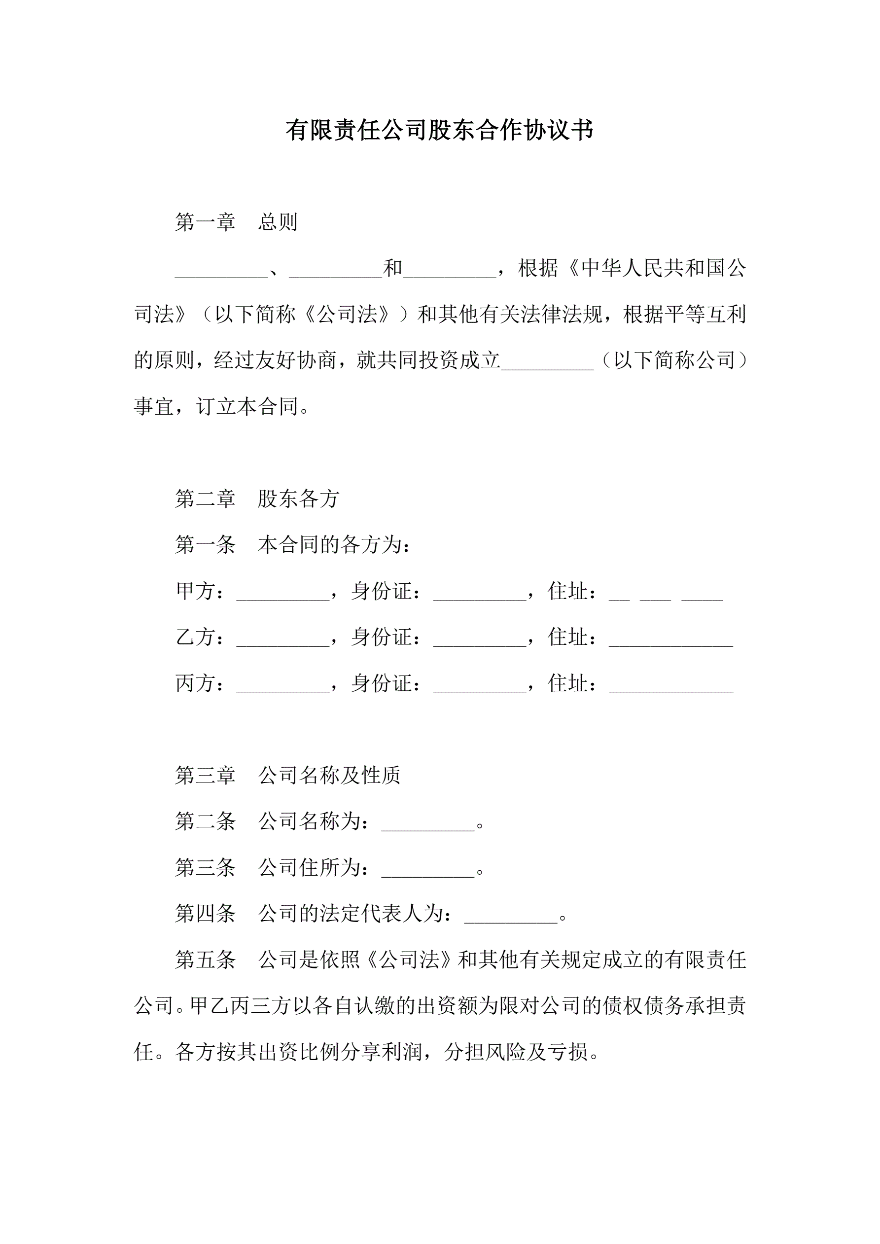 >有限责任公司股东合作协议书