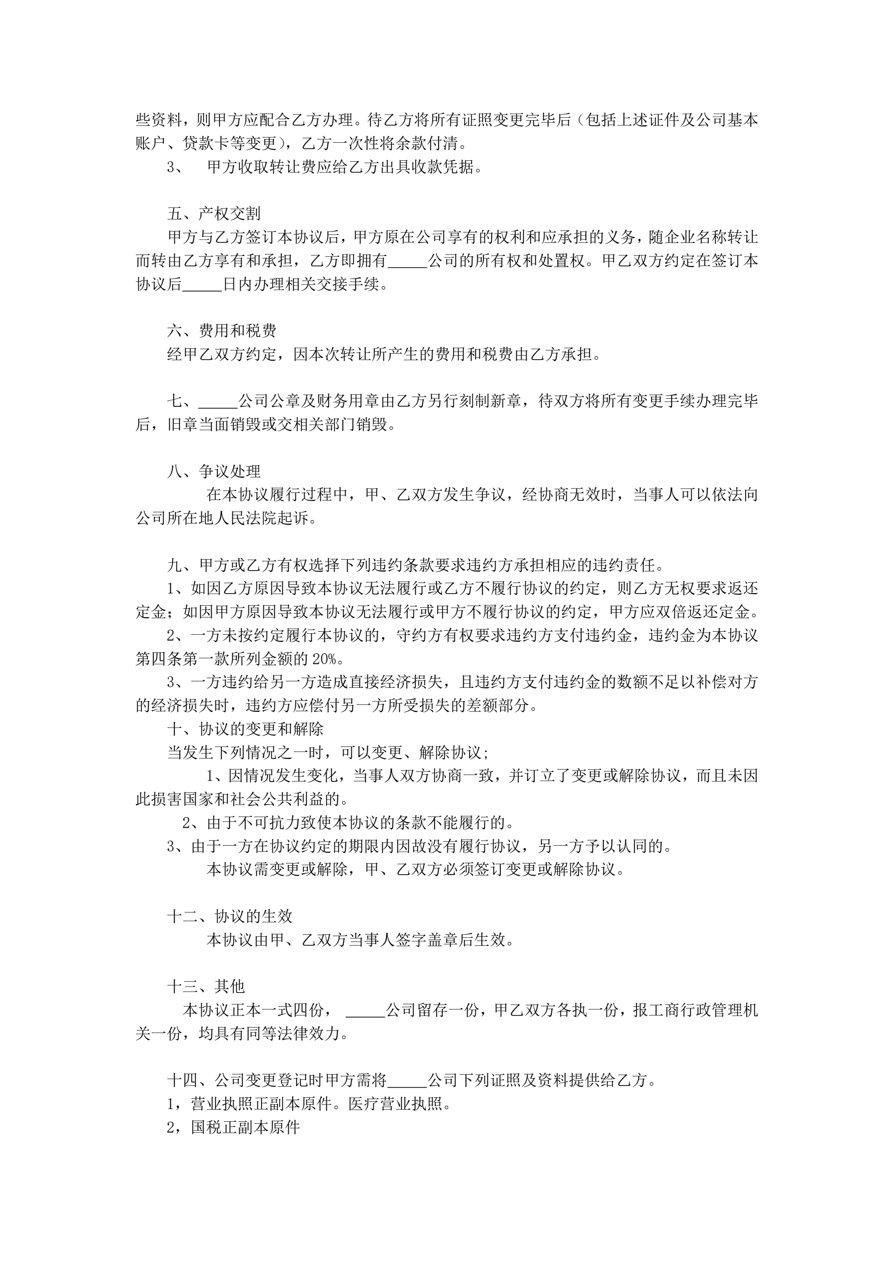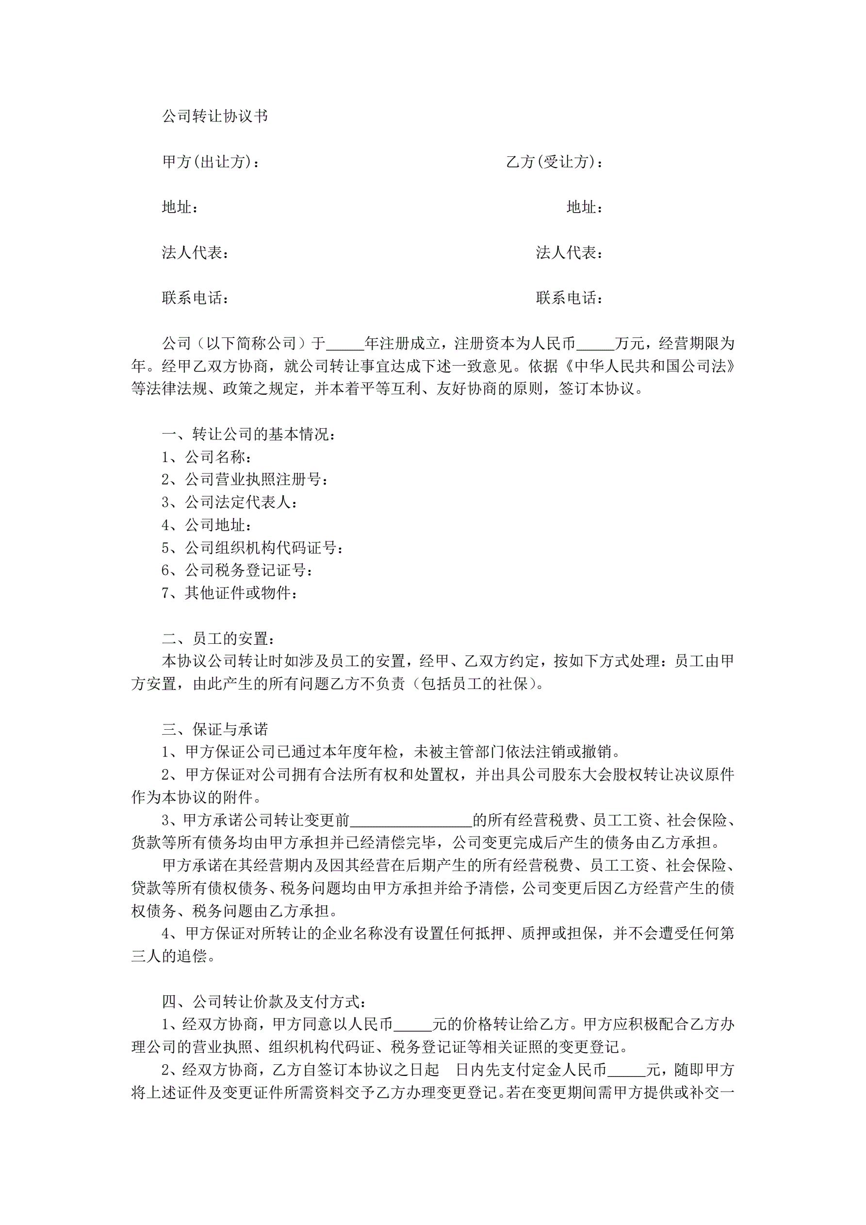 公司转让协议书