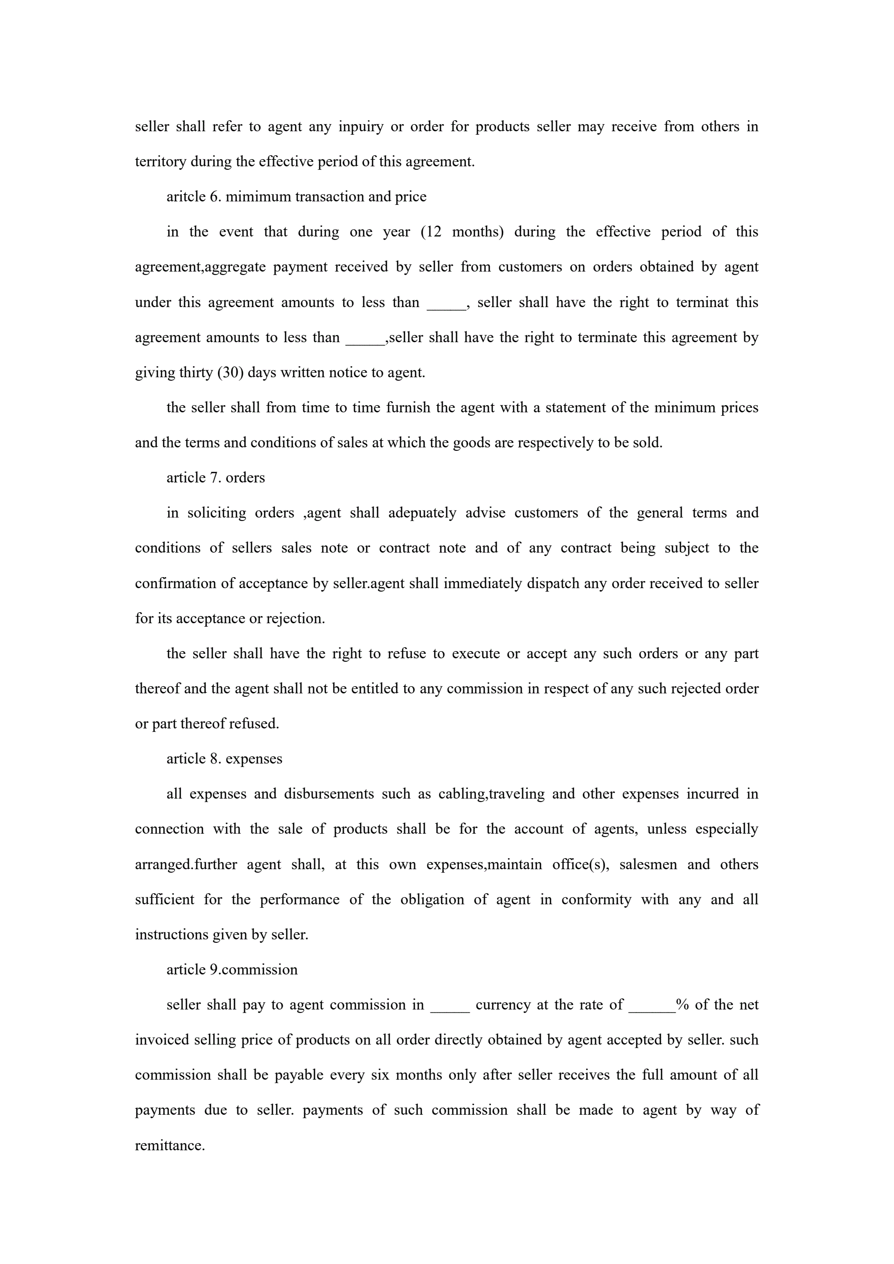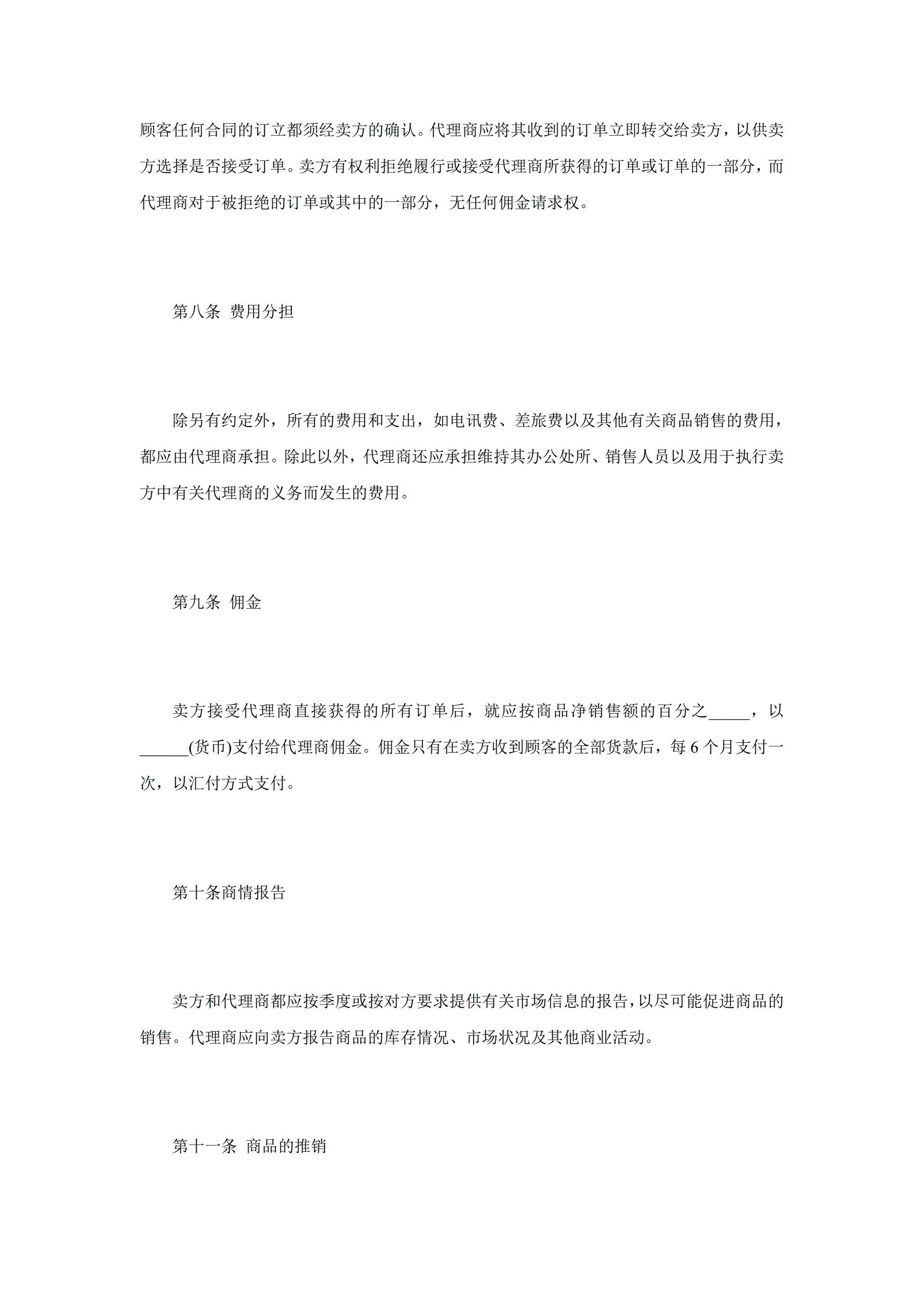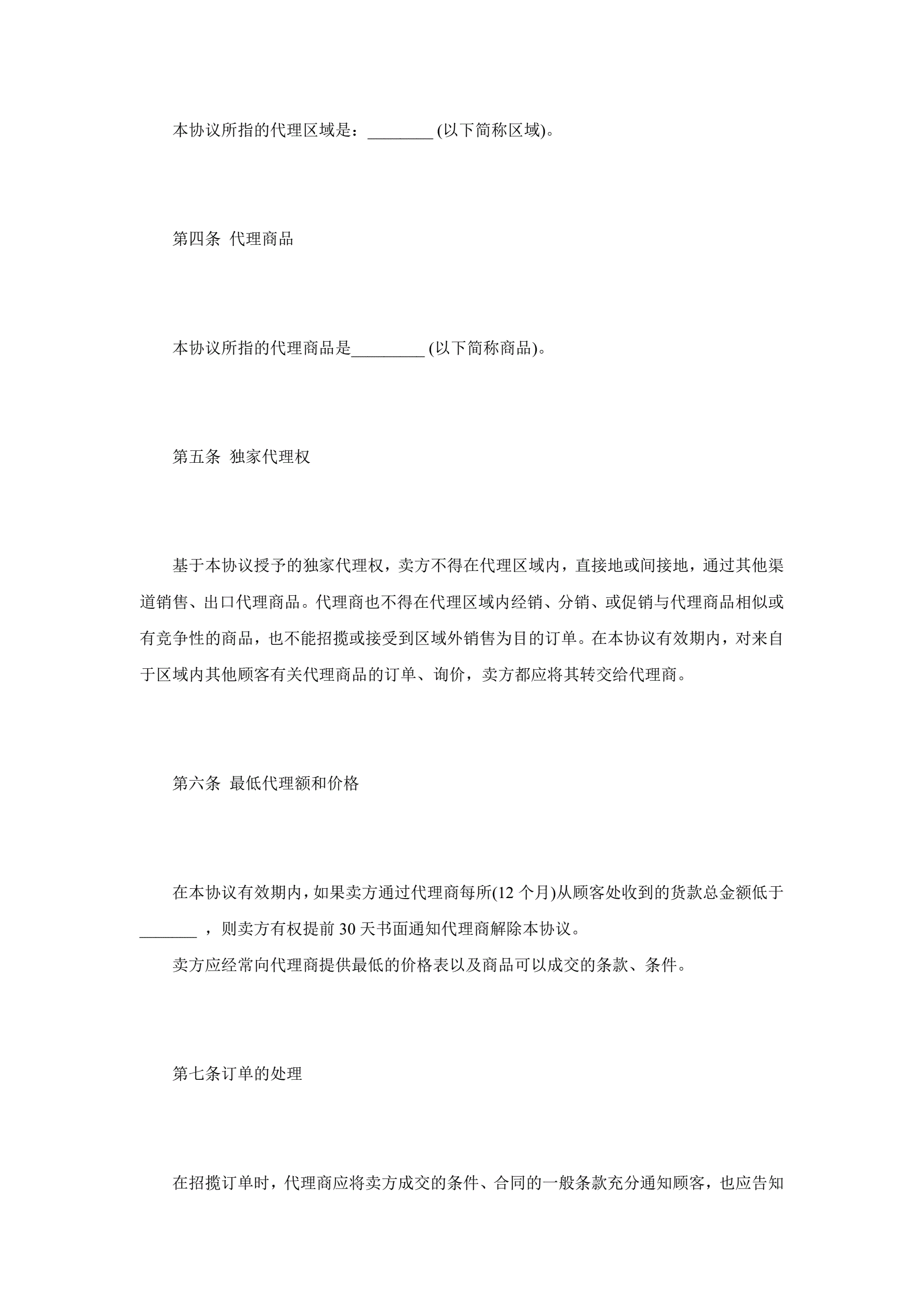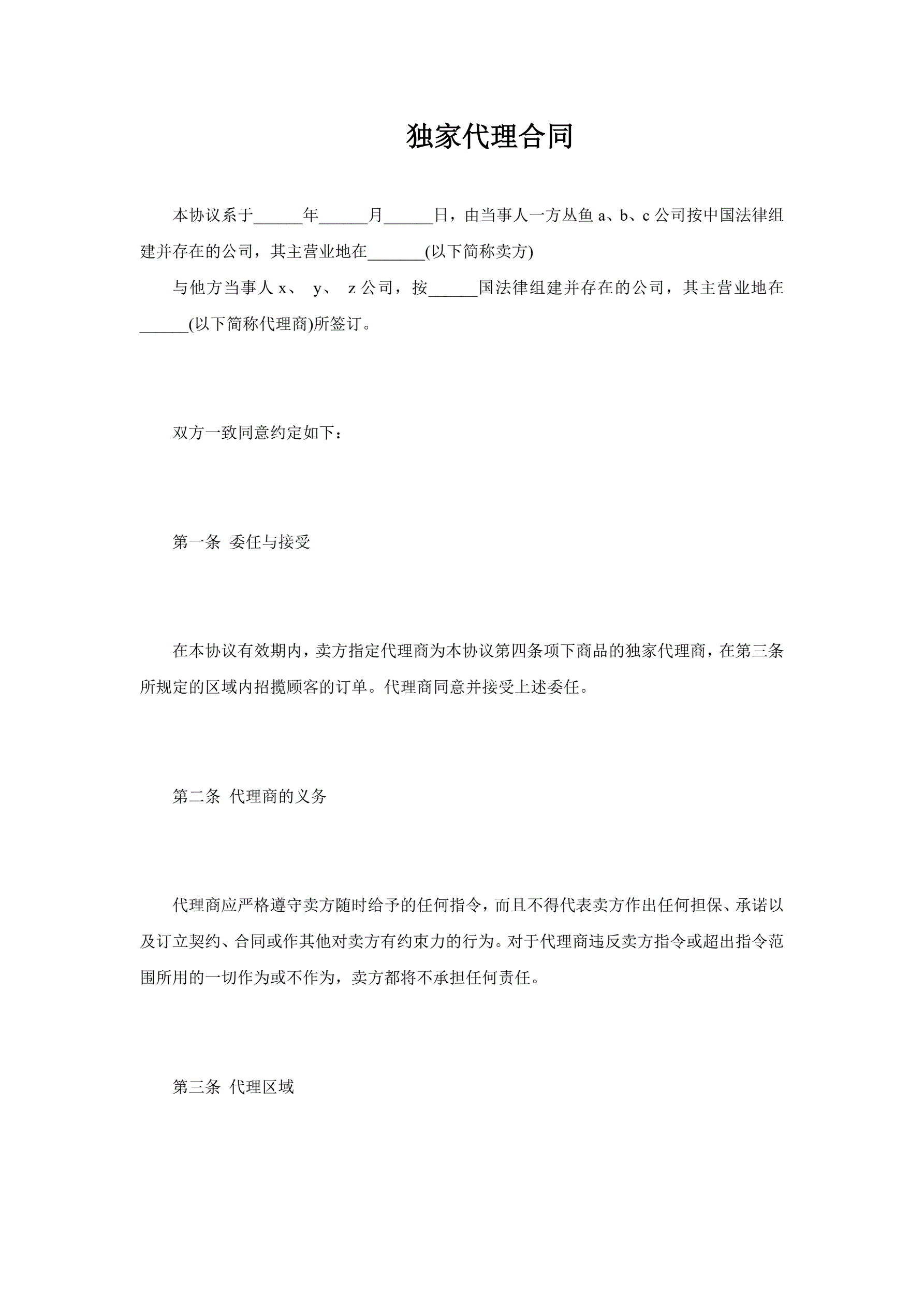>独家代理合同协议