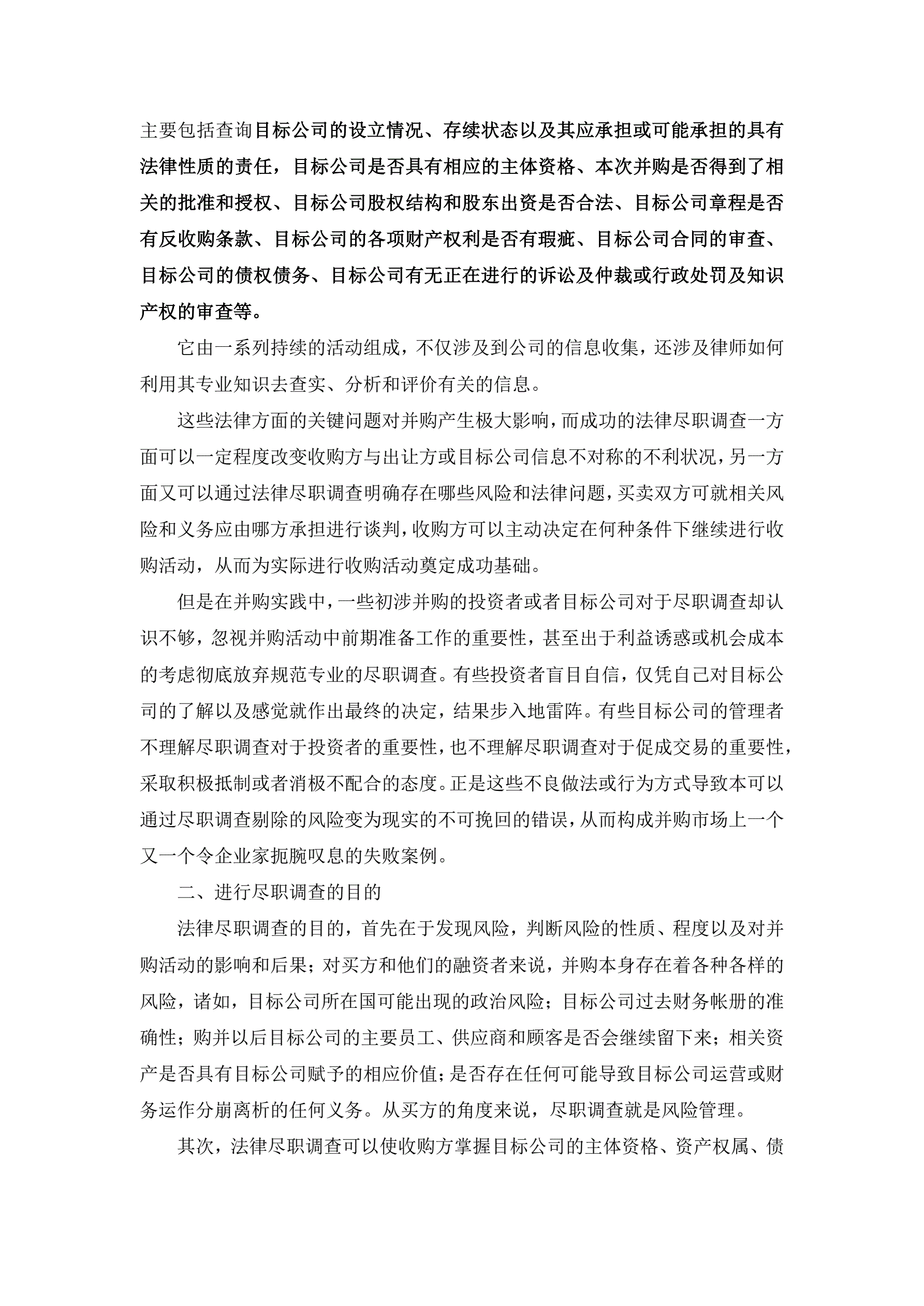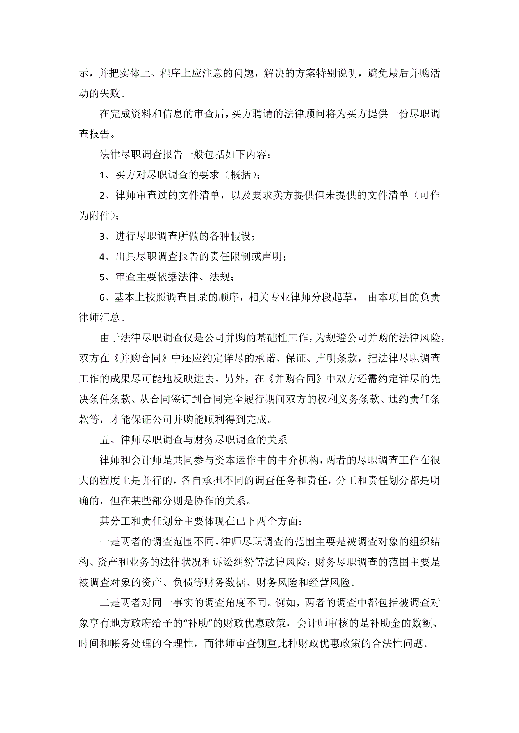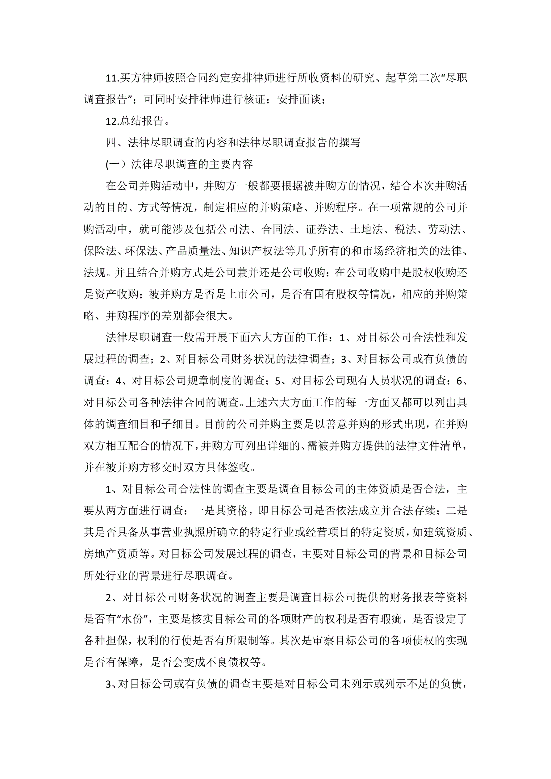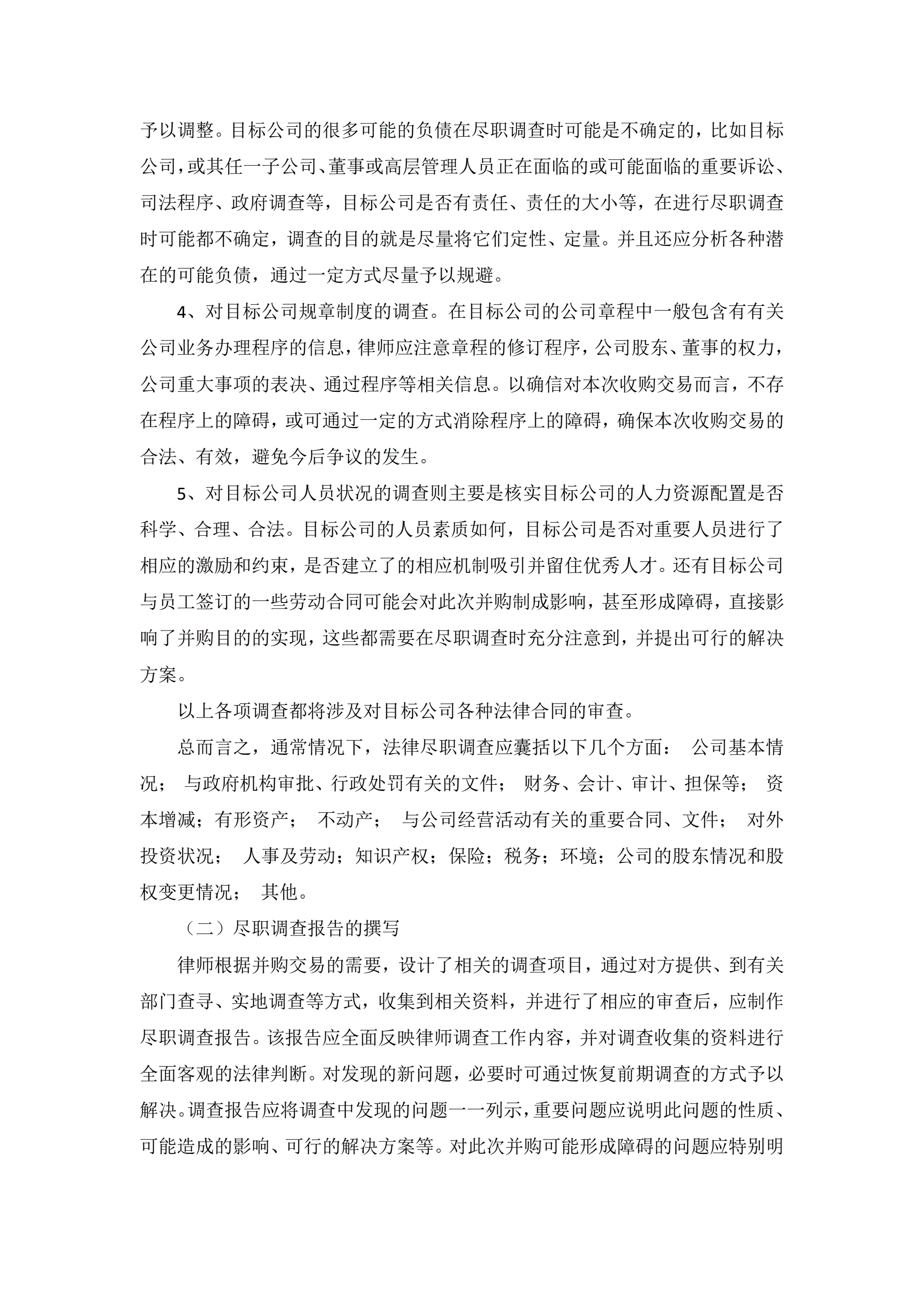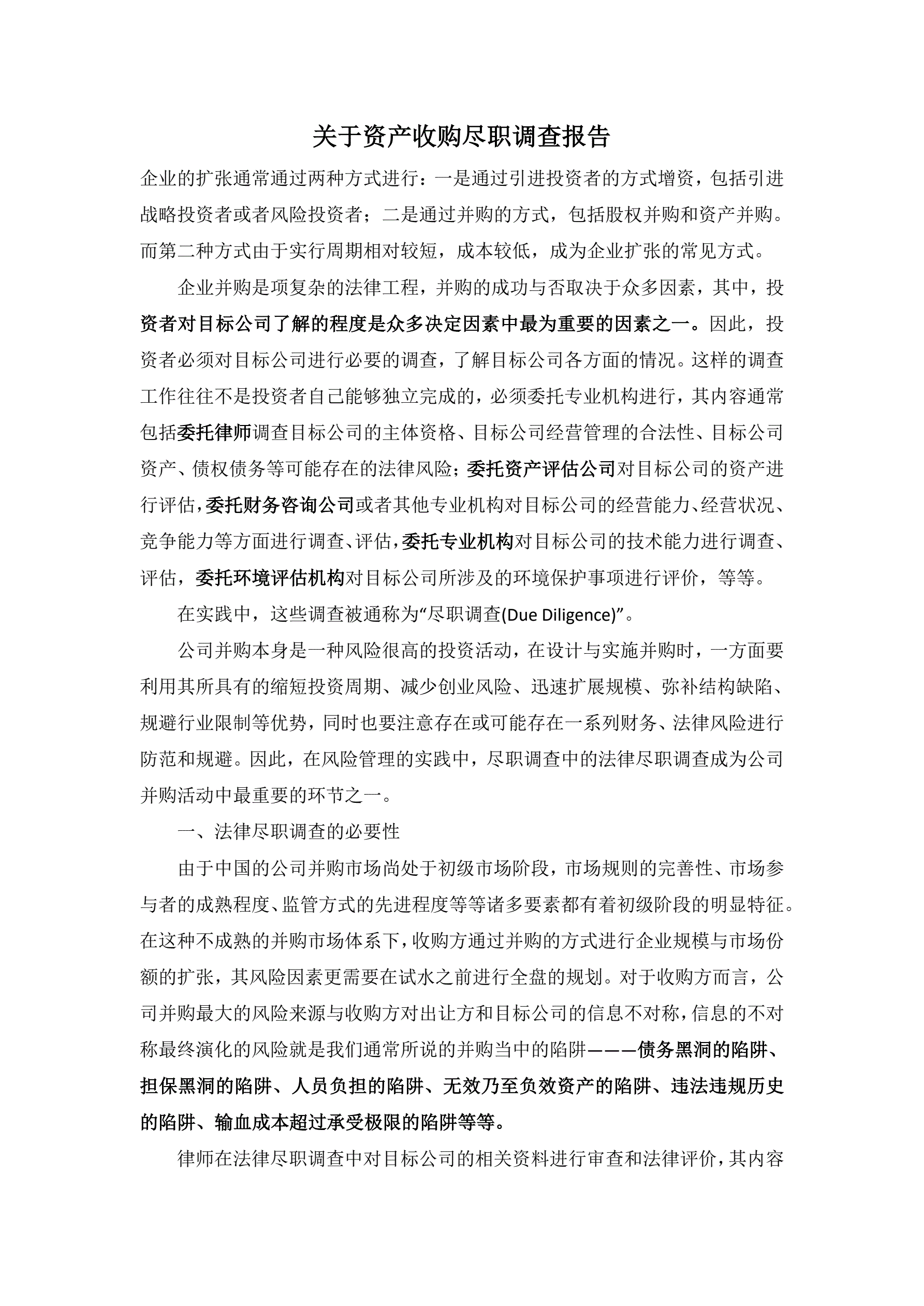 关于资产收购尽职调查报告