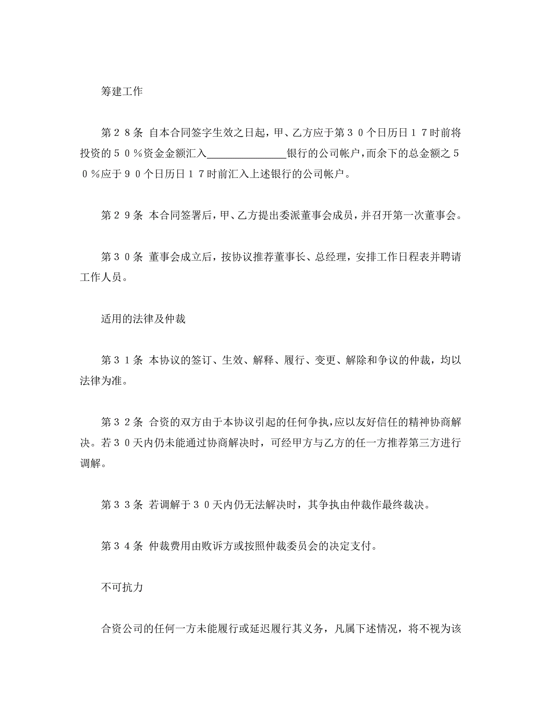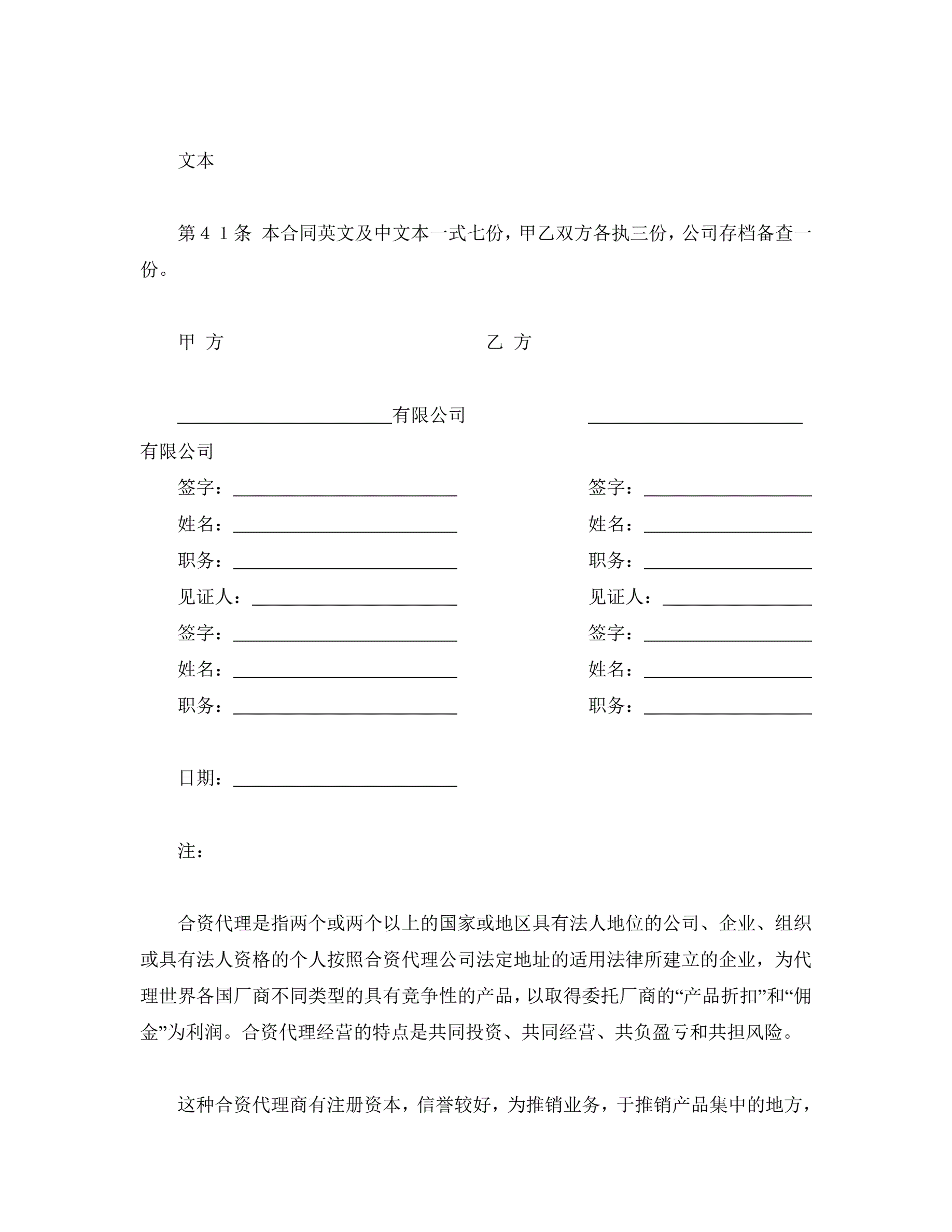 >合资代理协议书