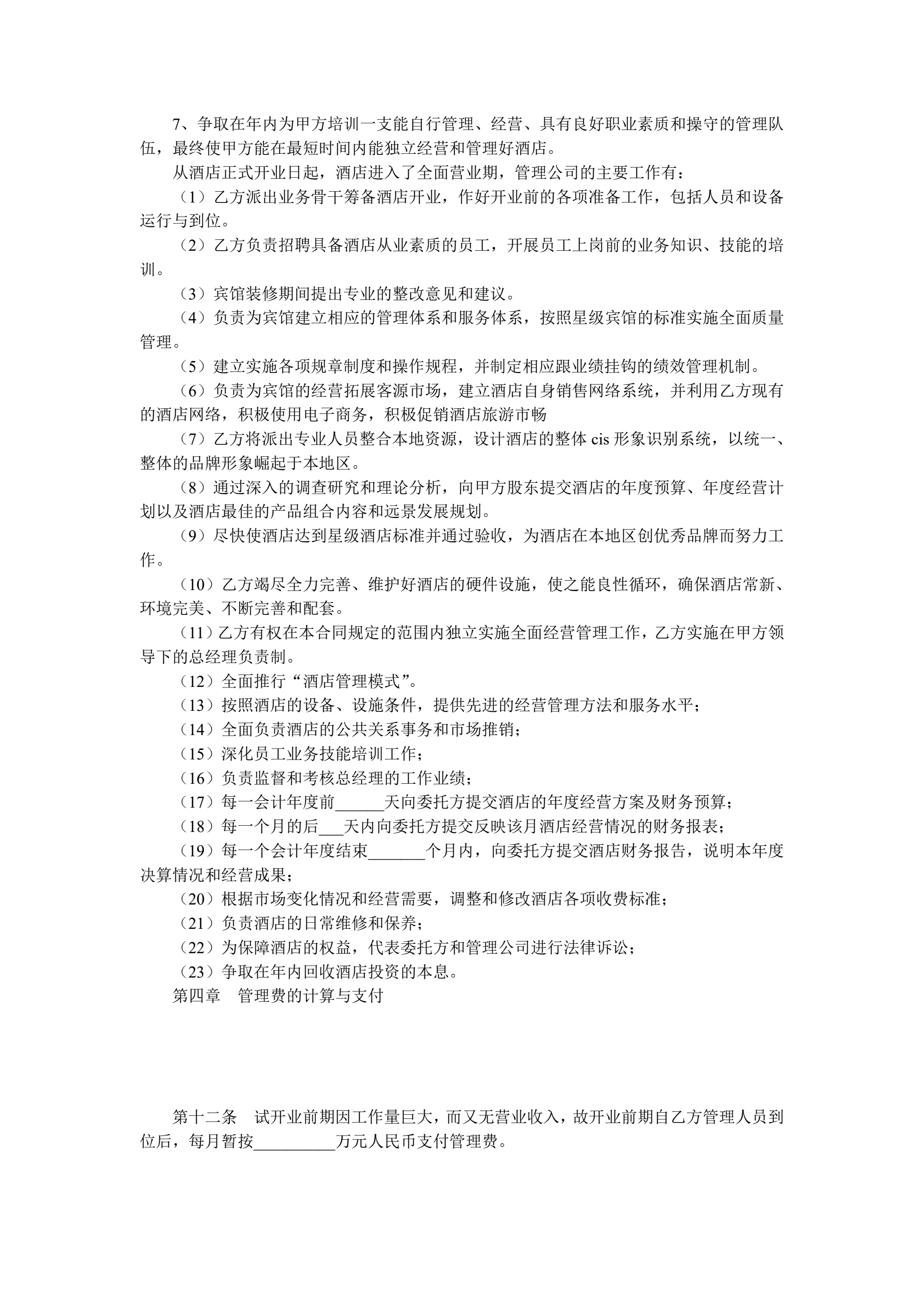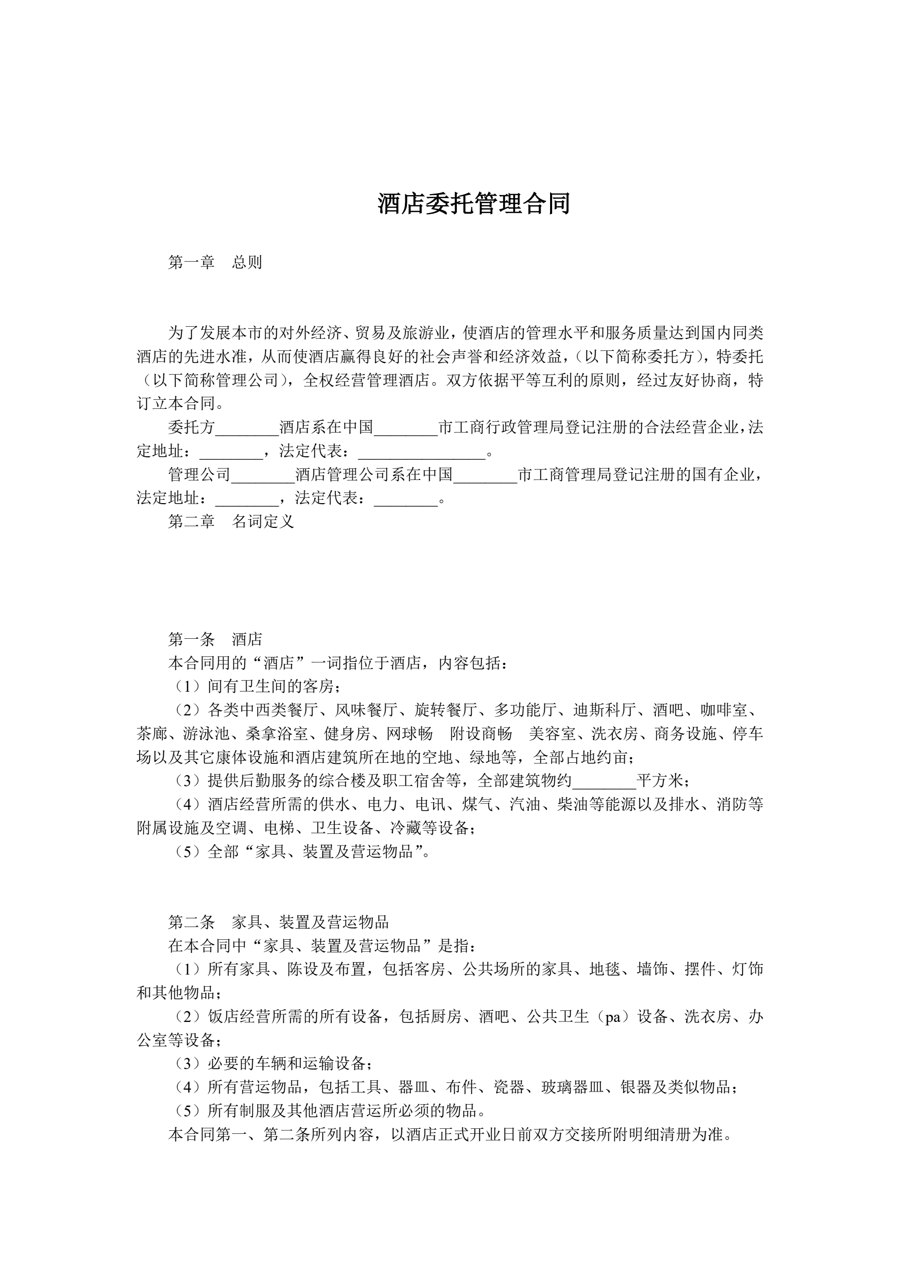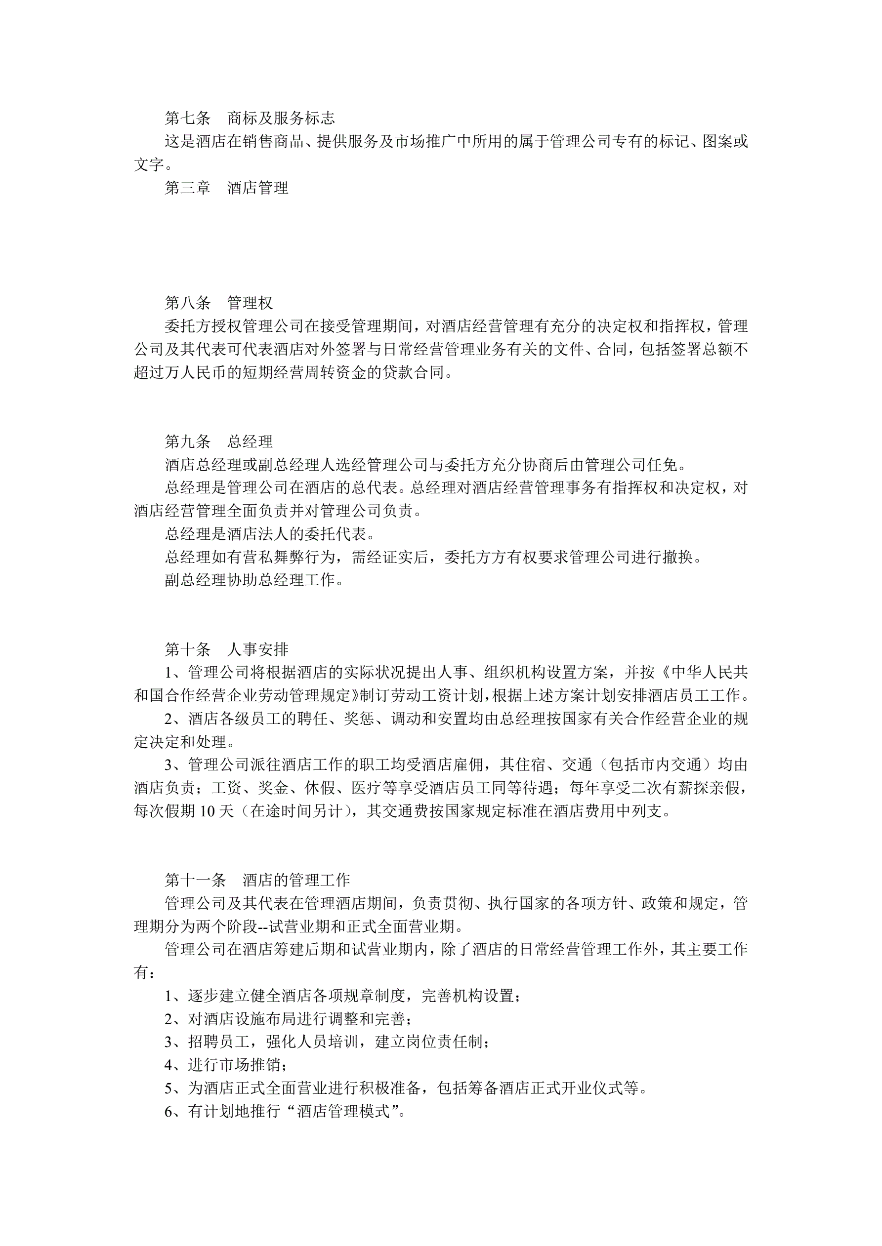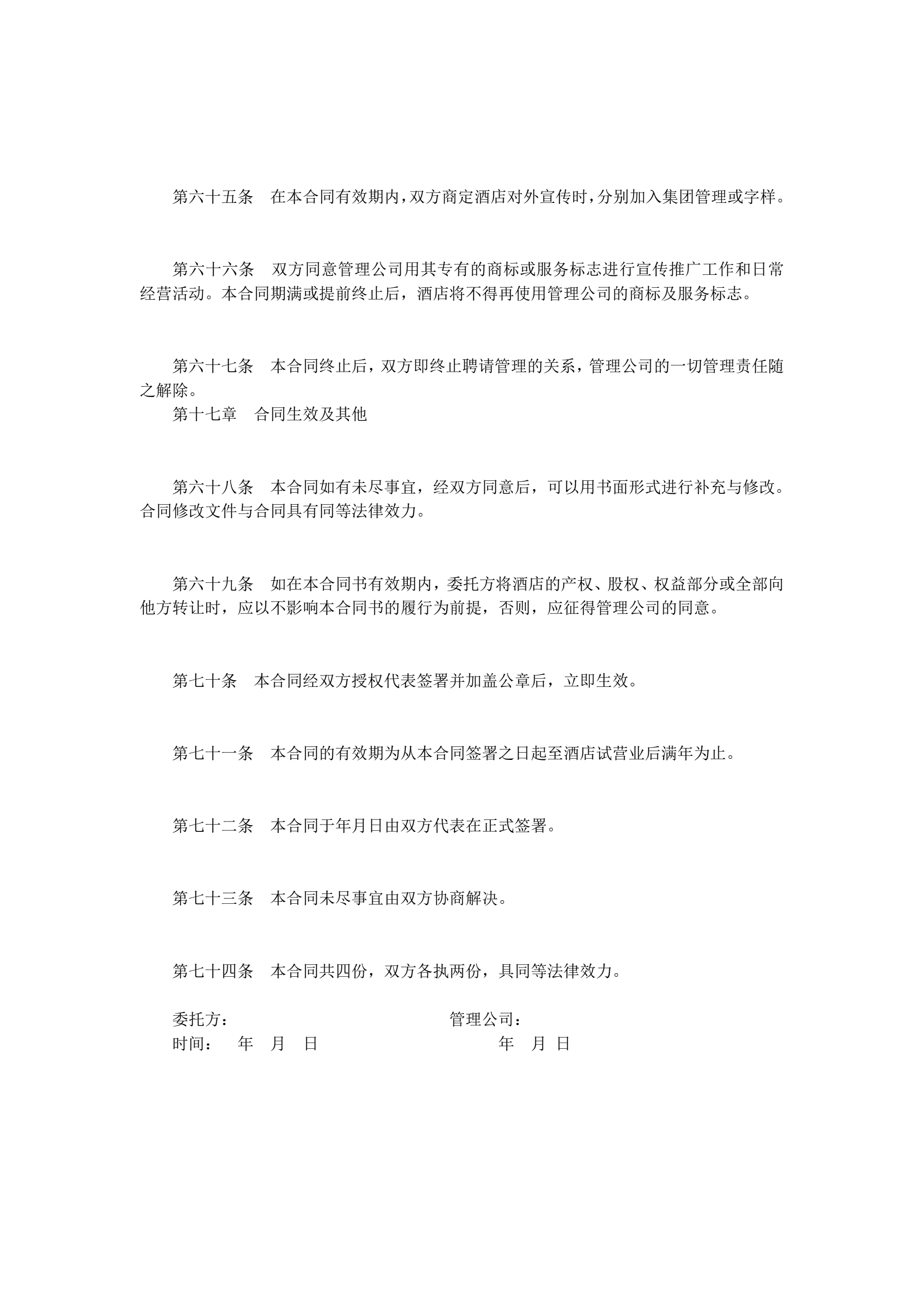 酒店委托管理合同