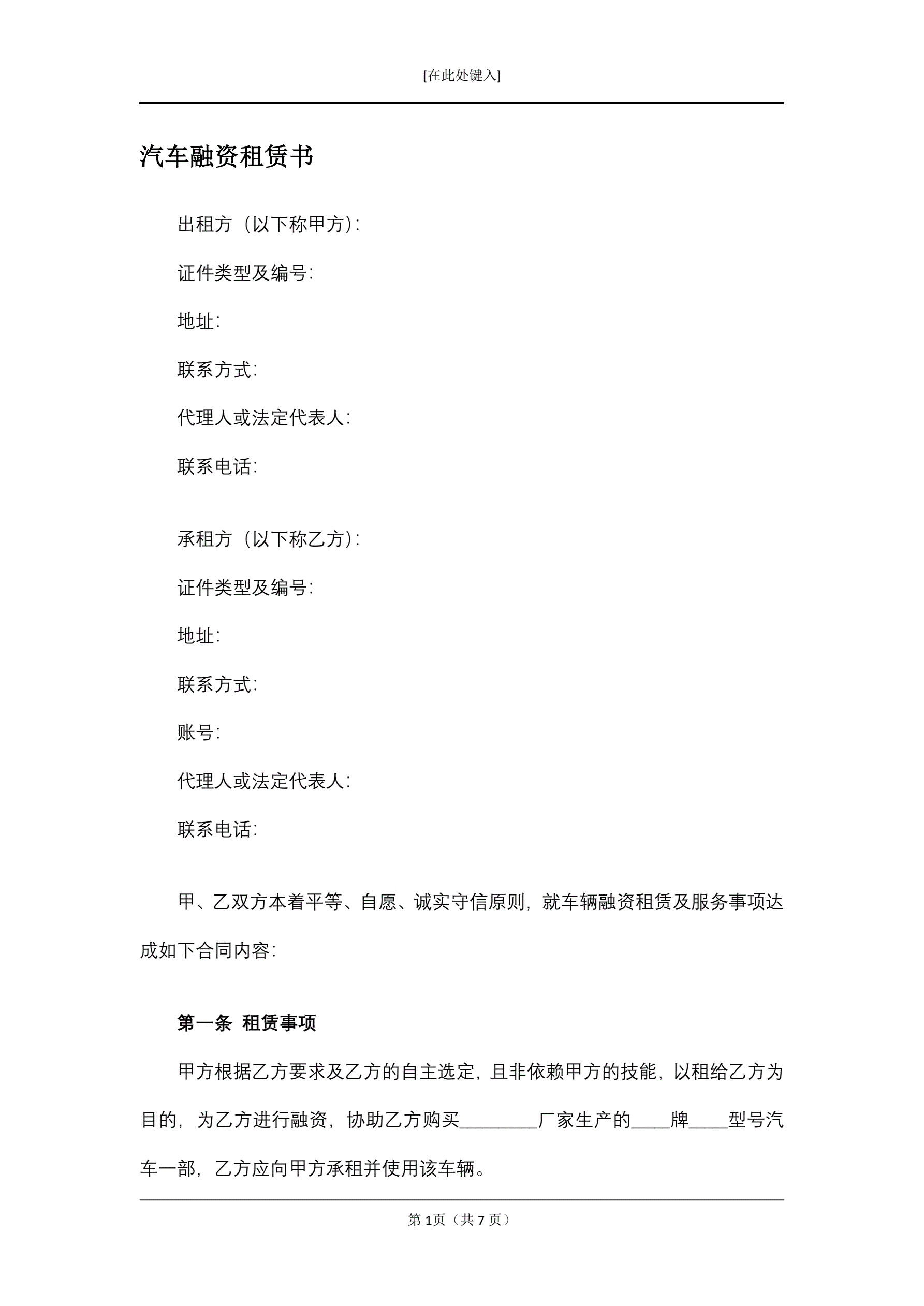 >汽车融资租赁书