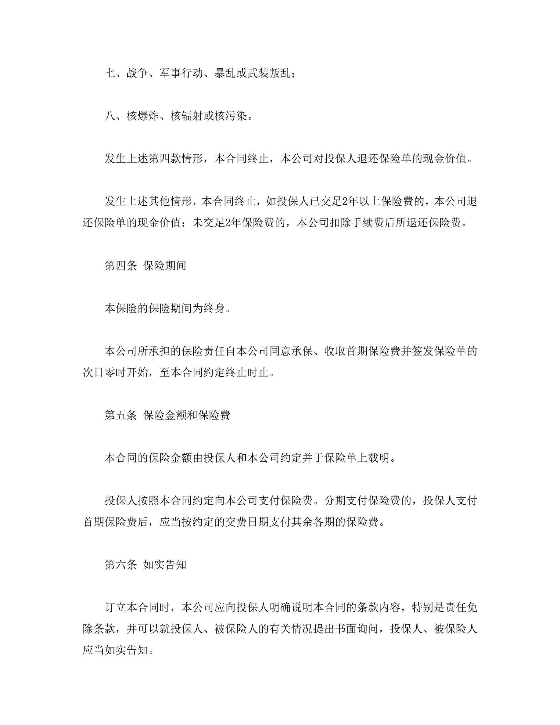 平安康泰终身保险(利差返还型)条款