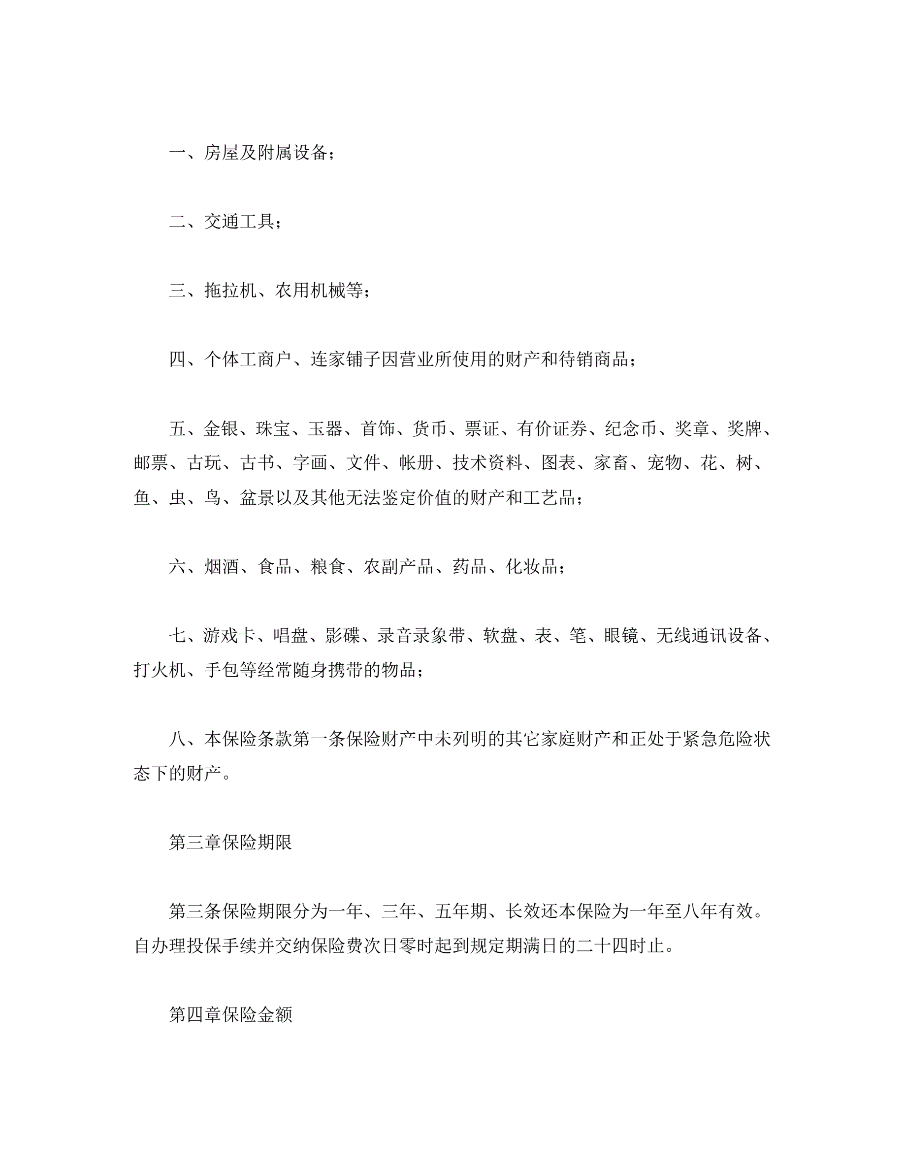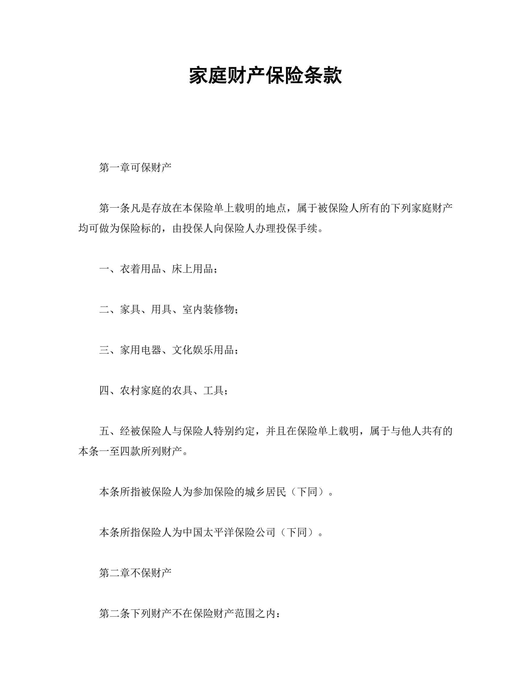 家庭财产保险条款