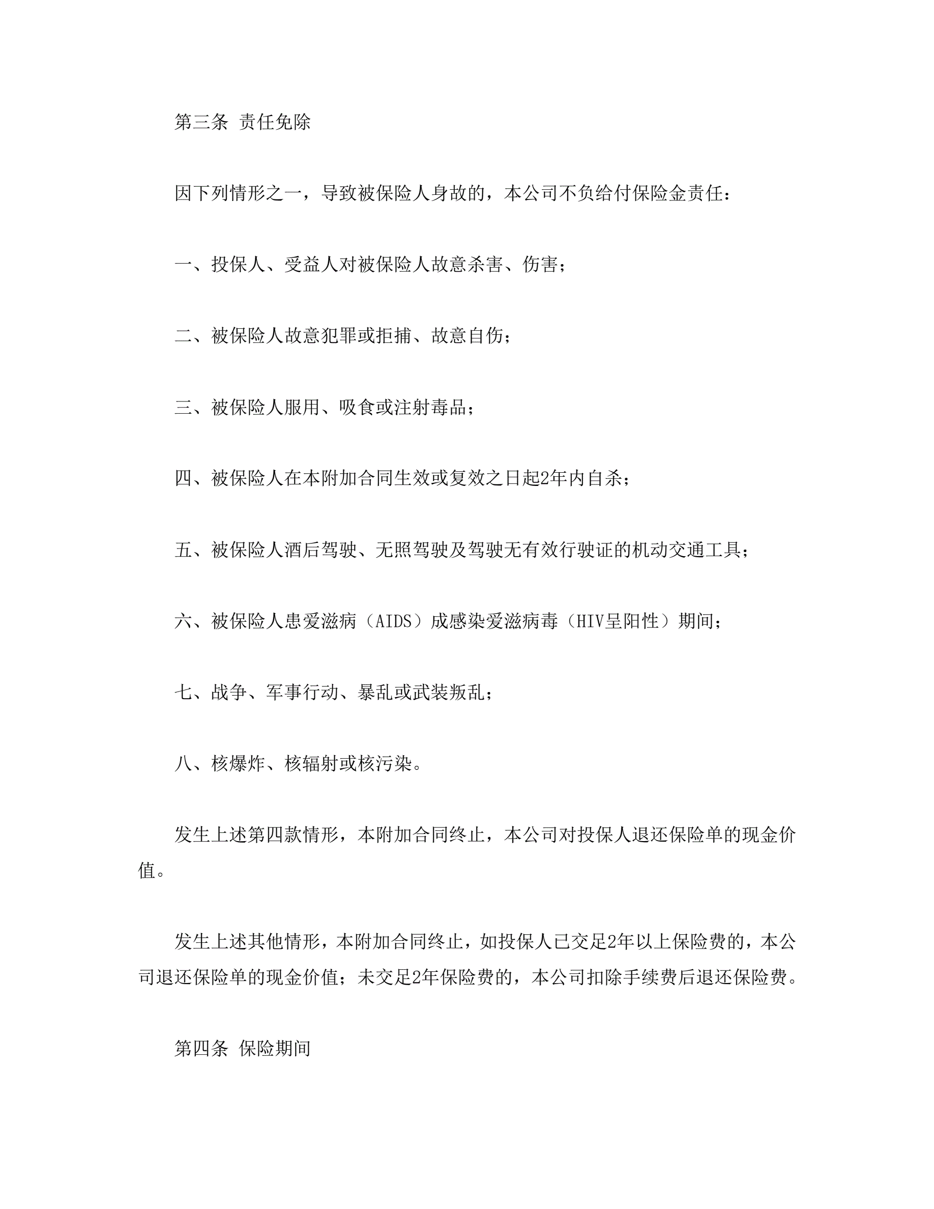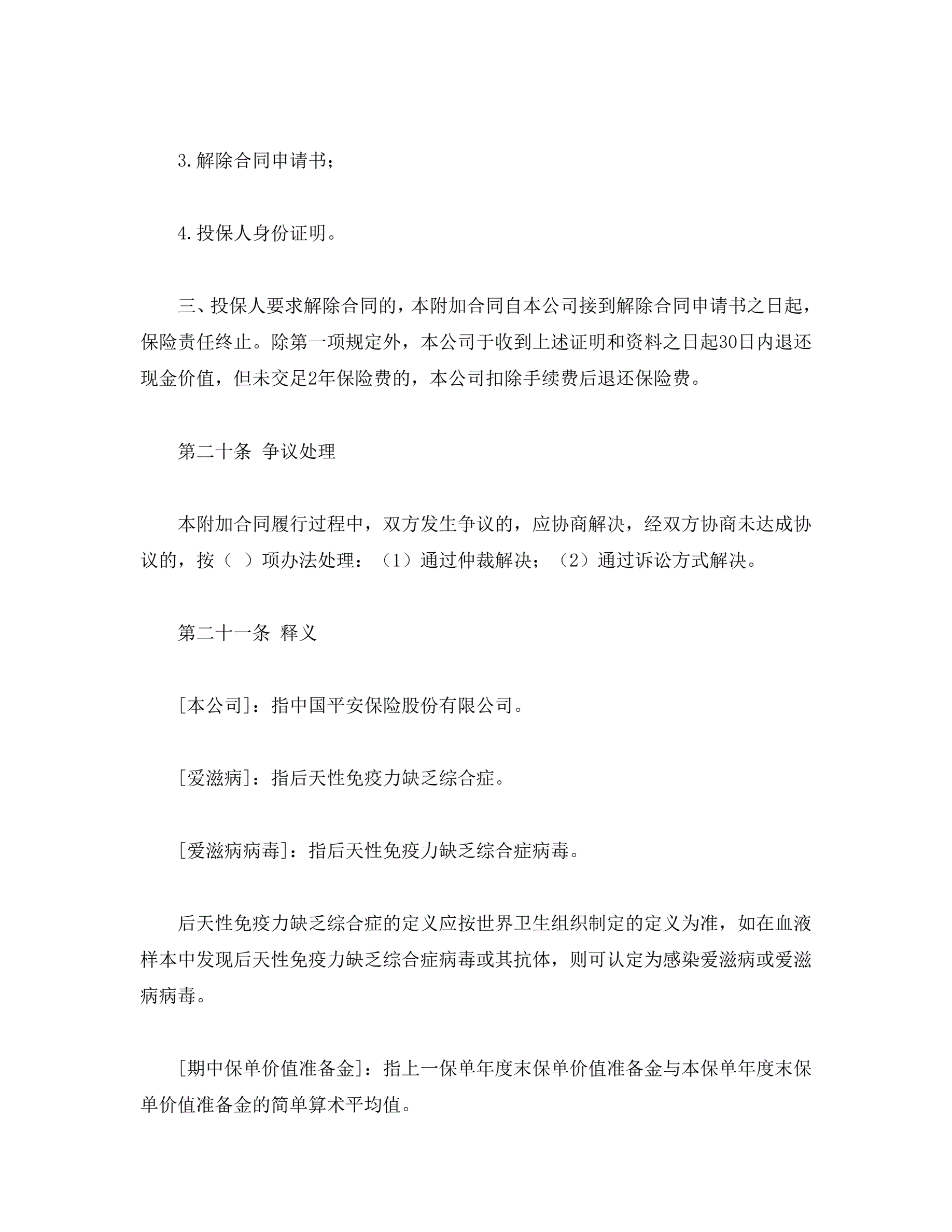 平安附加万寿两全保险(利差返还型)条款