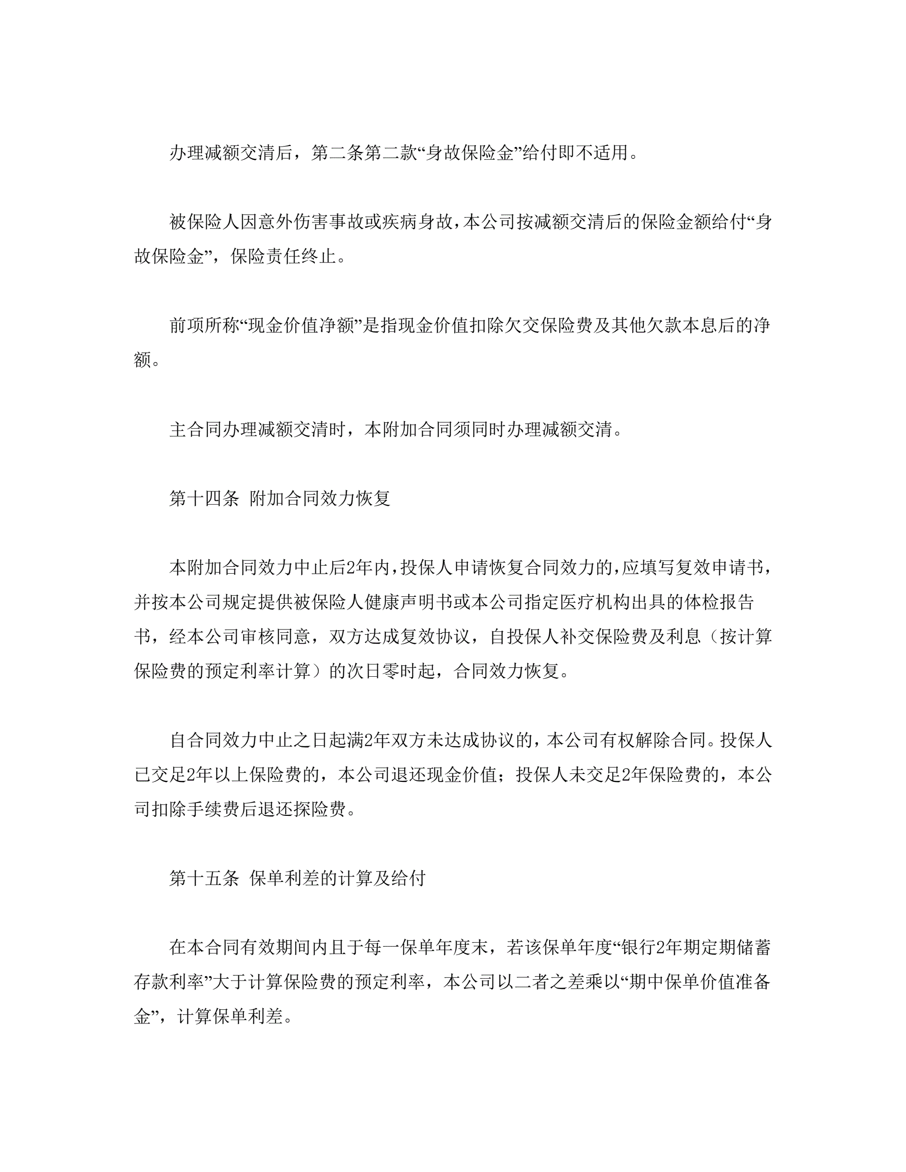 >平安附加万寿两全保险(利差返还型)条款
