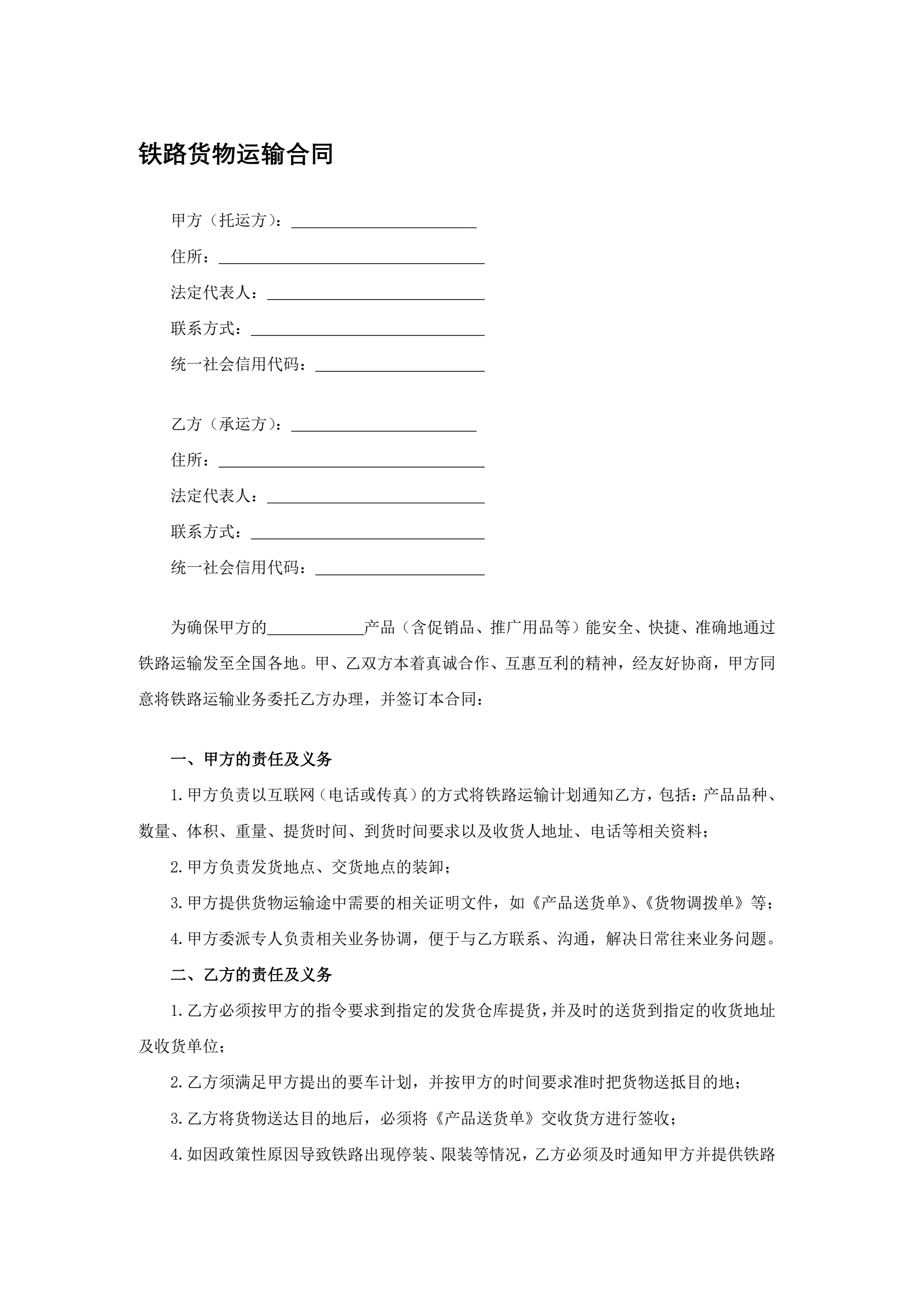 >铁路货物运输合同