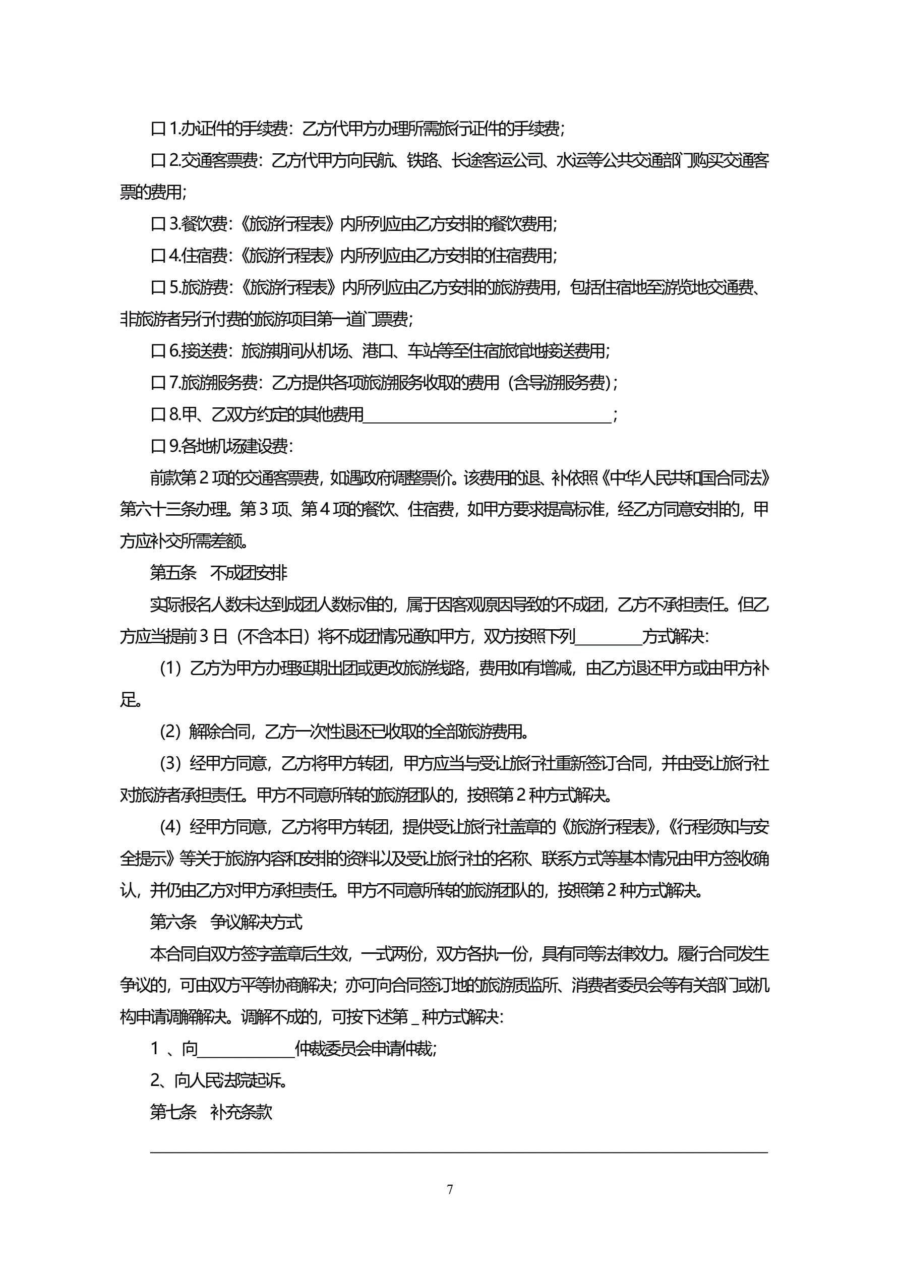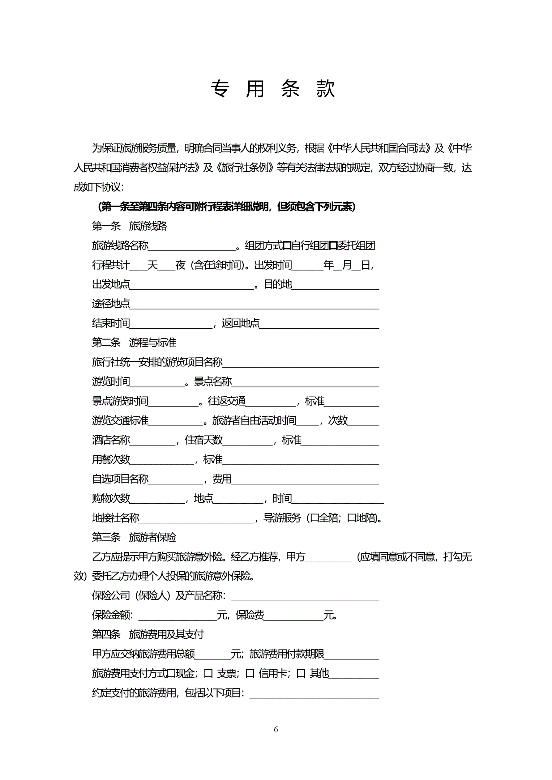 >天津市国内旅游合同