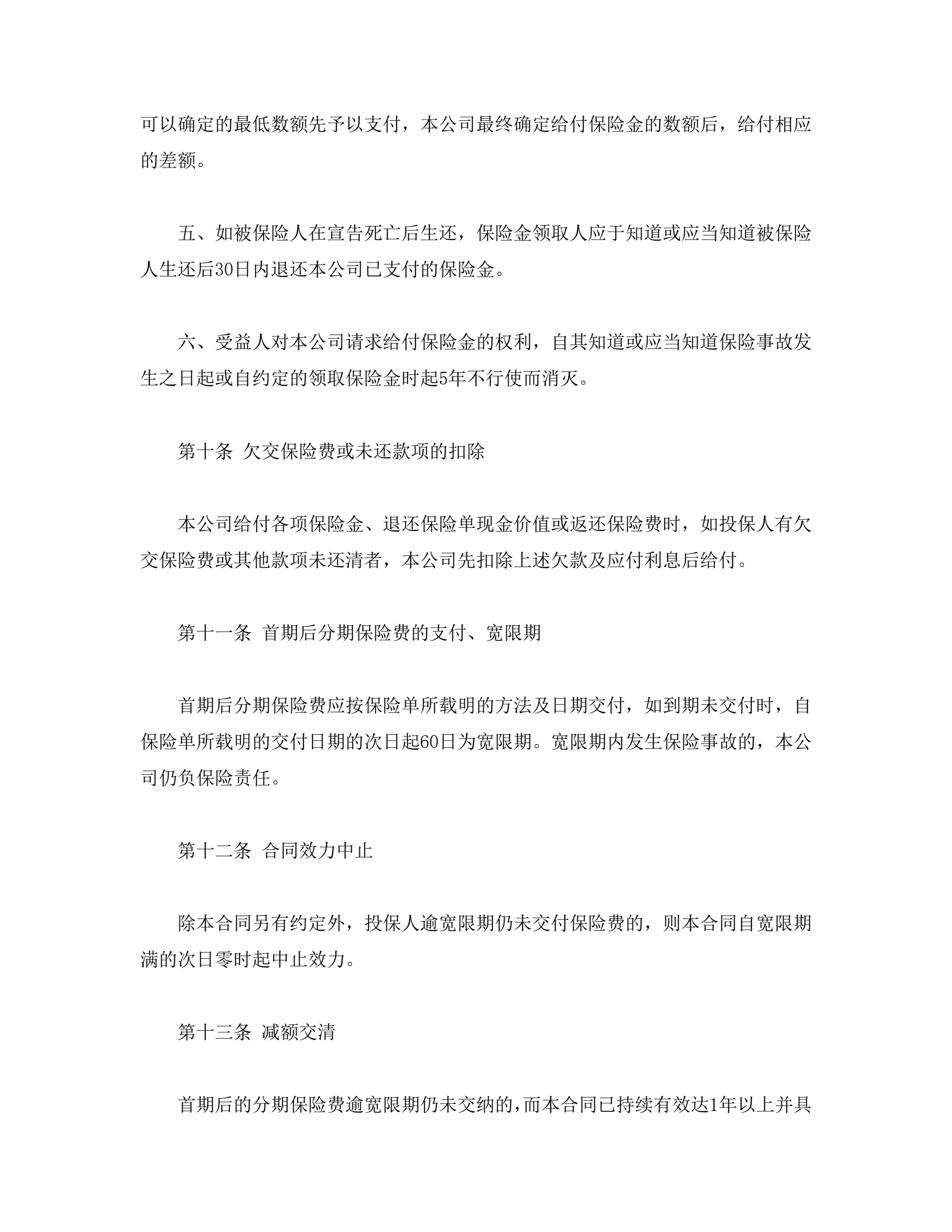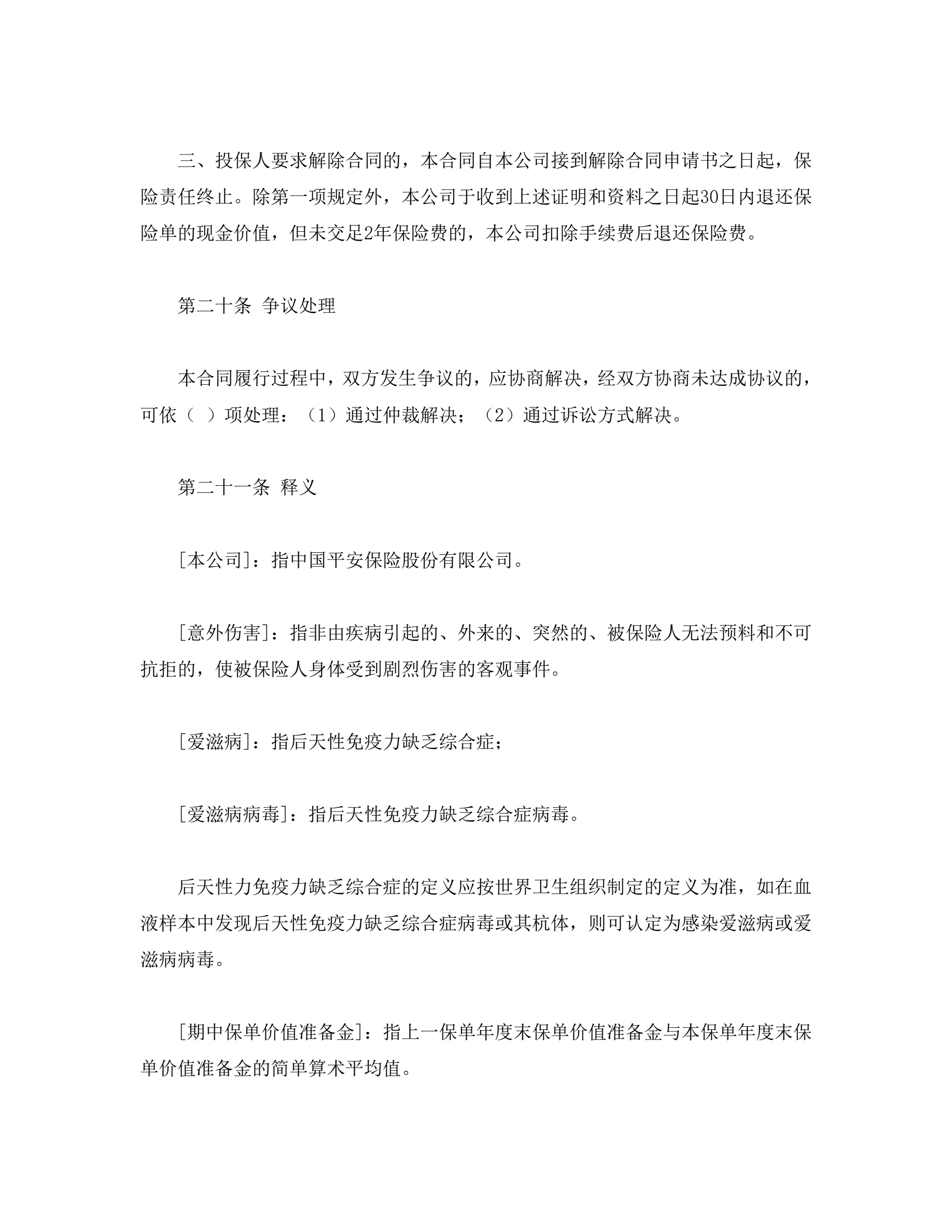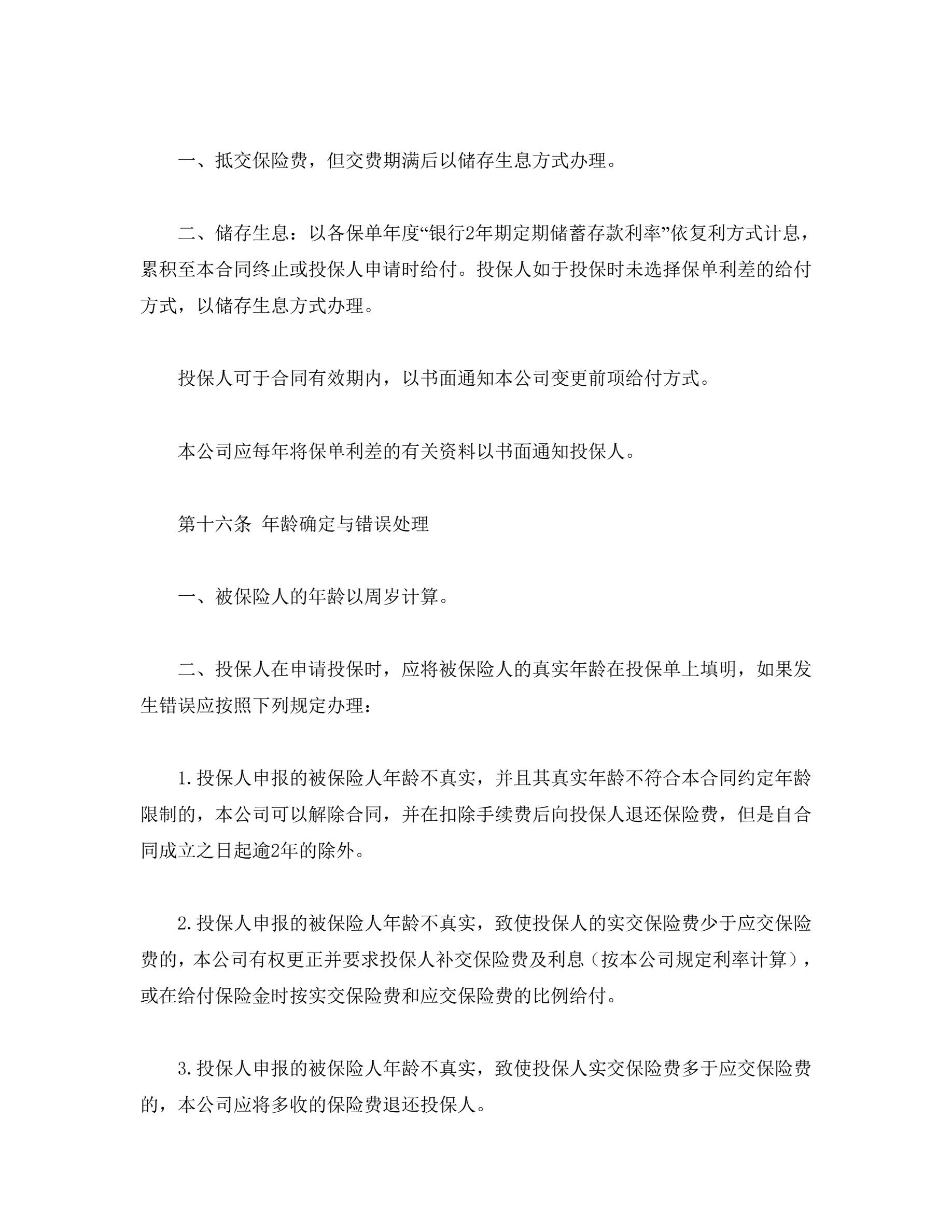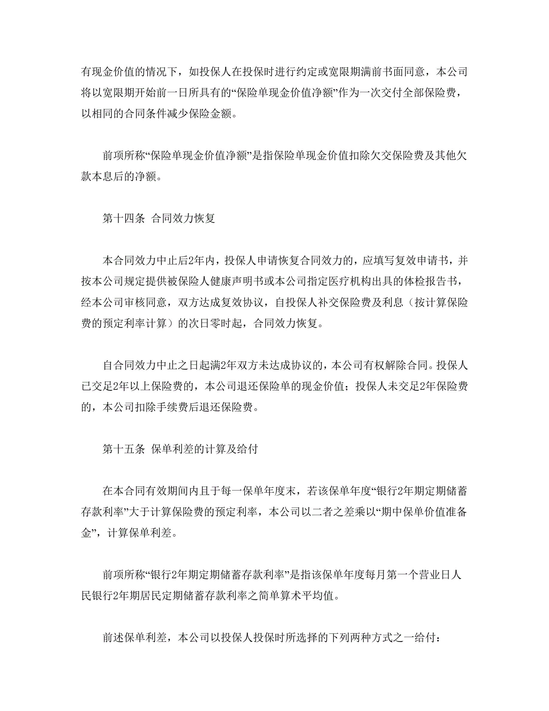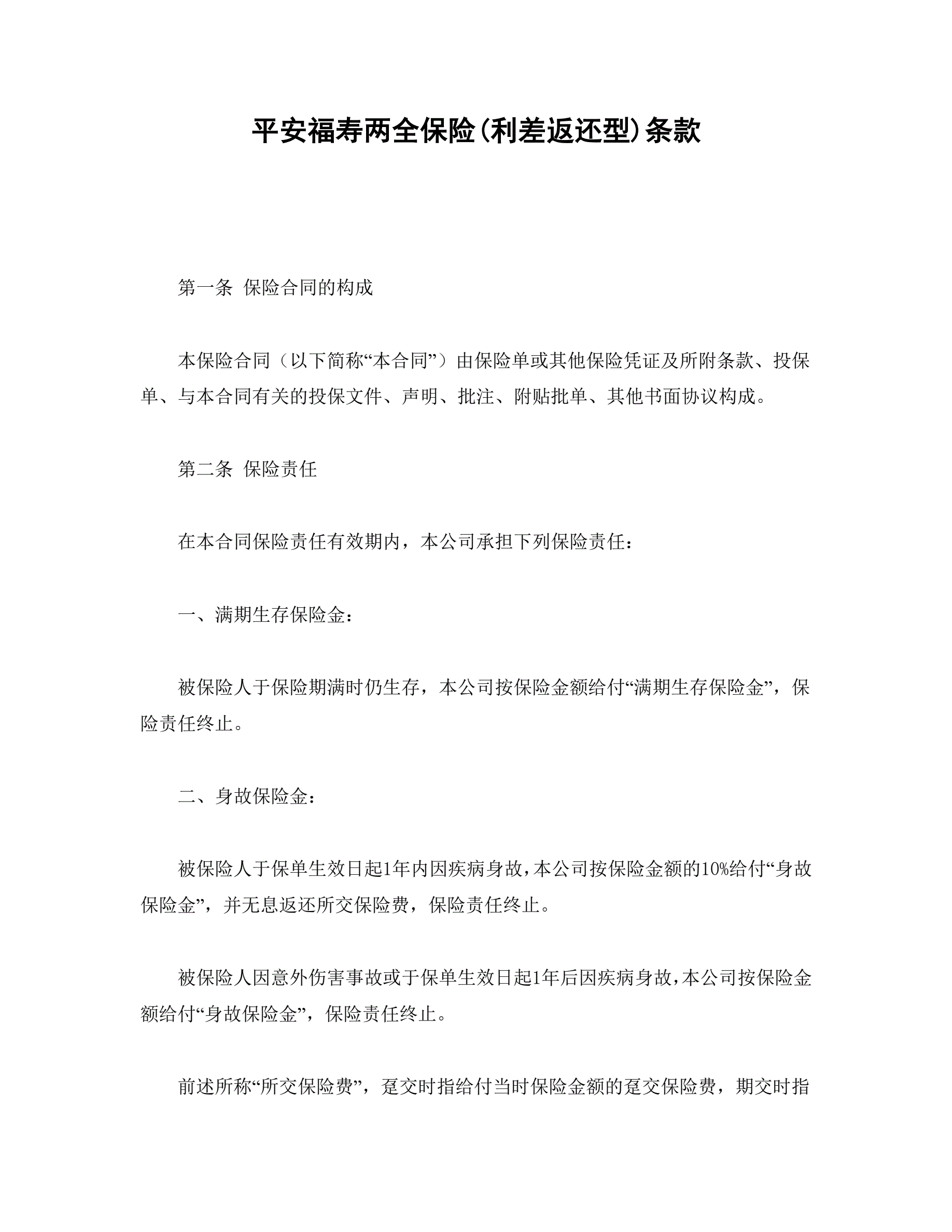 平安福寿两全保险(利差返还型)条款
