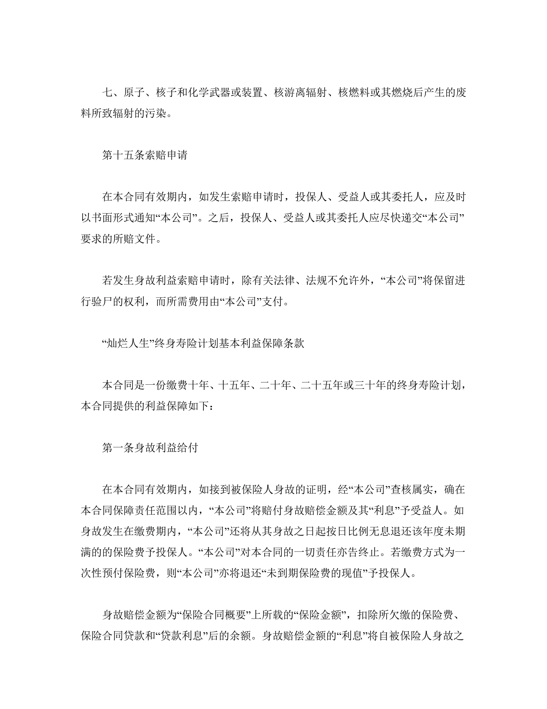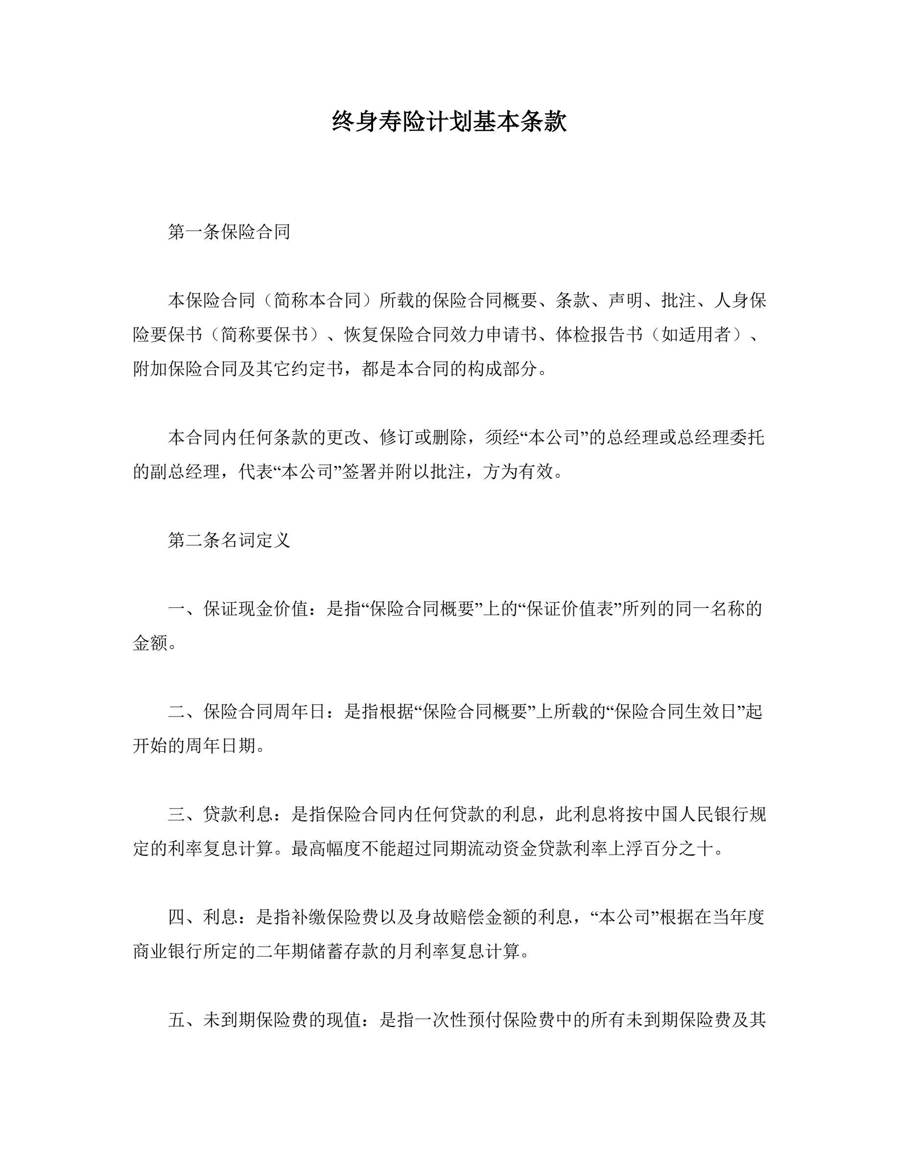 >终身寿险计划基本条款