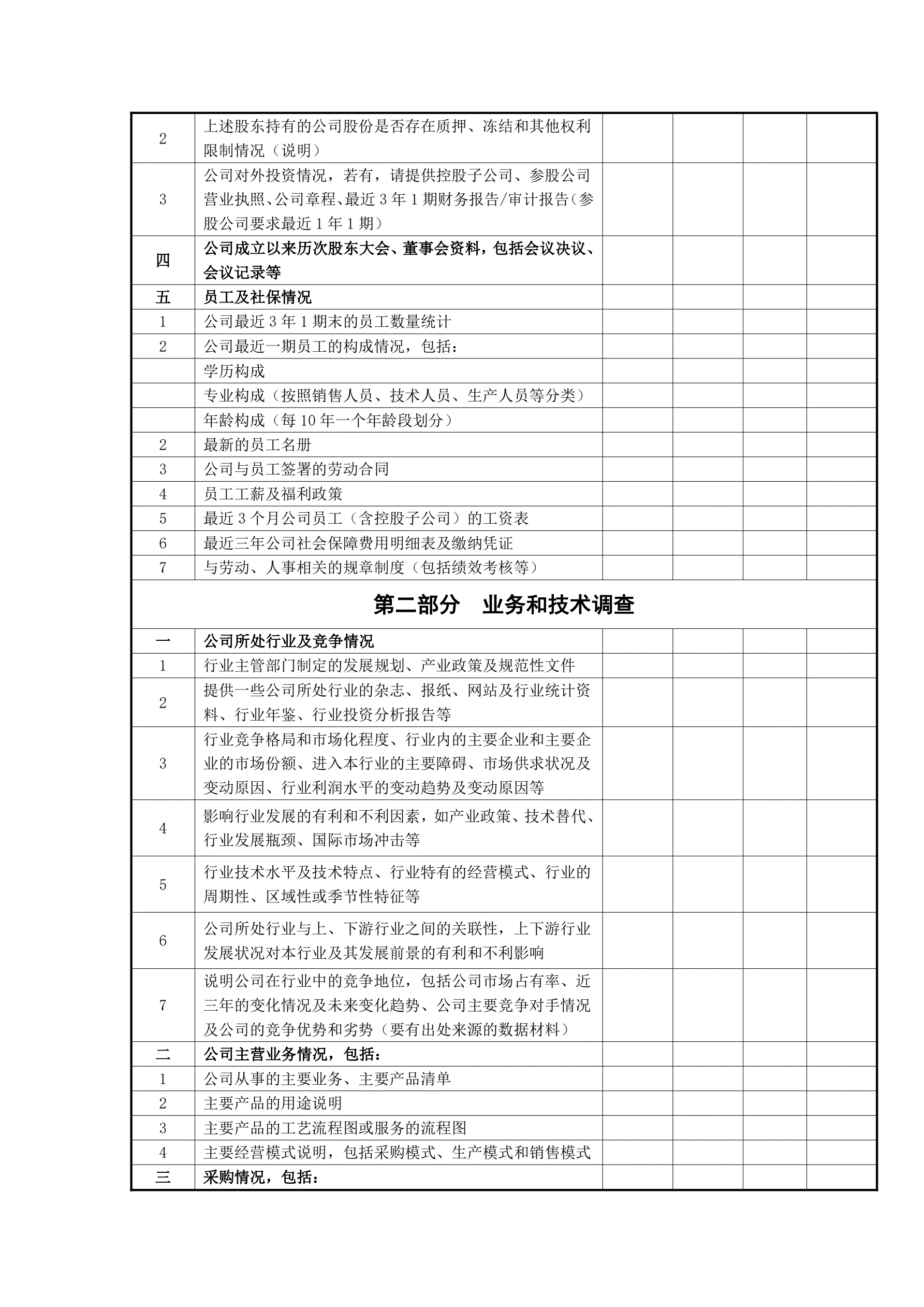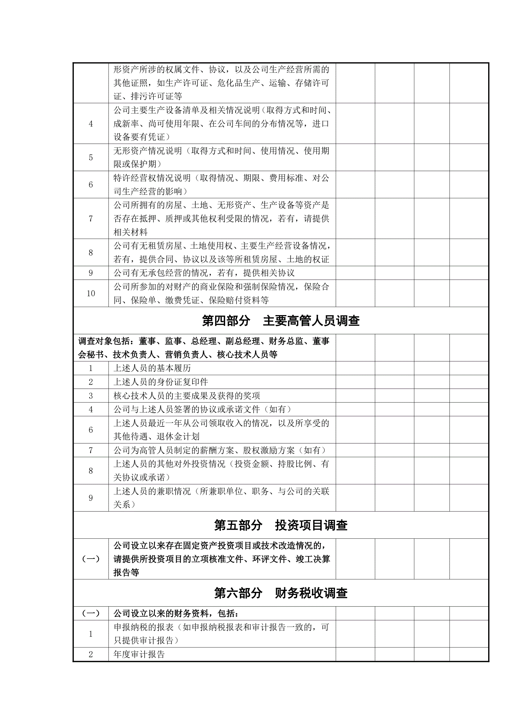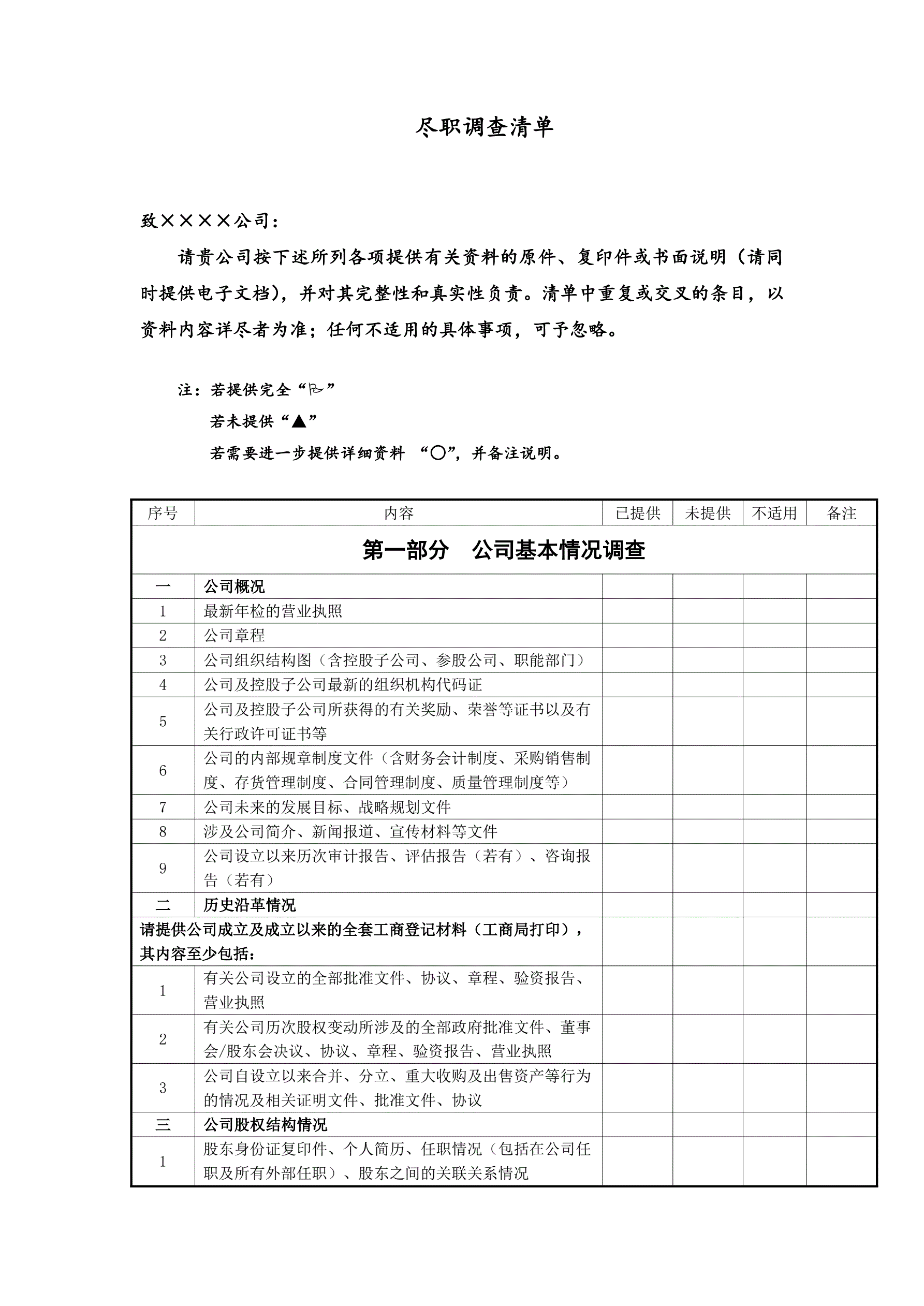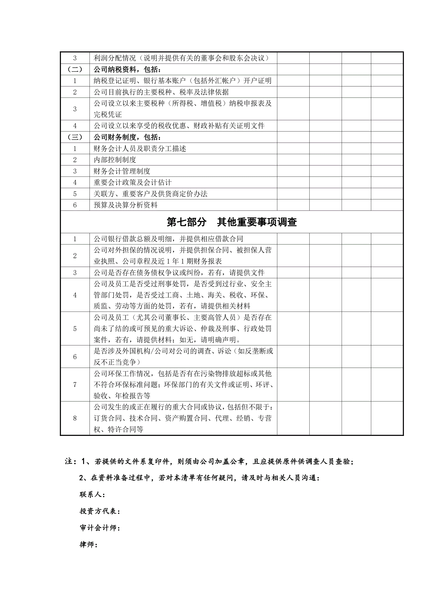 尽职调查清单
