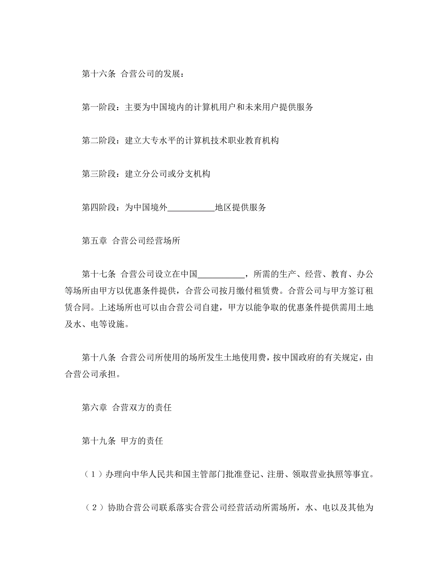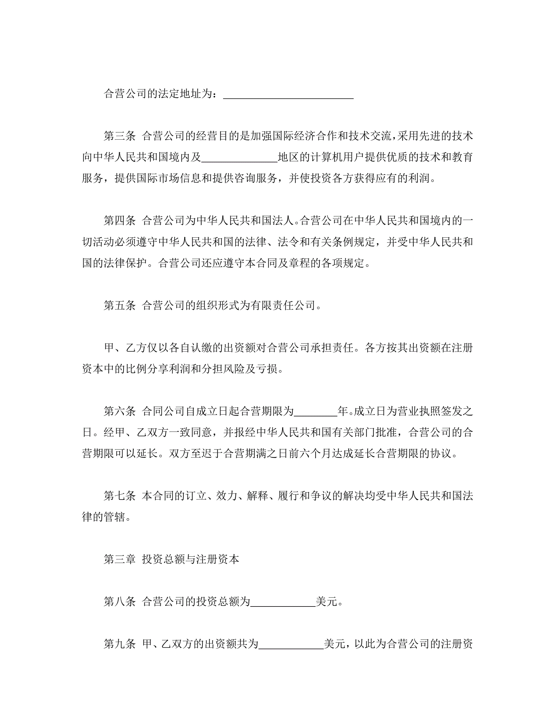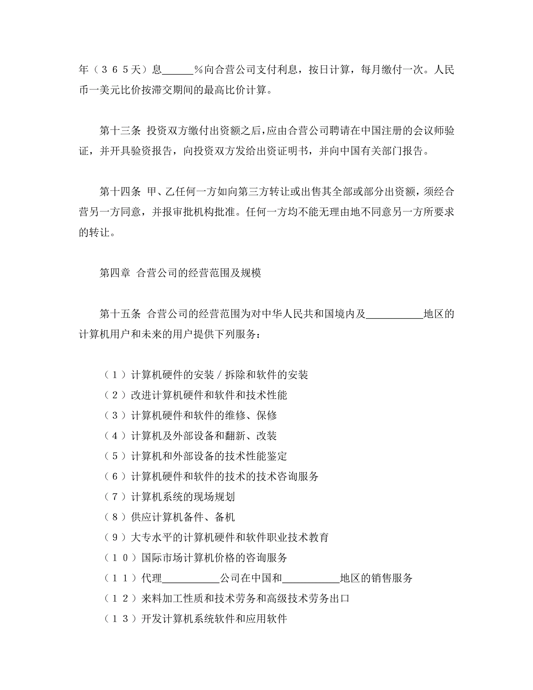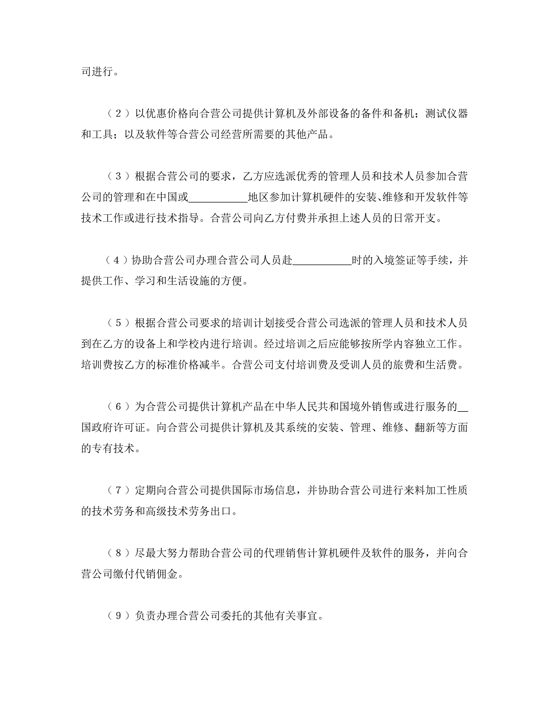 计算机技术及服务合资经营合同