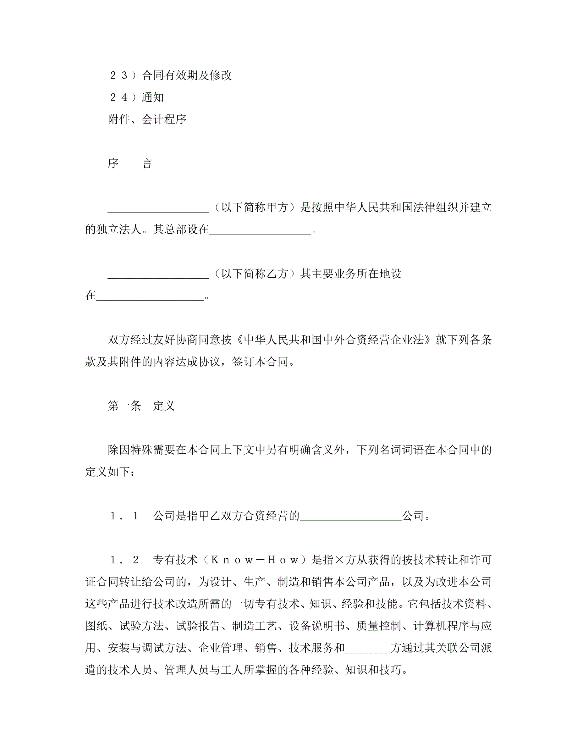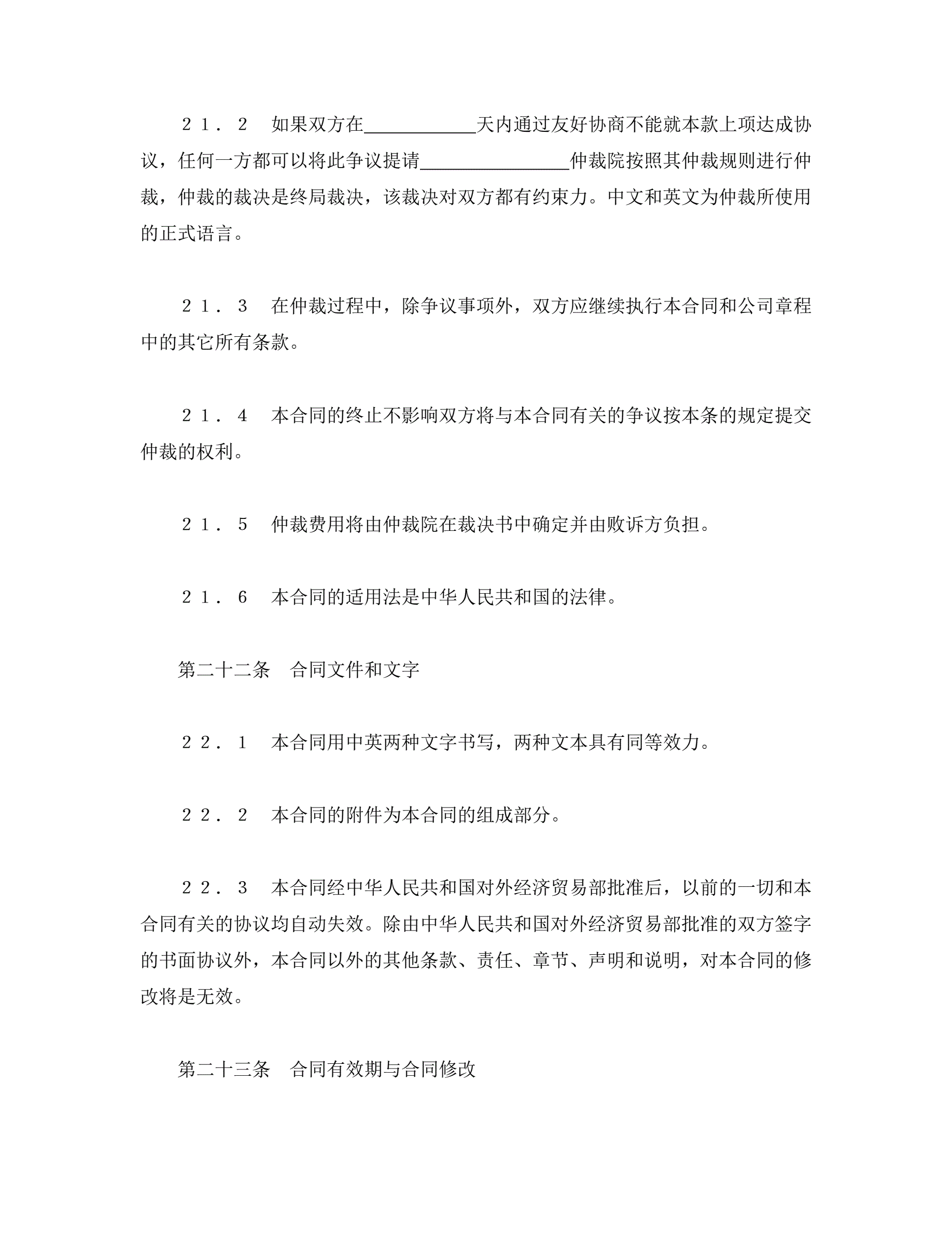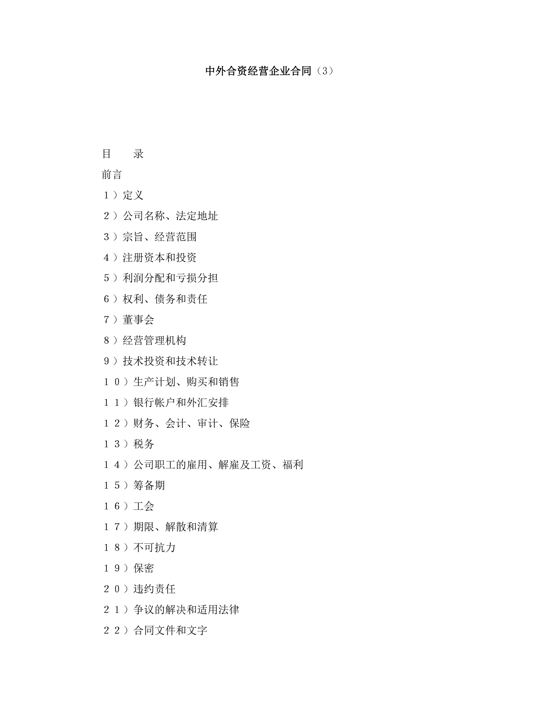 >中外合资经营企业合同(3)