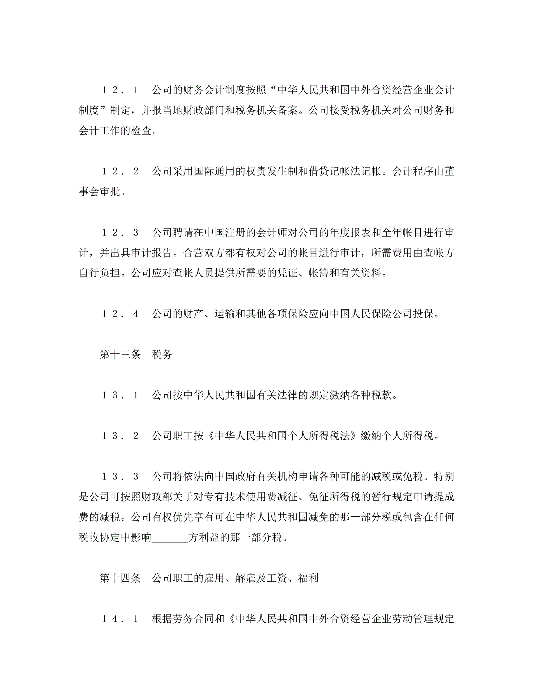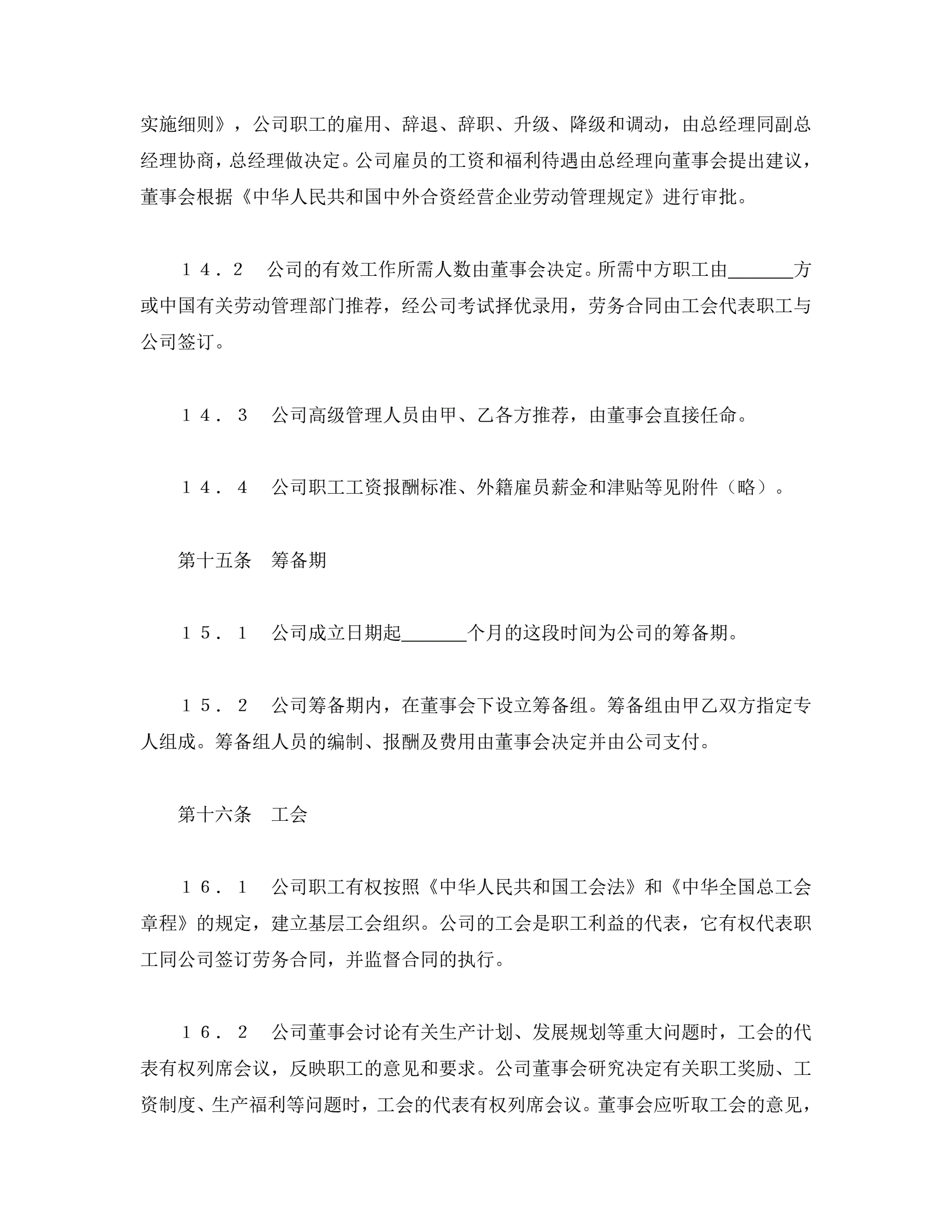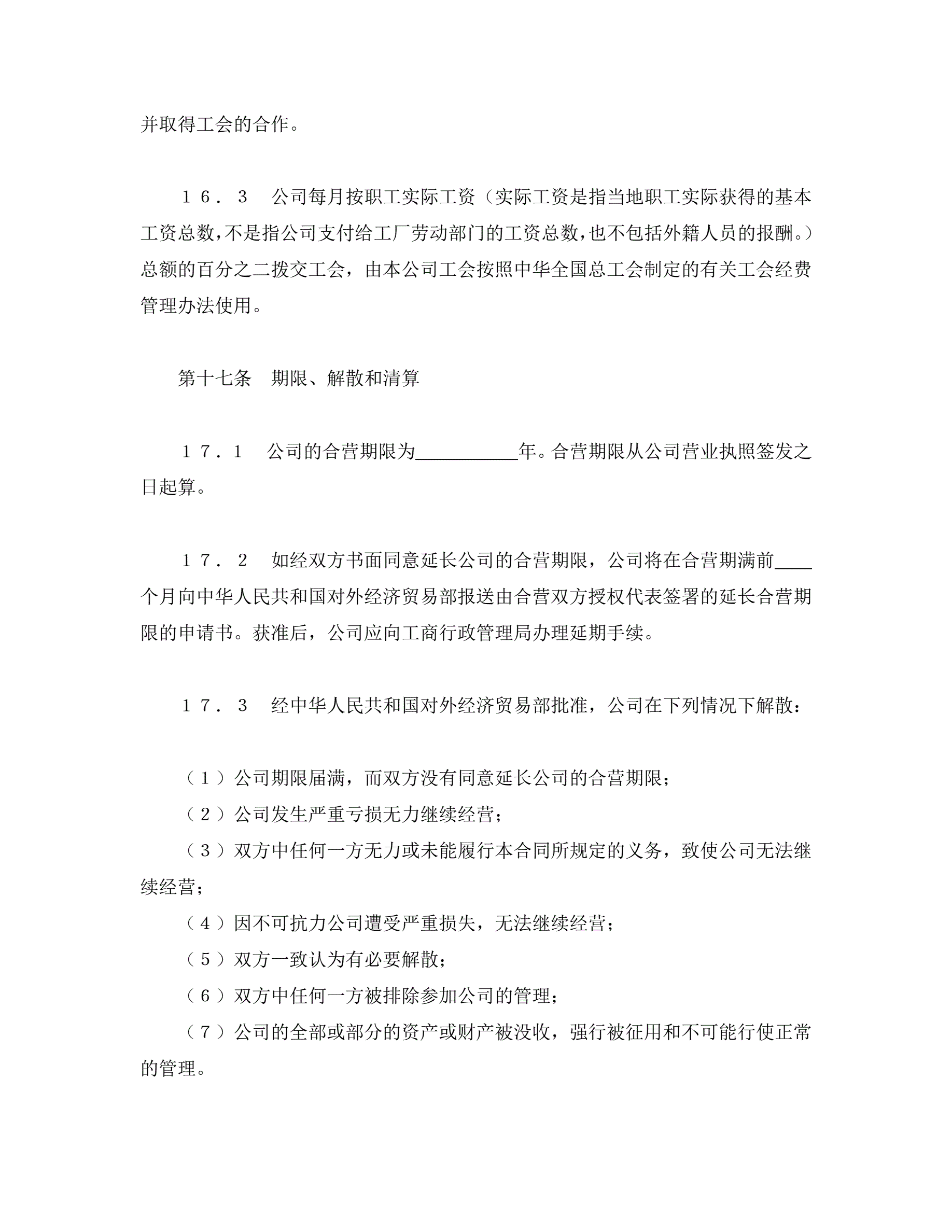 中外合资经营企业合同(3)