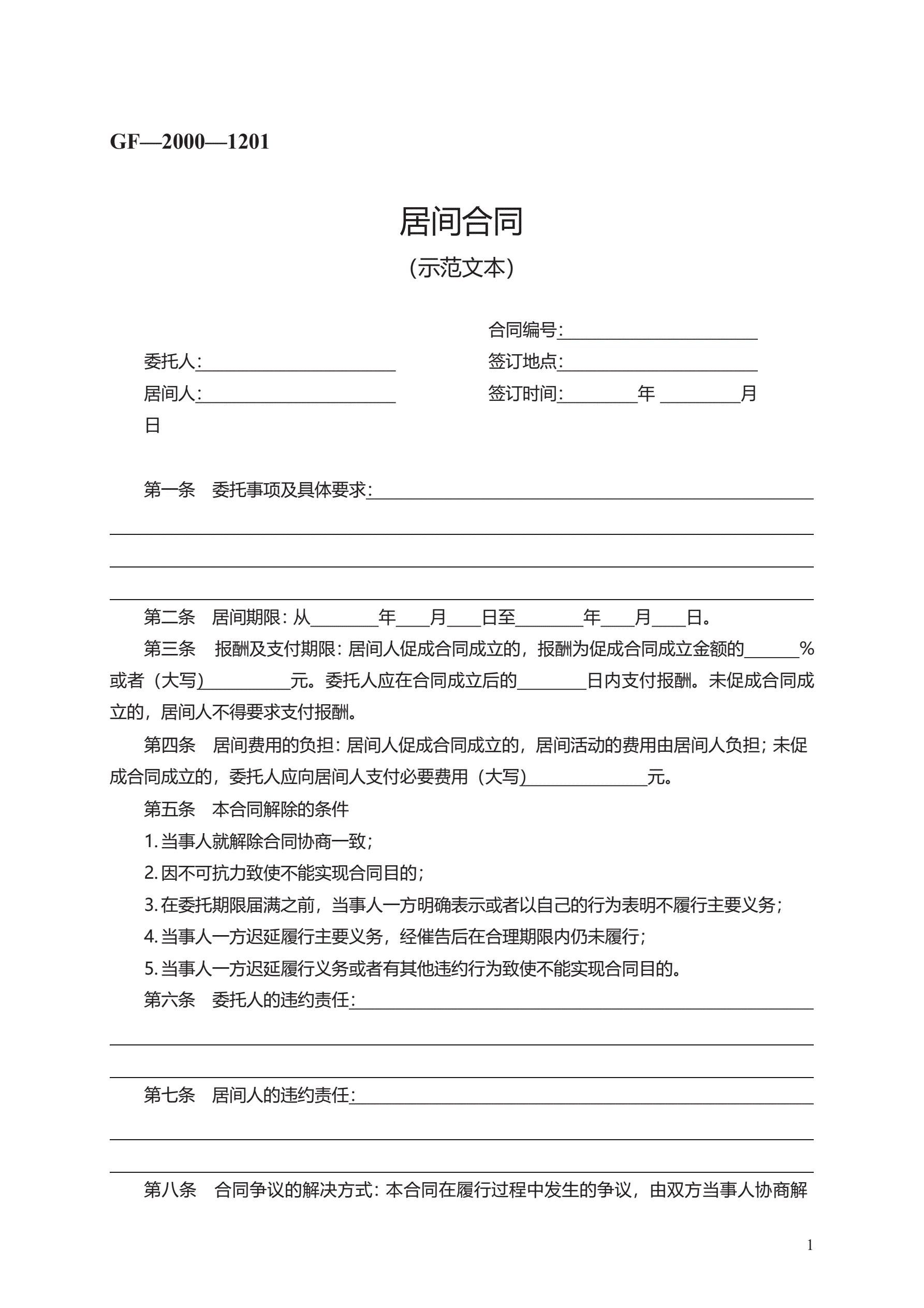 >居间合同 GF—2000—1201