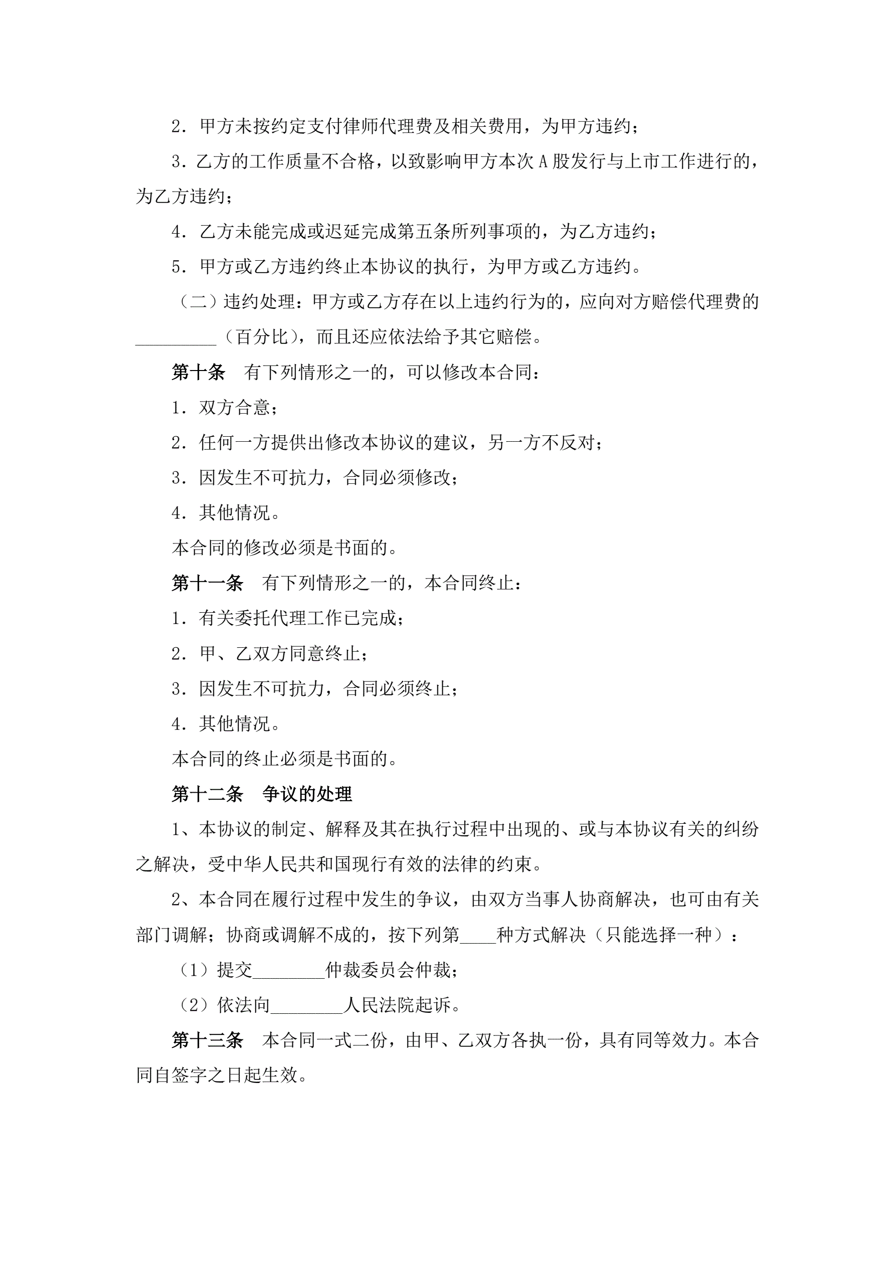 >法律服务合同(股票发行与上市)