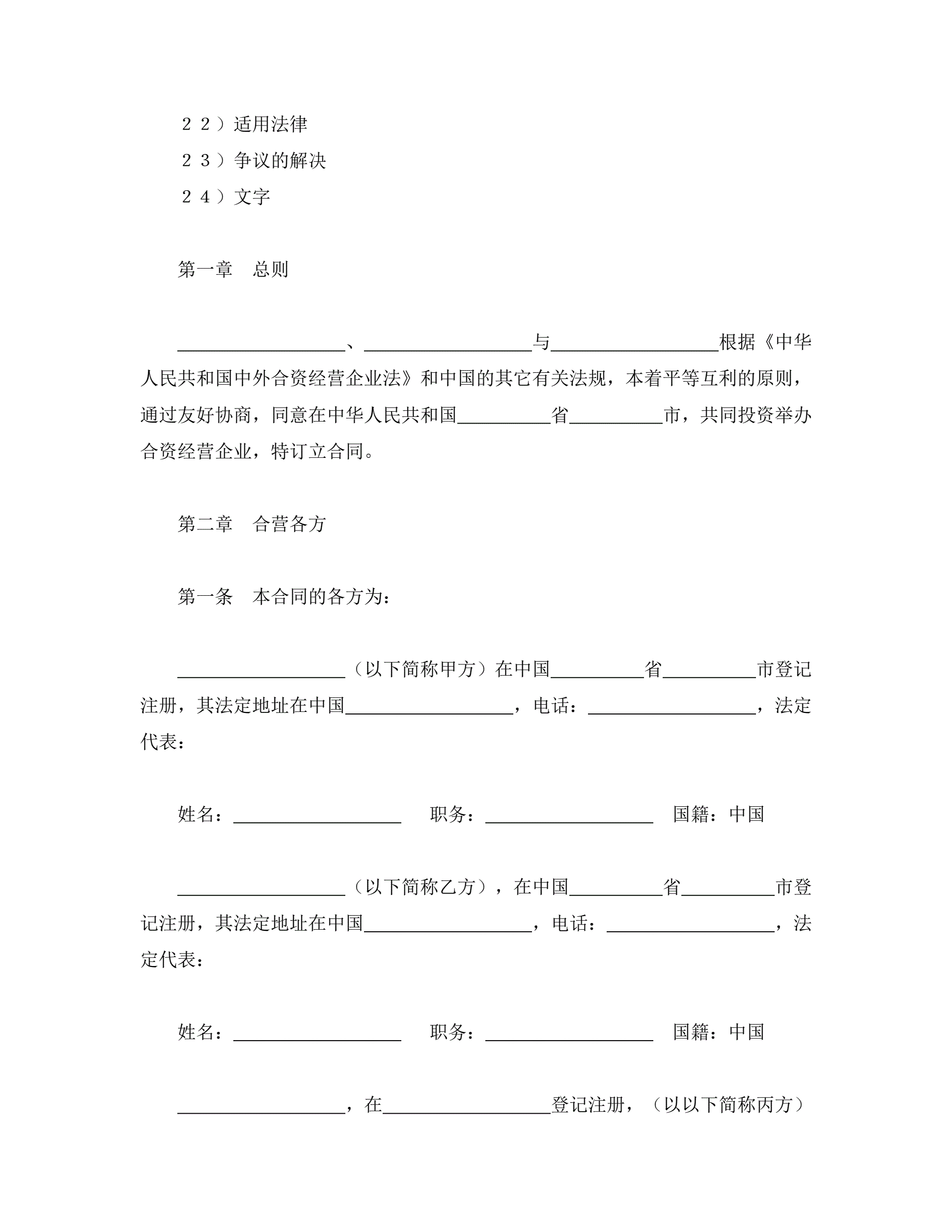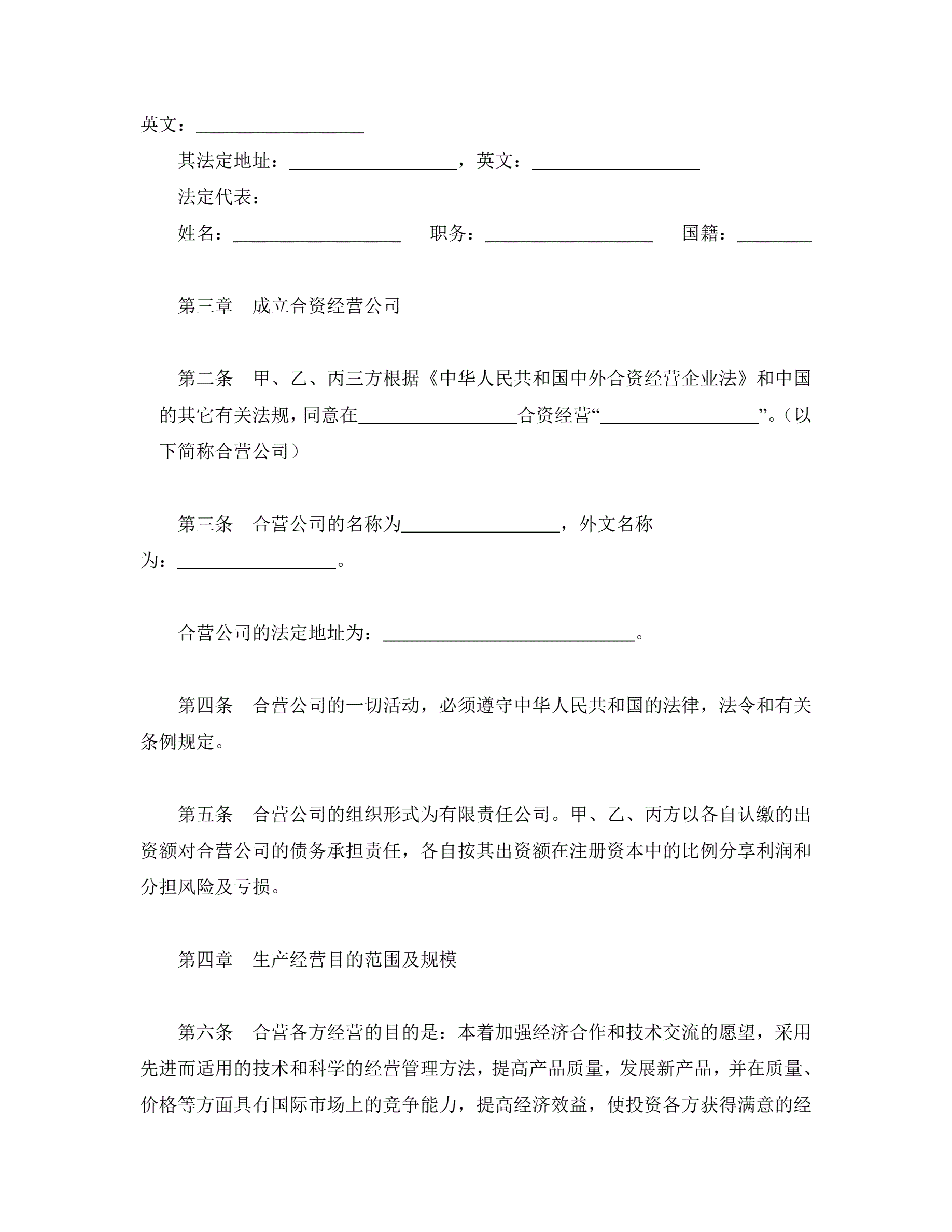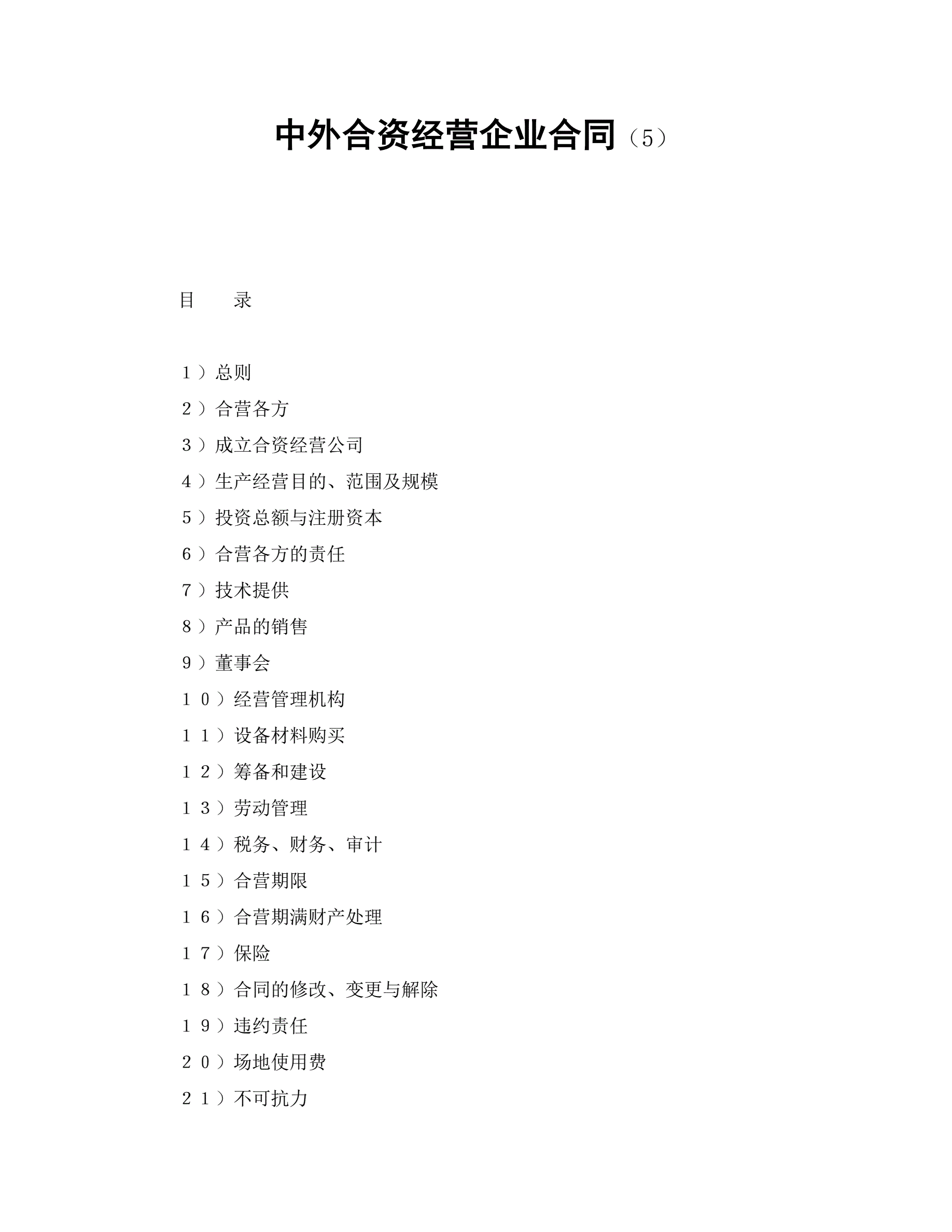 >中外合资经营企业合同(5)
