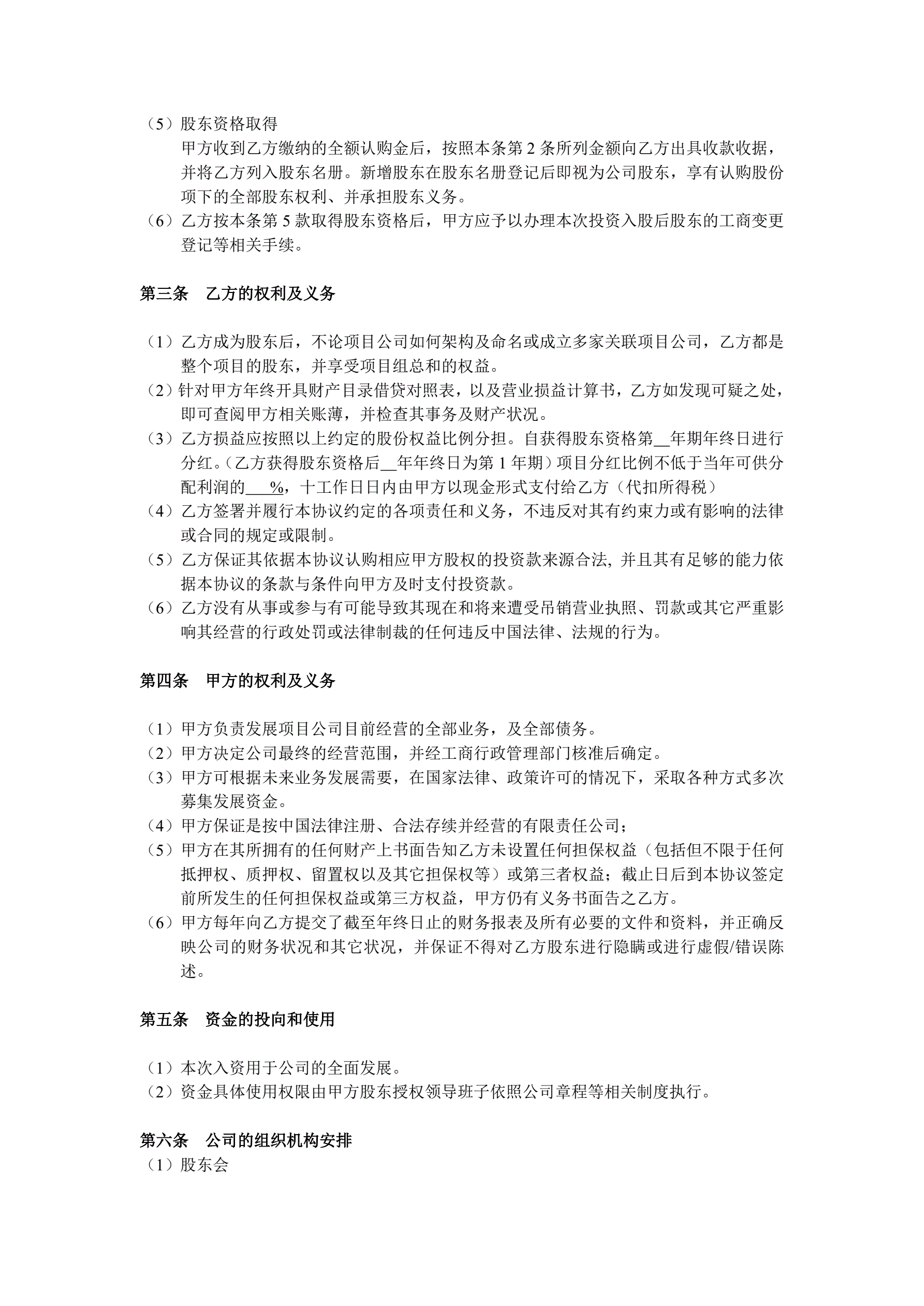 >投资入股协议书(非上市公司)