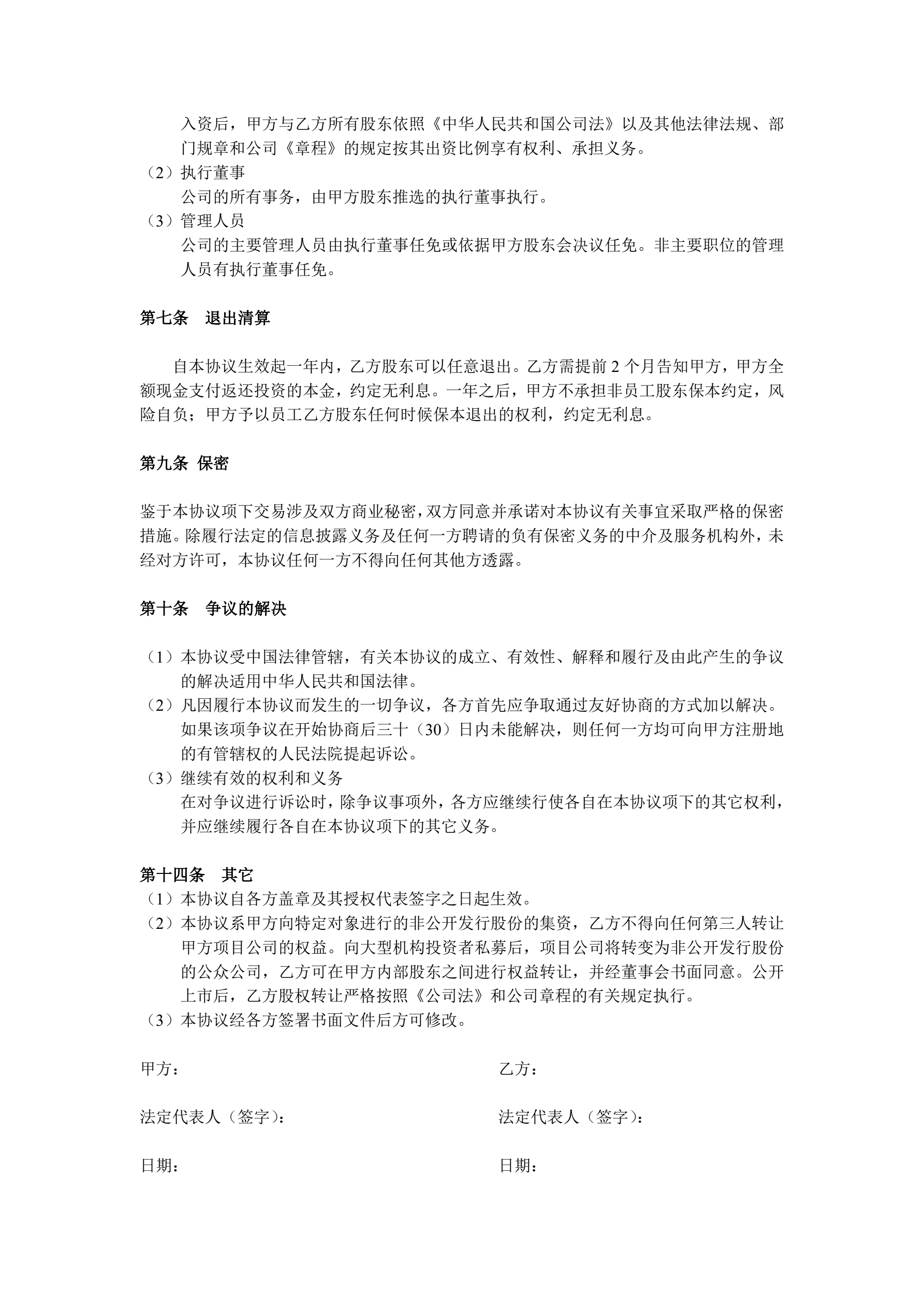 投资入股协议书(非上市公司)