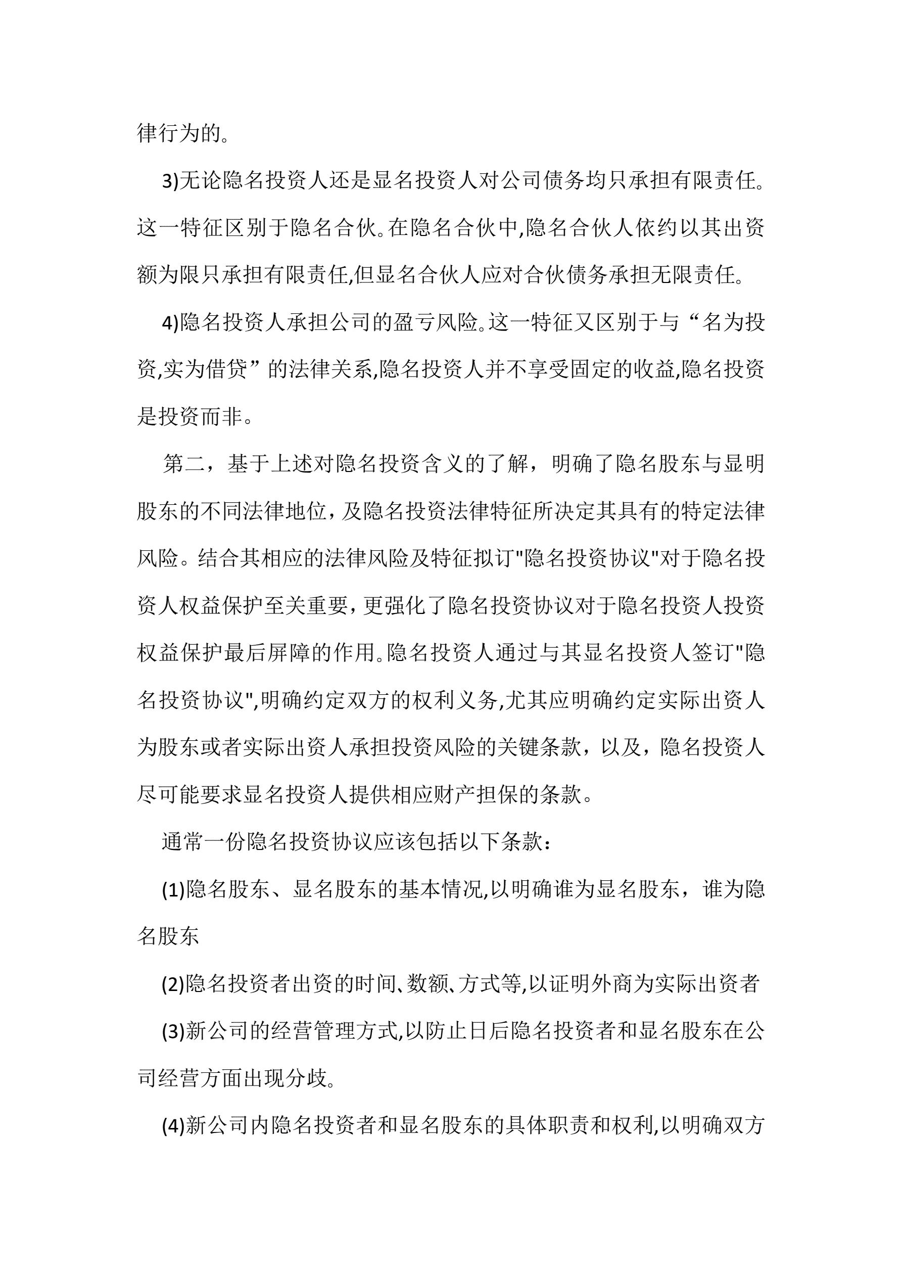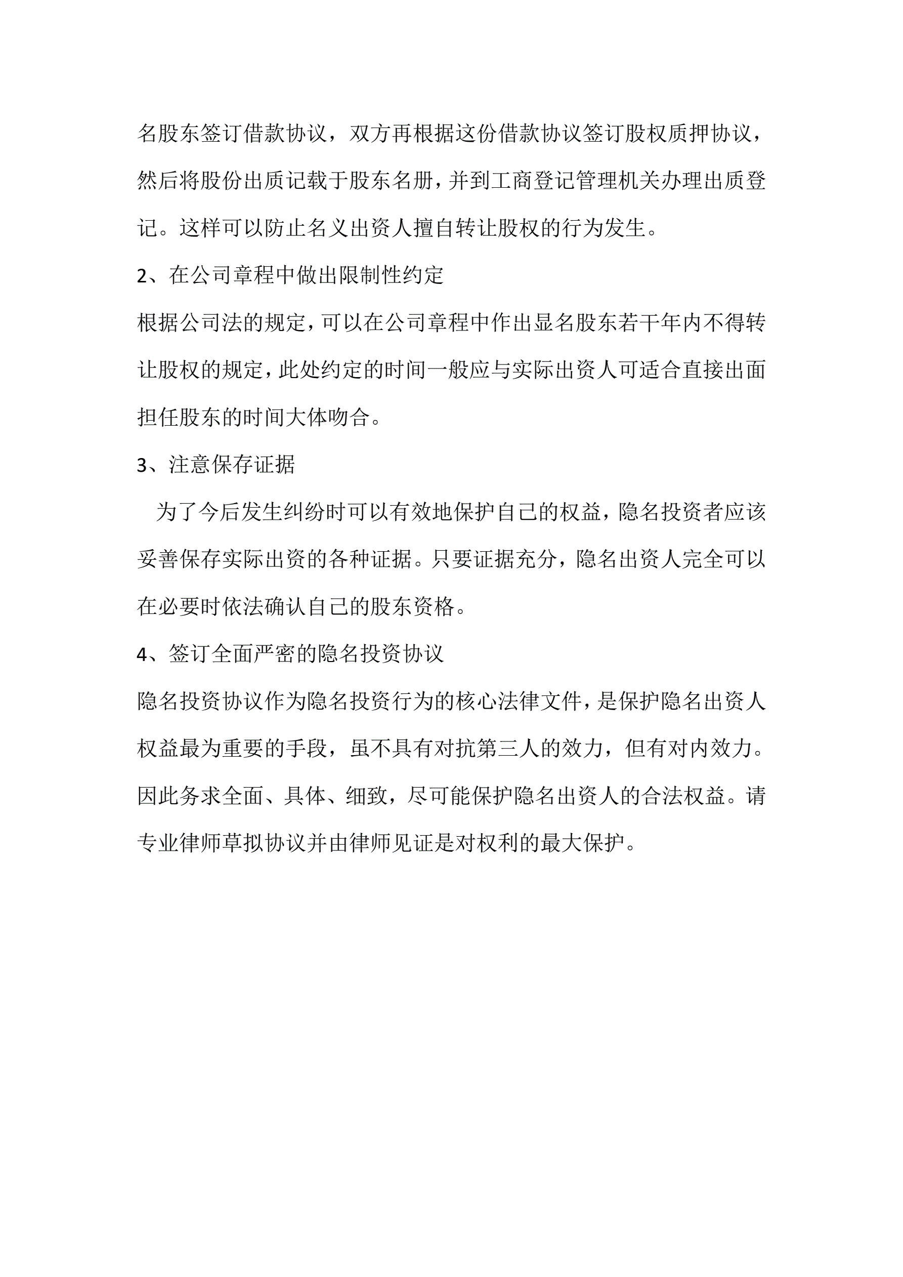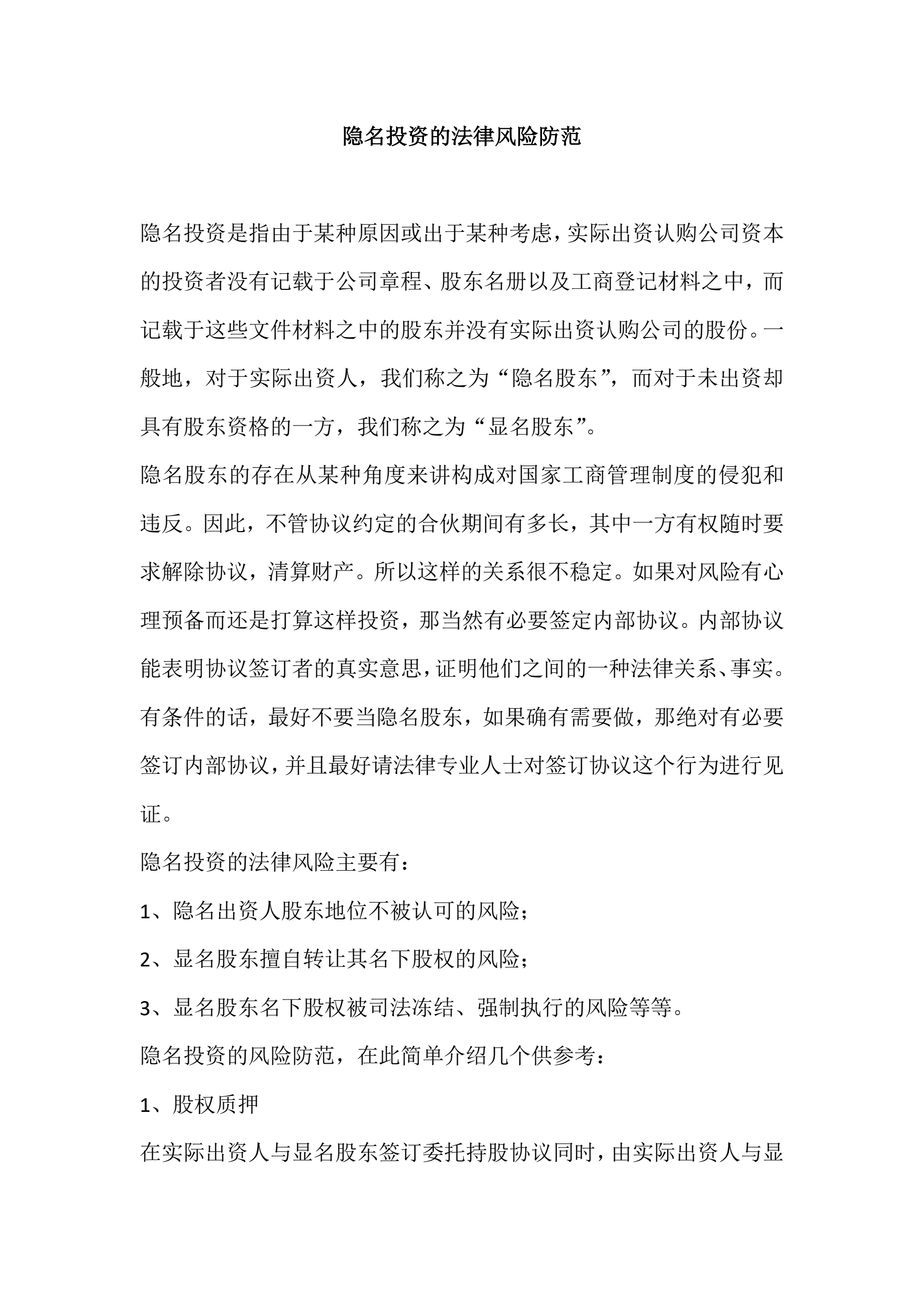 >隐名投资的法律风险防范