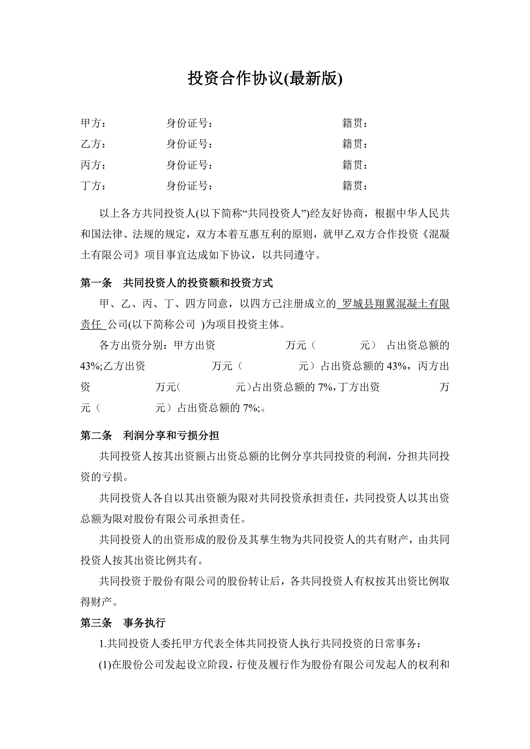 投资合作协议书范本(最新版)