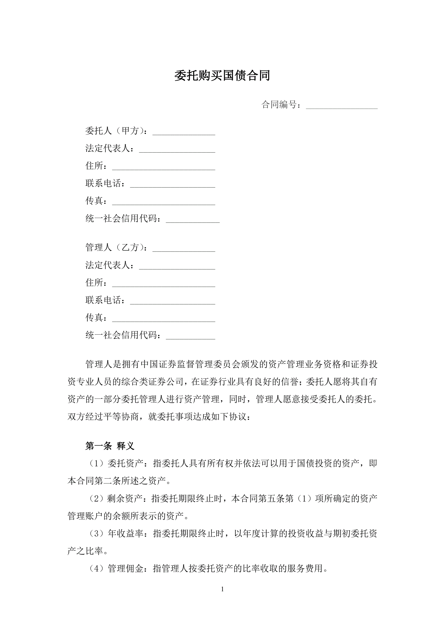 委托购买国债合同