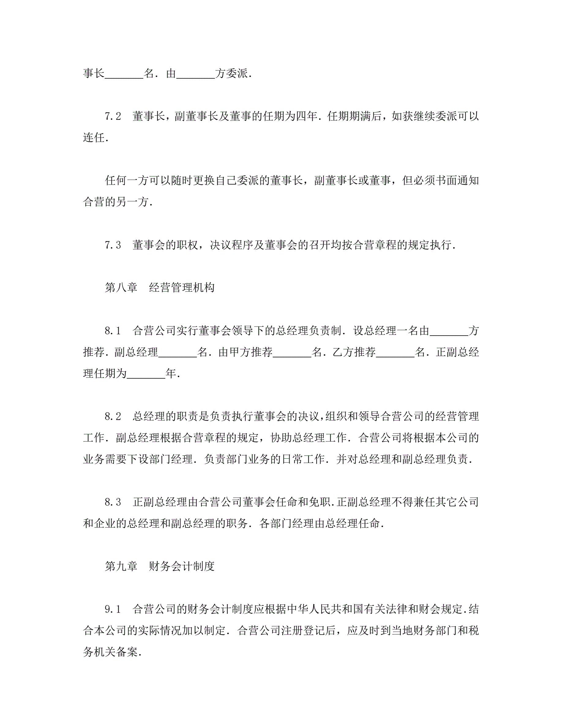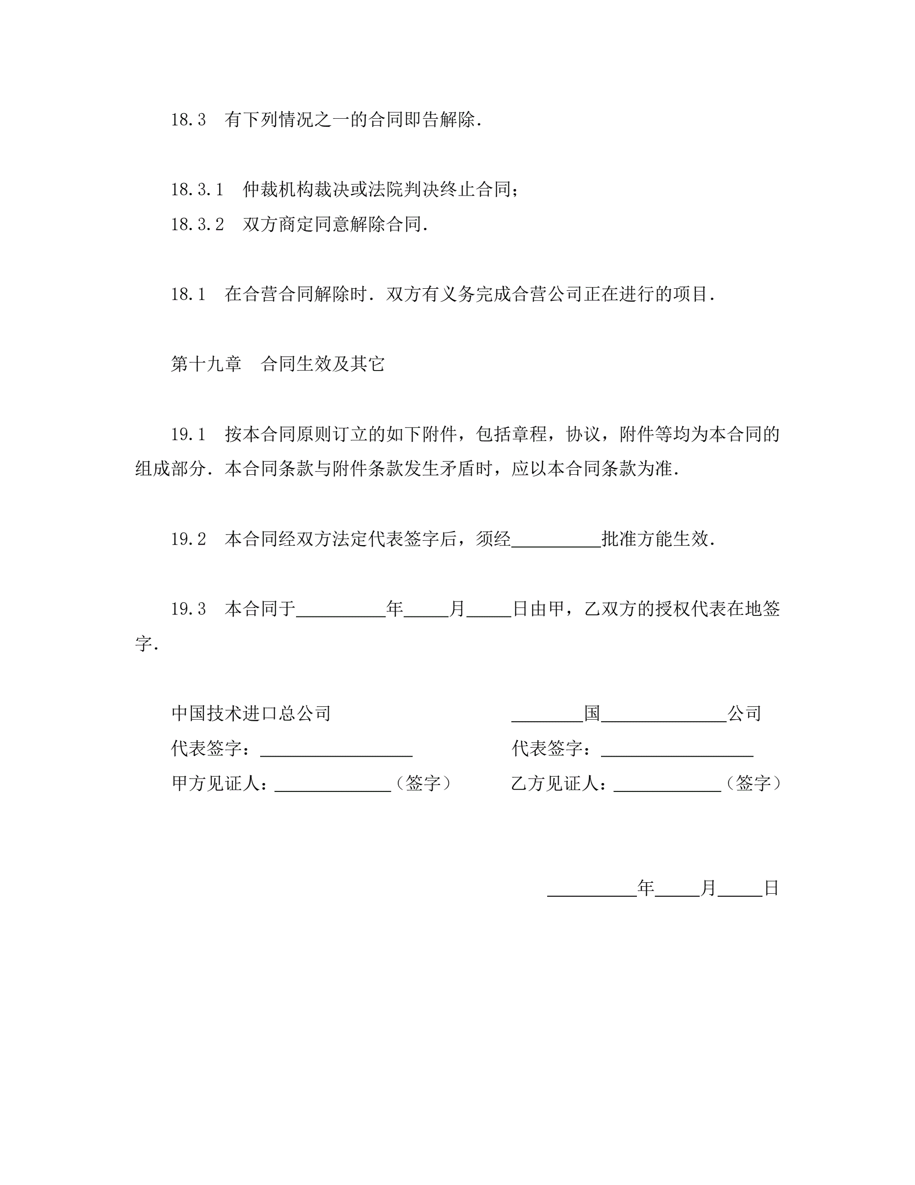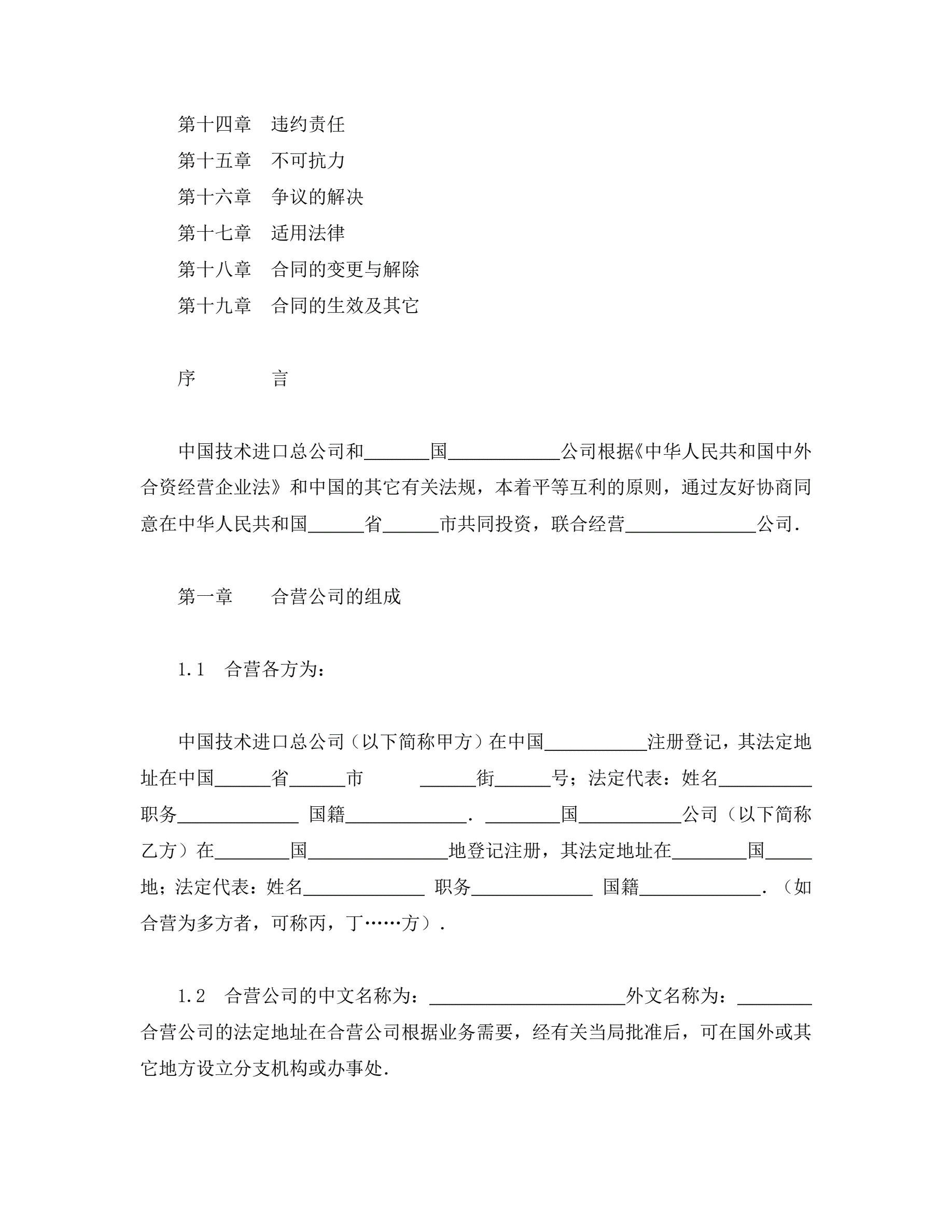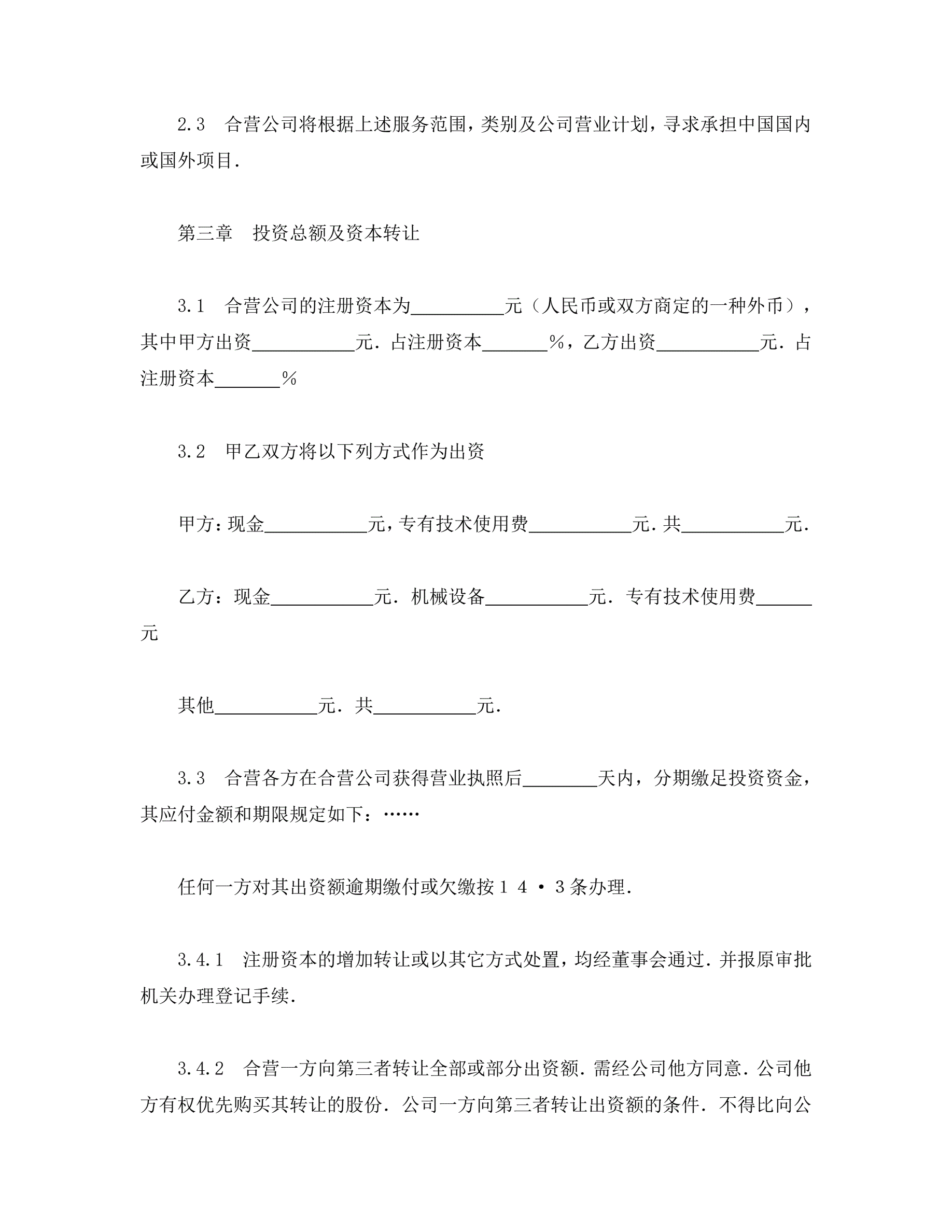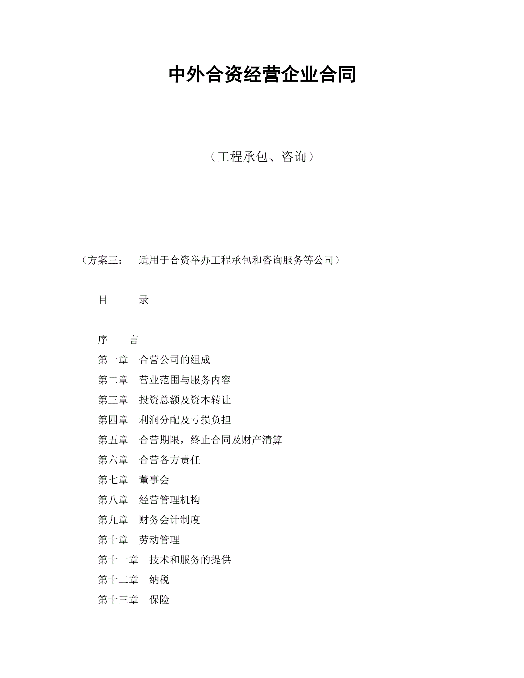>中外合资经营企业合同(工程承包、咨询)