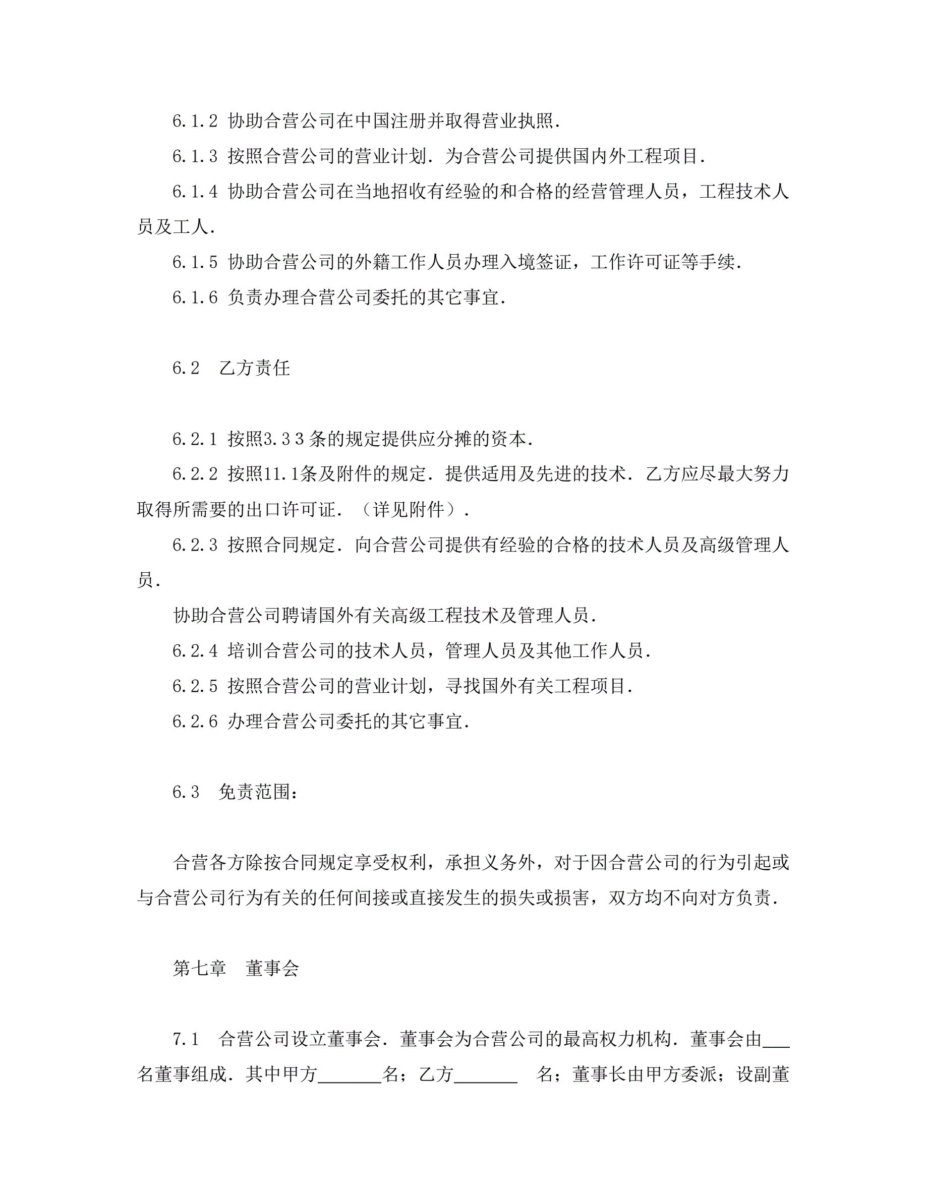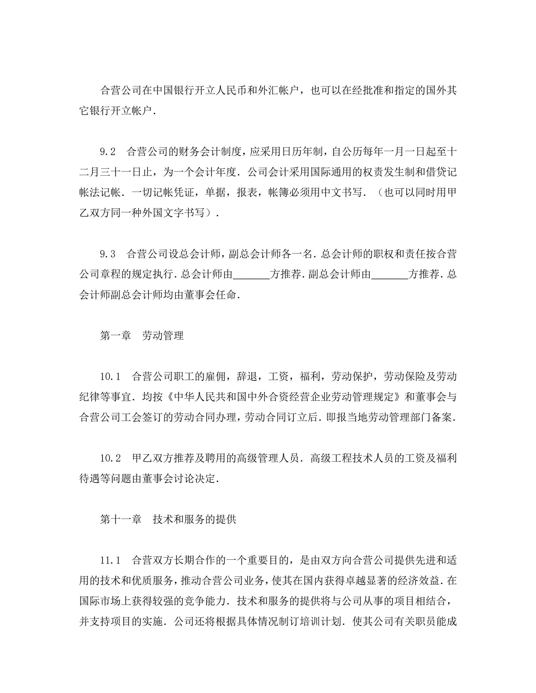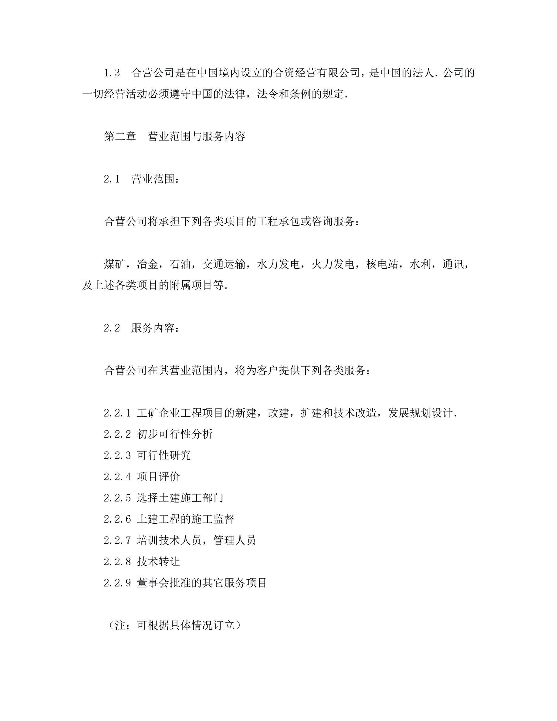 中外合资经营企业合同(工程承包、咨询)