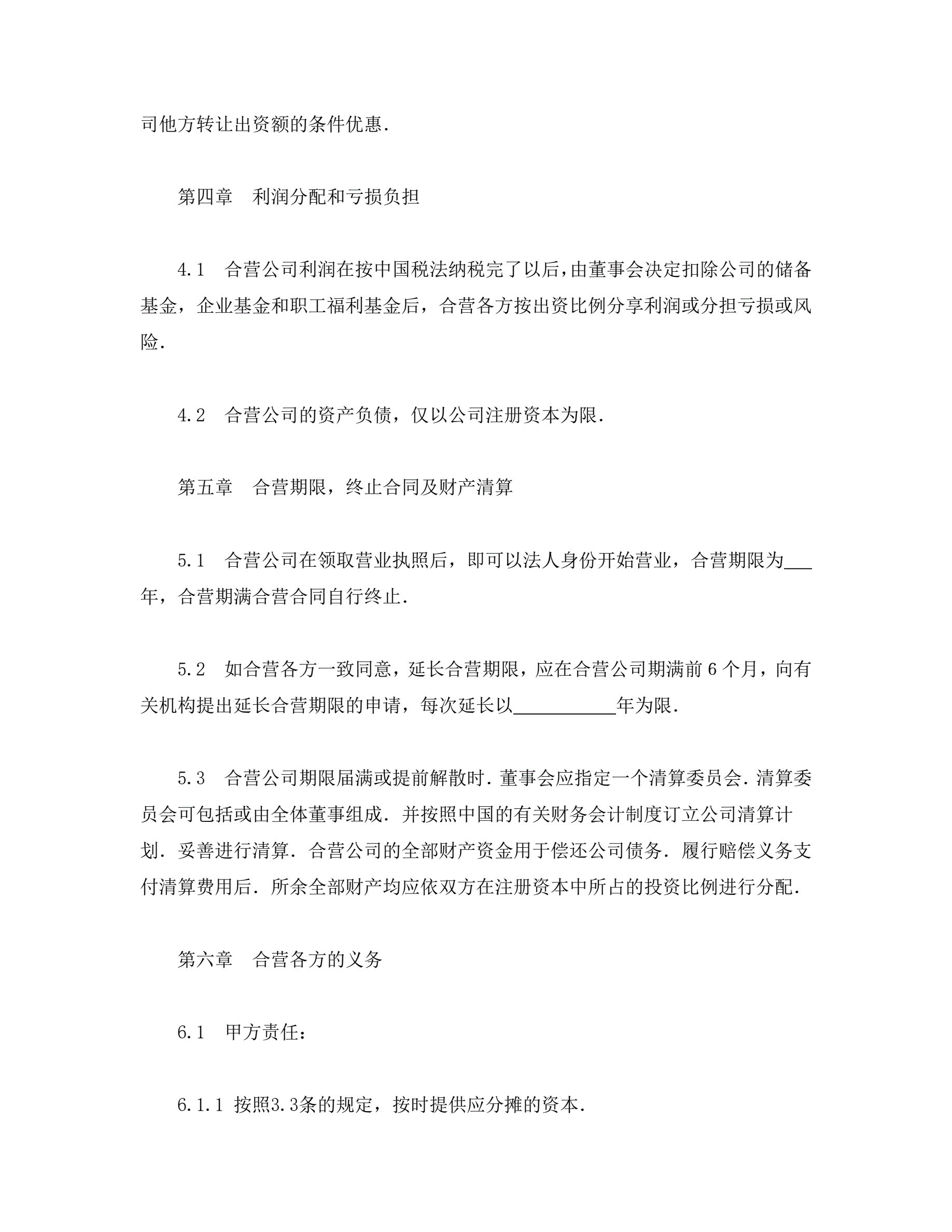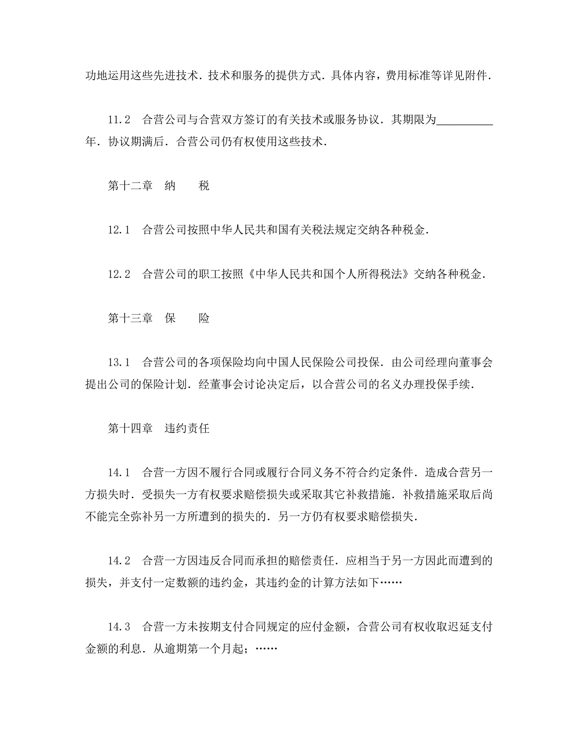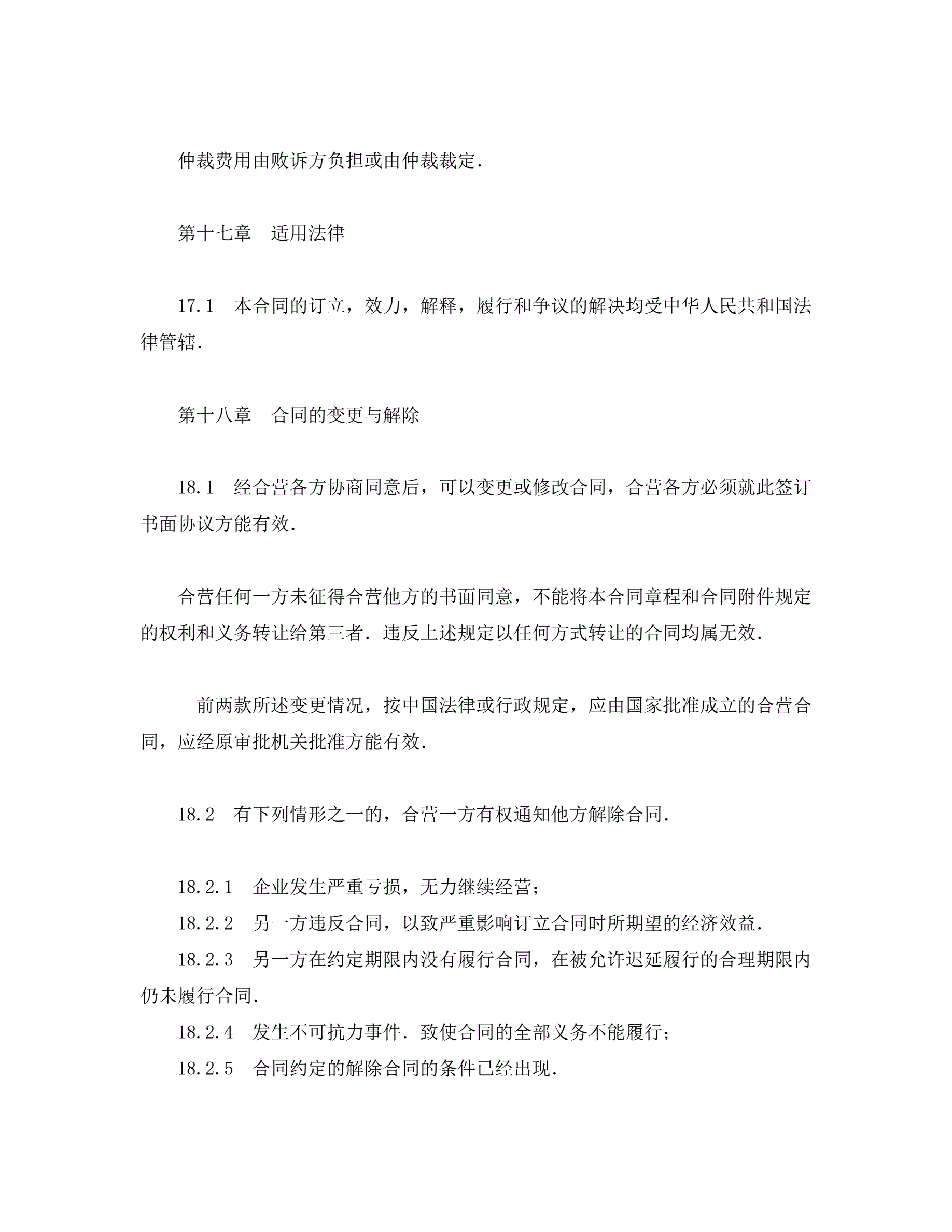 中外合资经营企业合同(工程承包、咨询)
