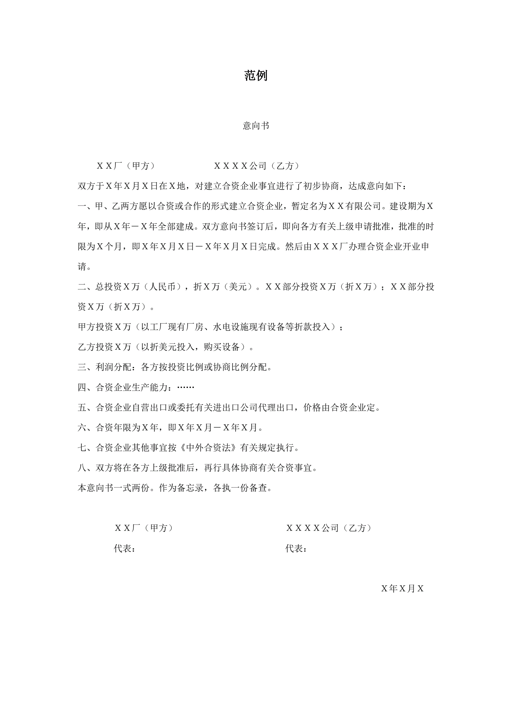 意向书范例