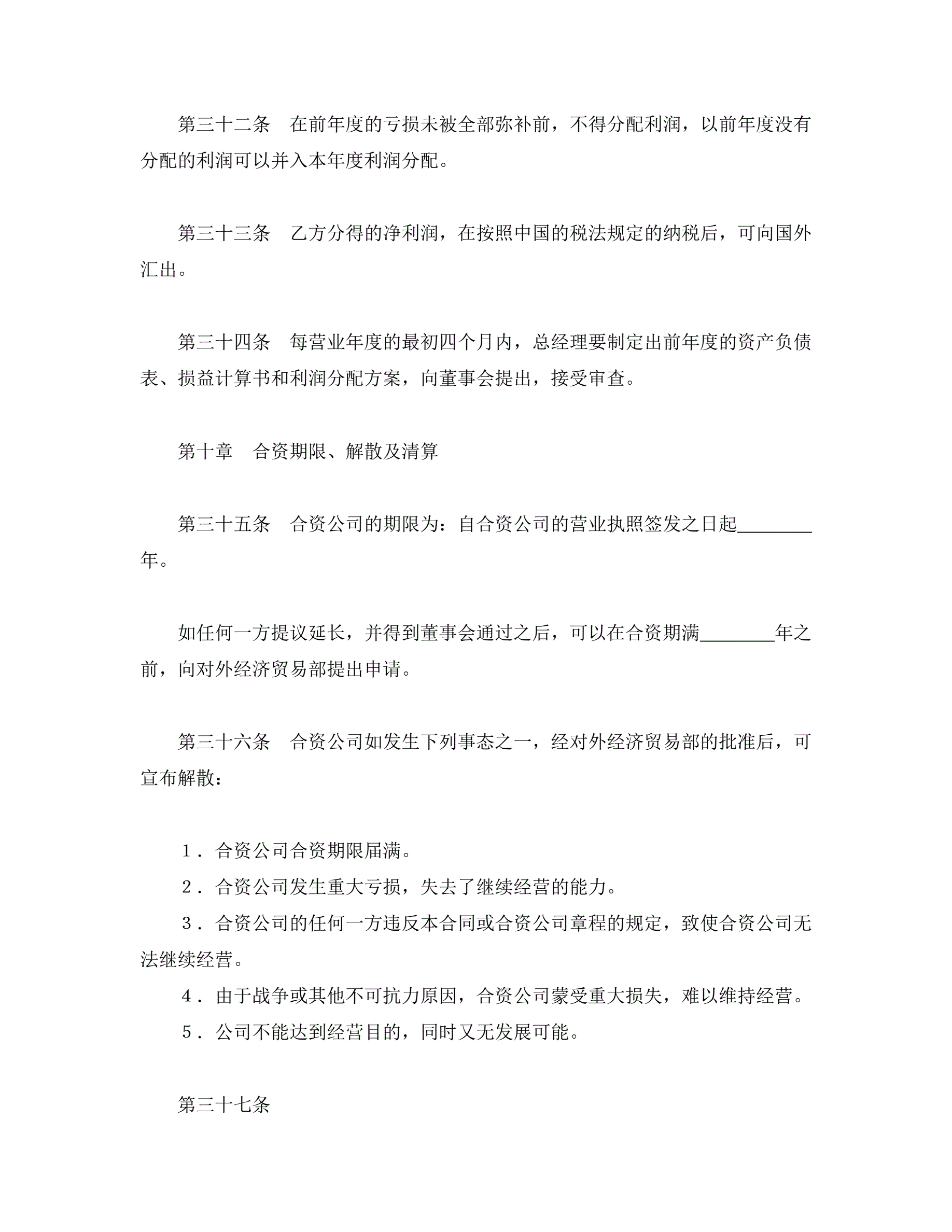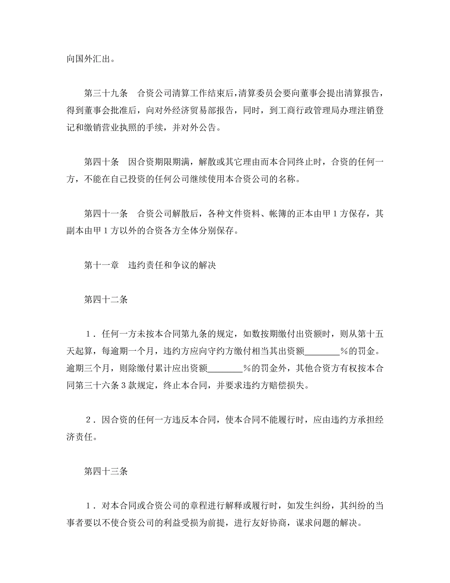 中外合资经营企业合同(金融2)