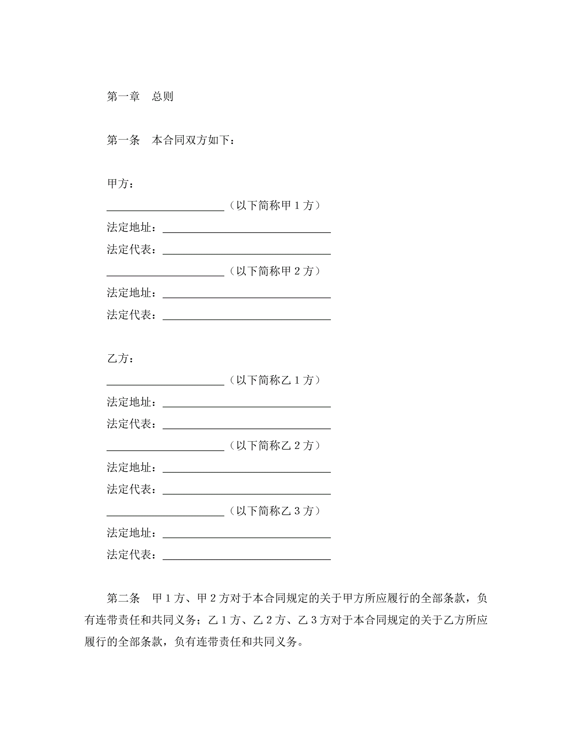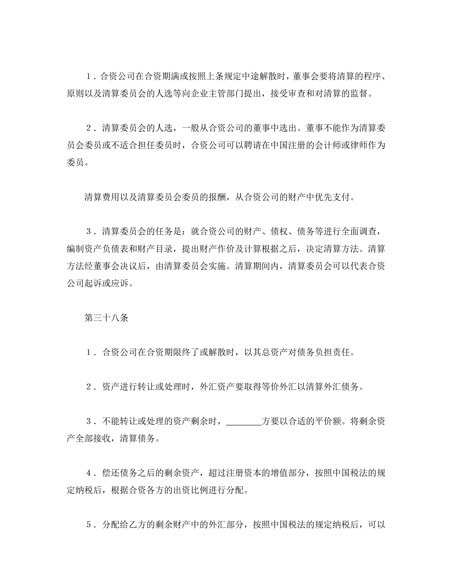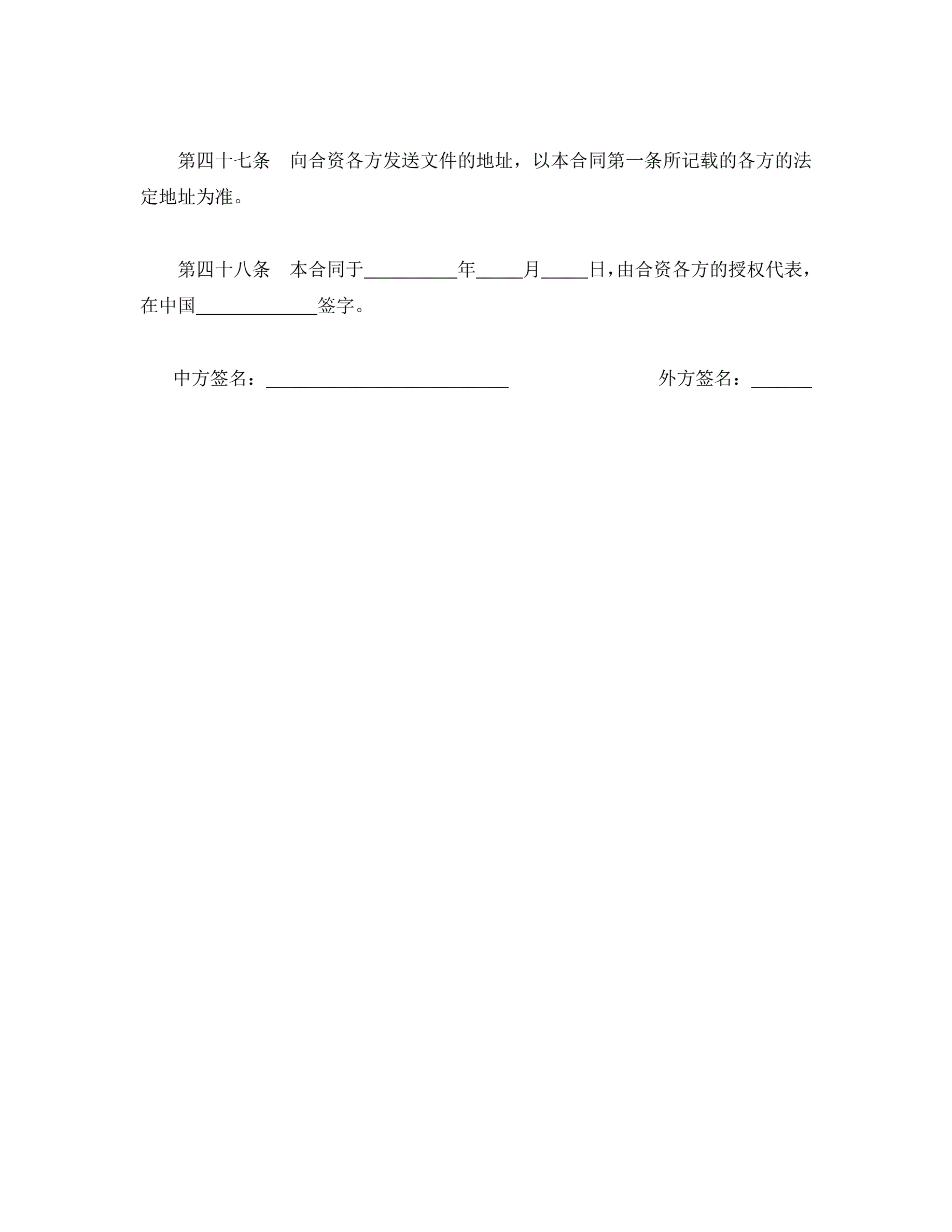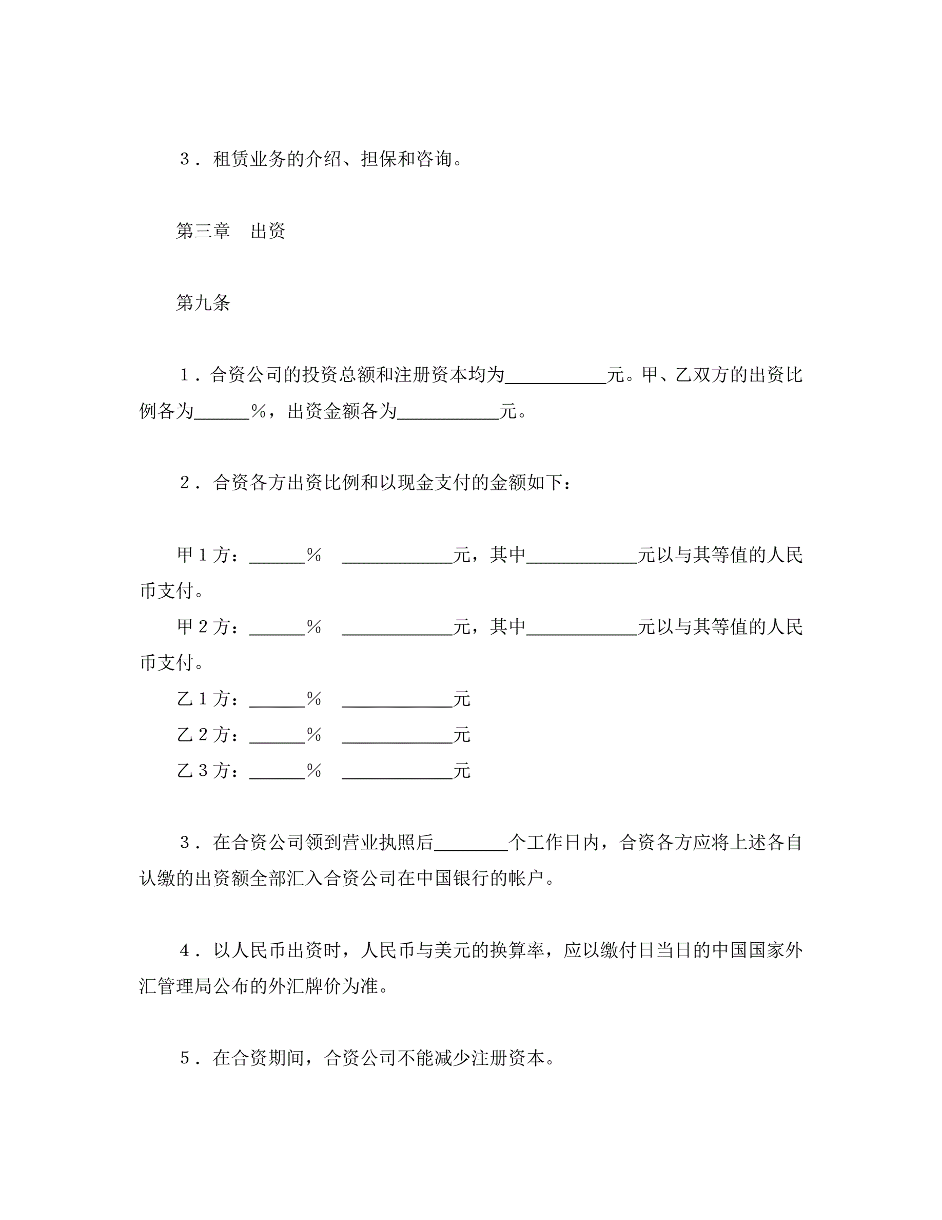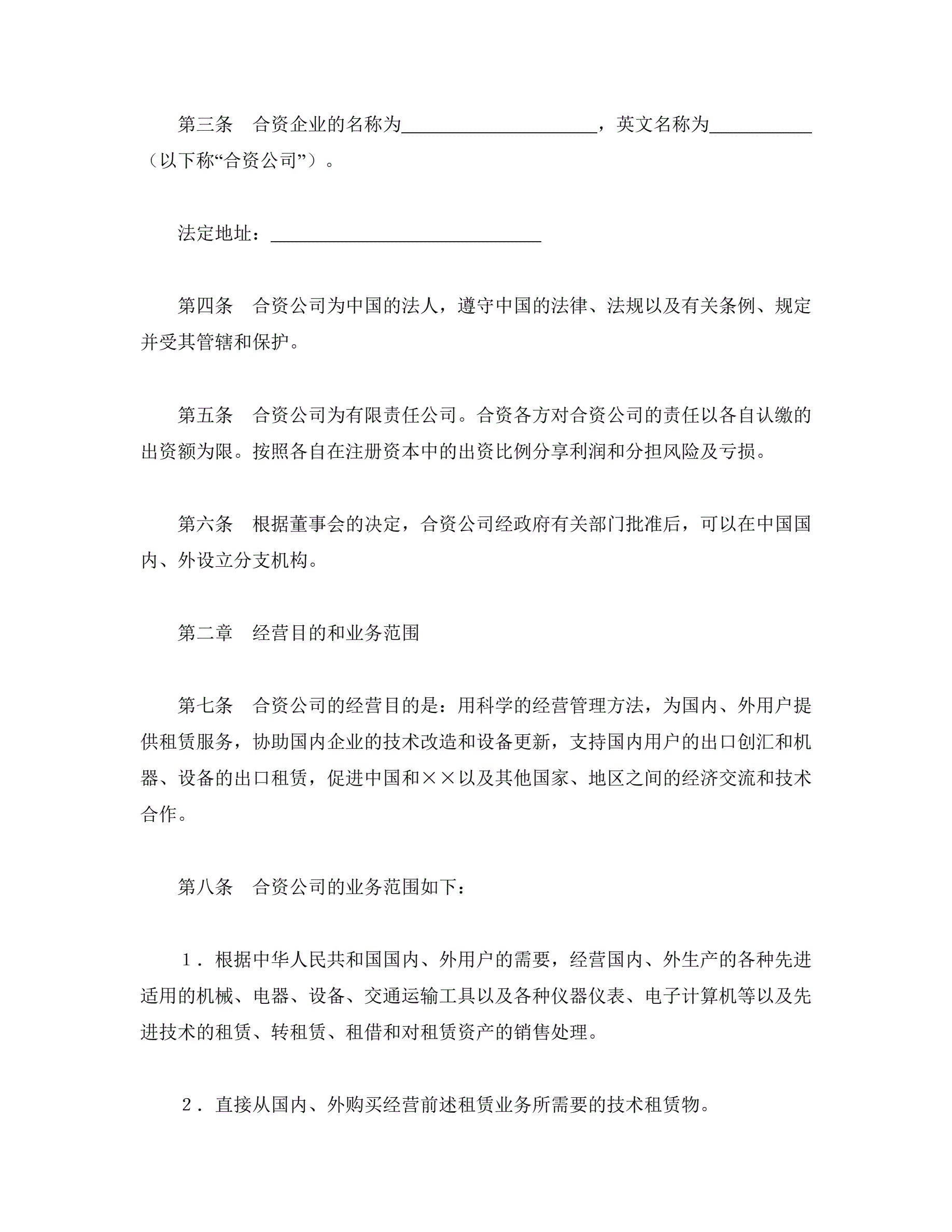 >中外合资经营企业合同(金融2)