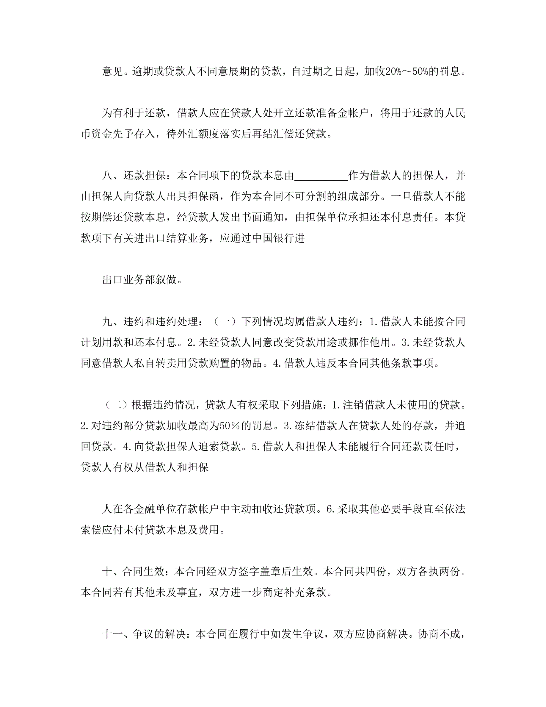 流动资金外汇借贷合同