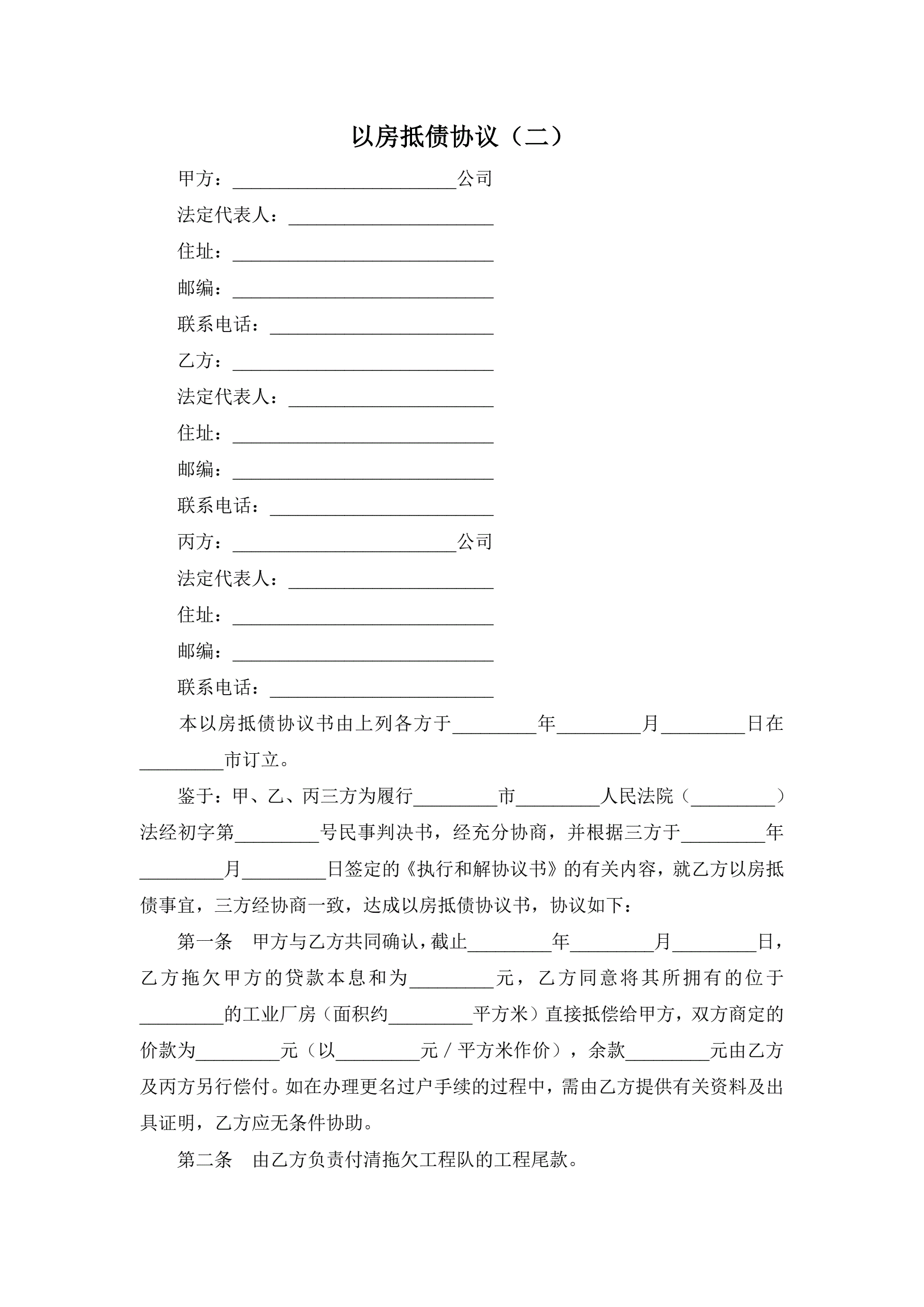 以房抵债协议