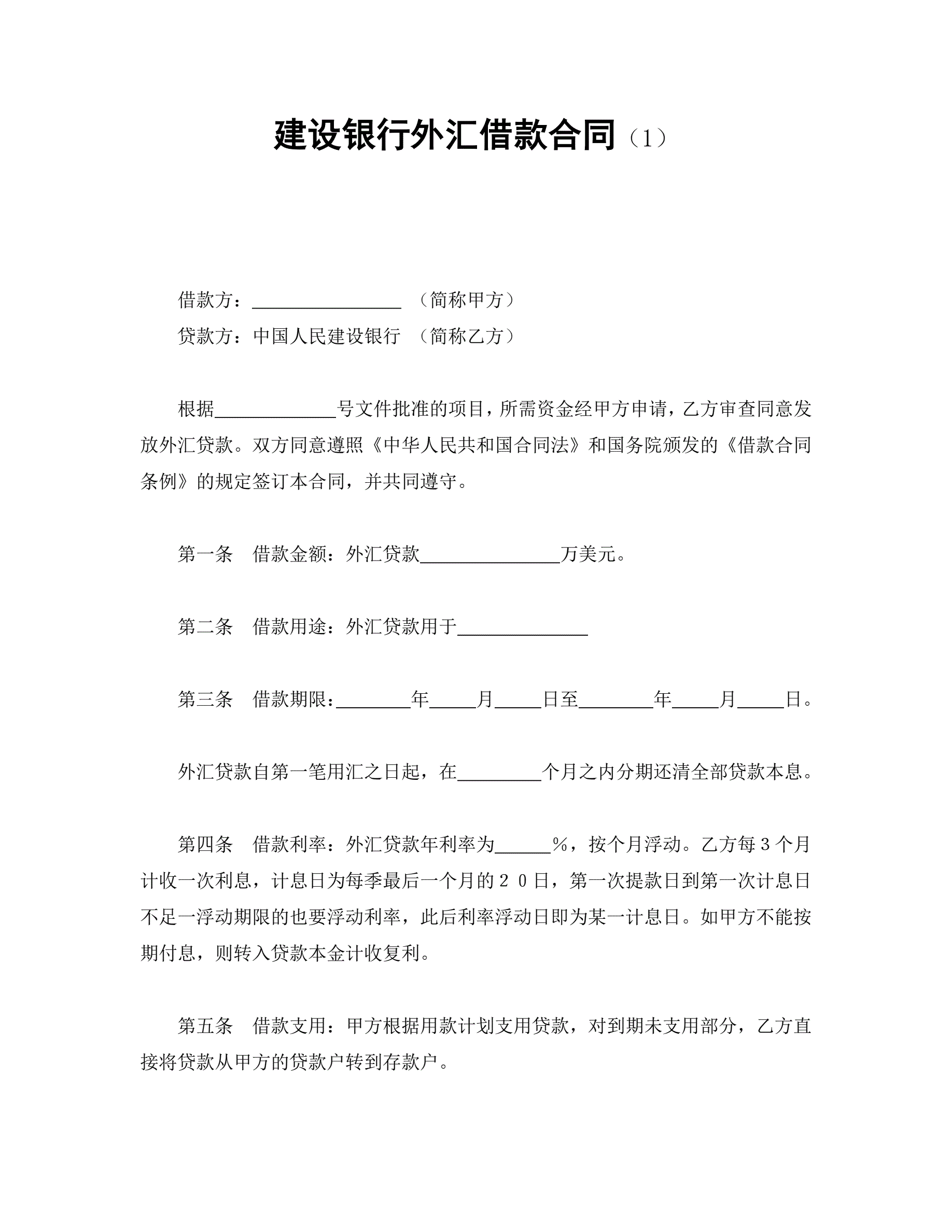 >建设银行外汇借款合同(1)