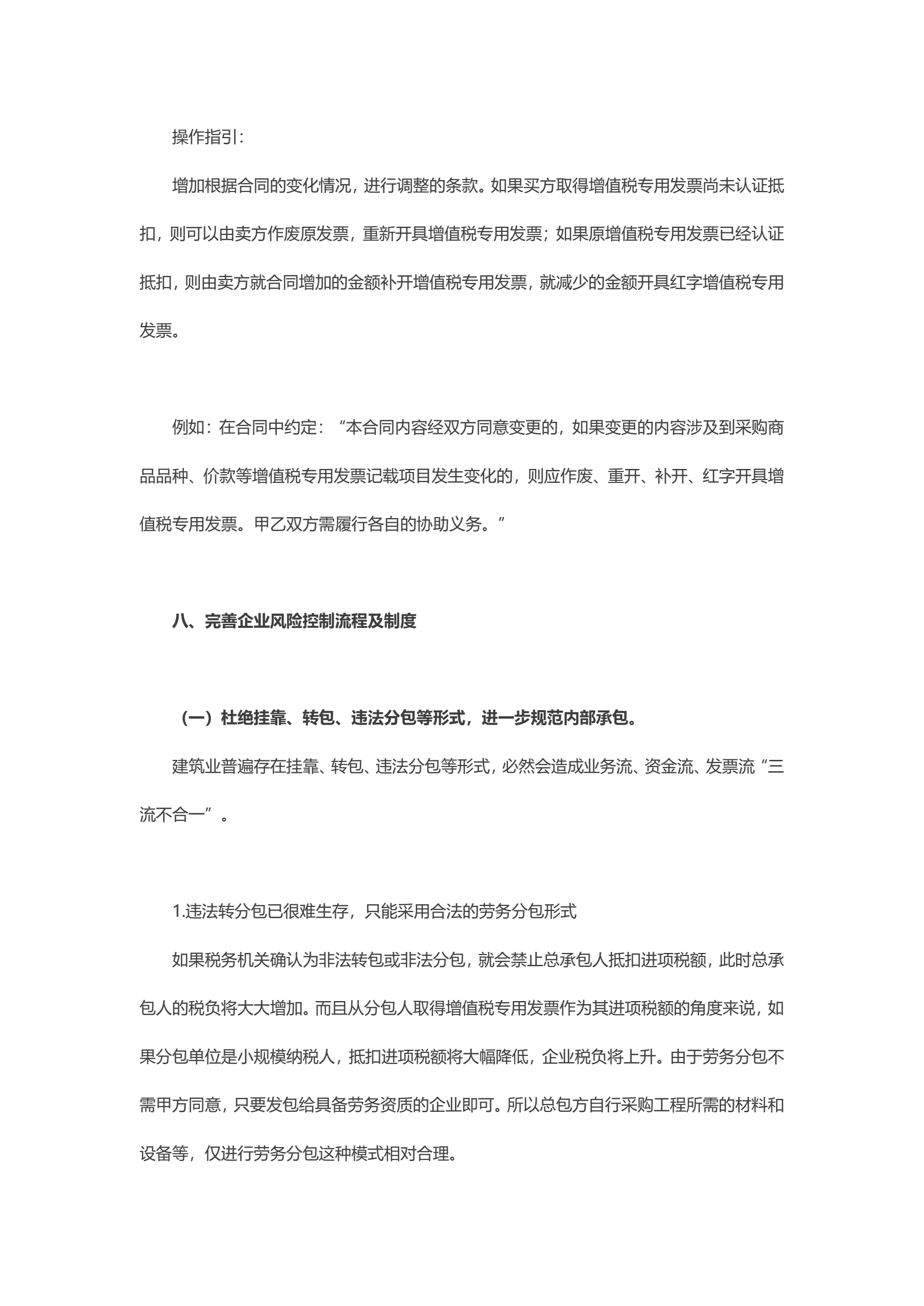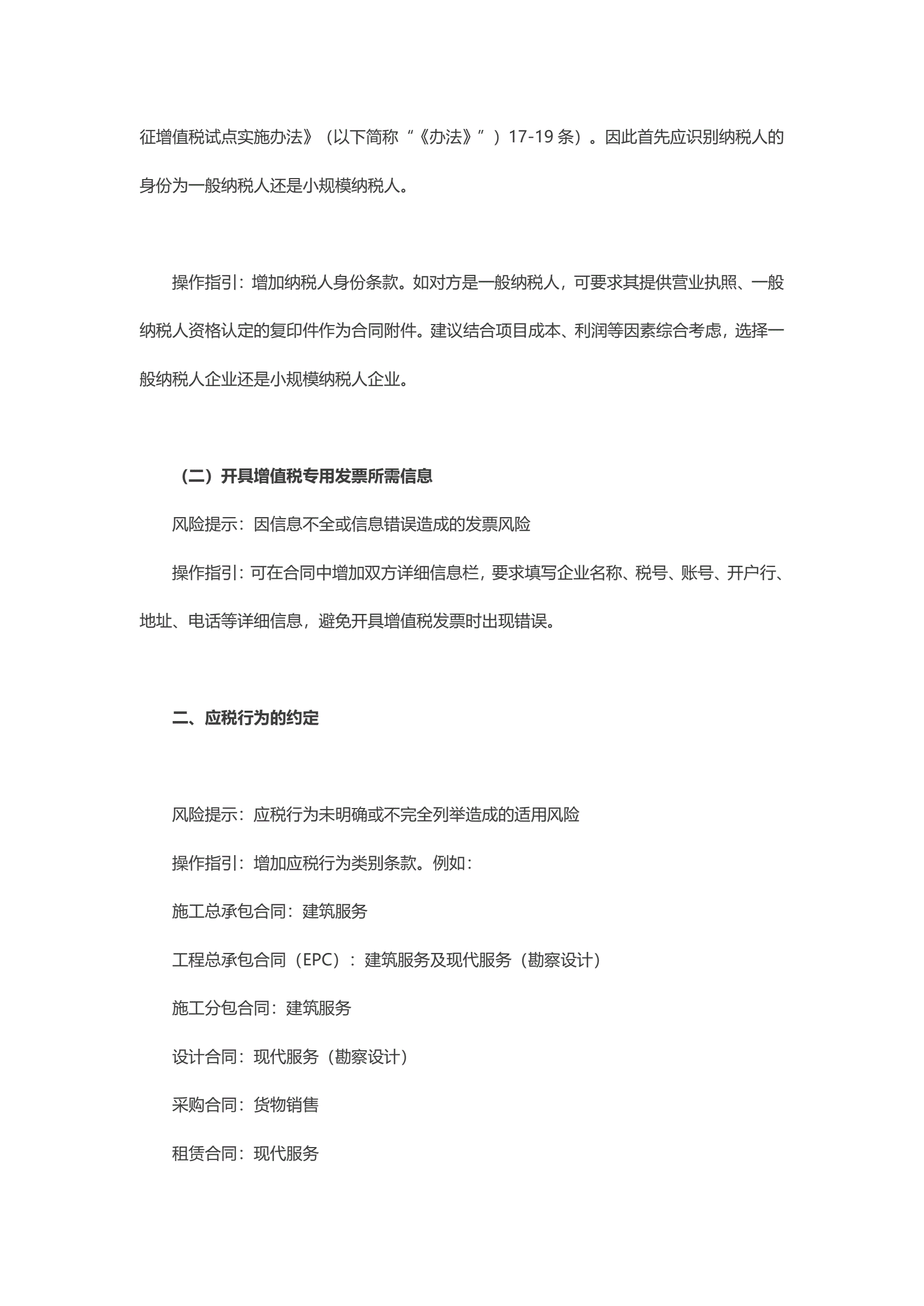针对营改增施工企业合同操作指引