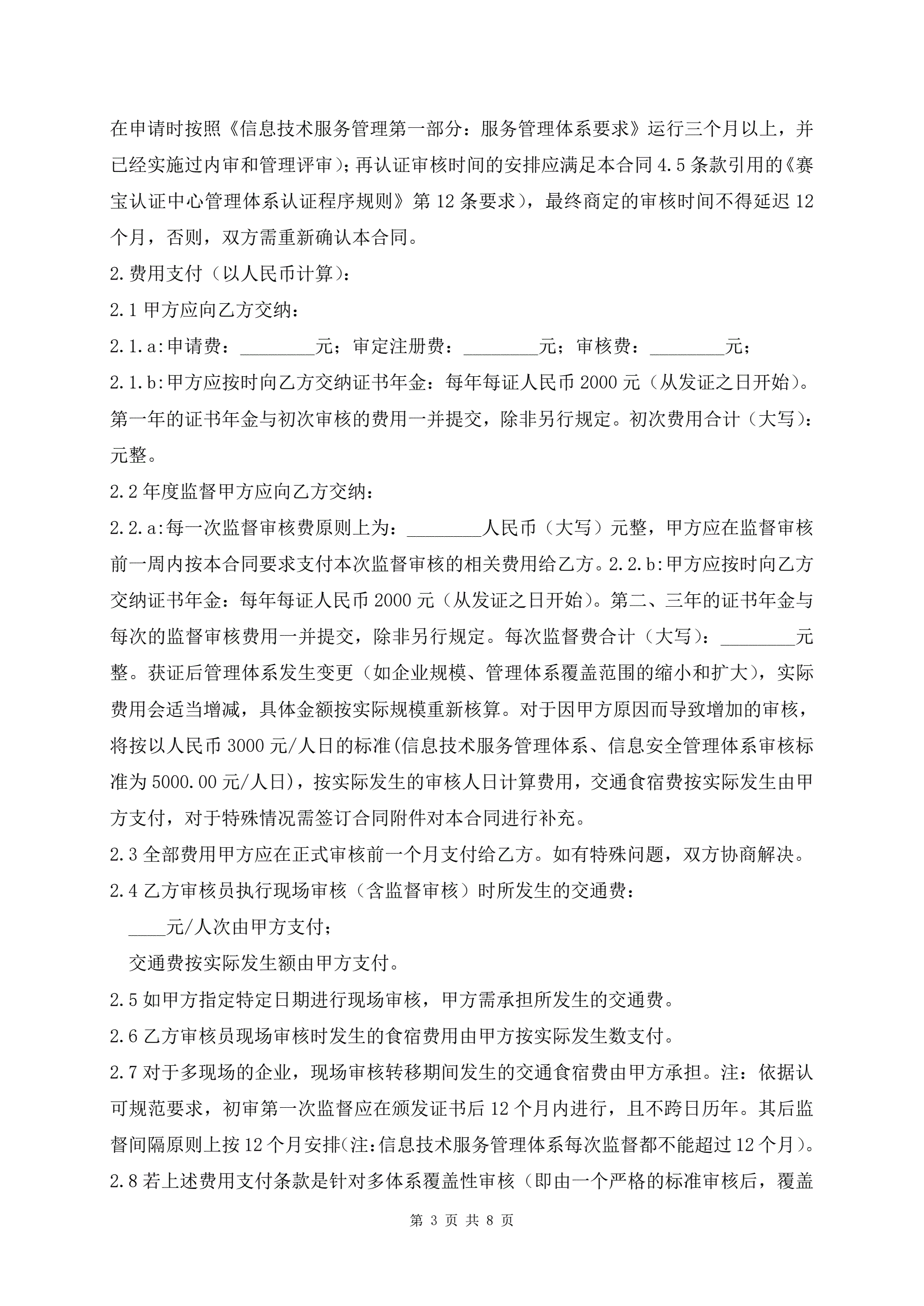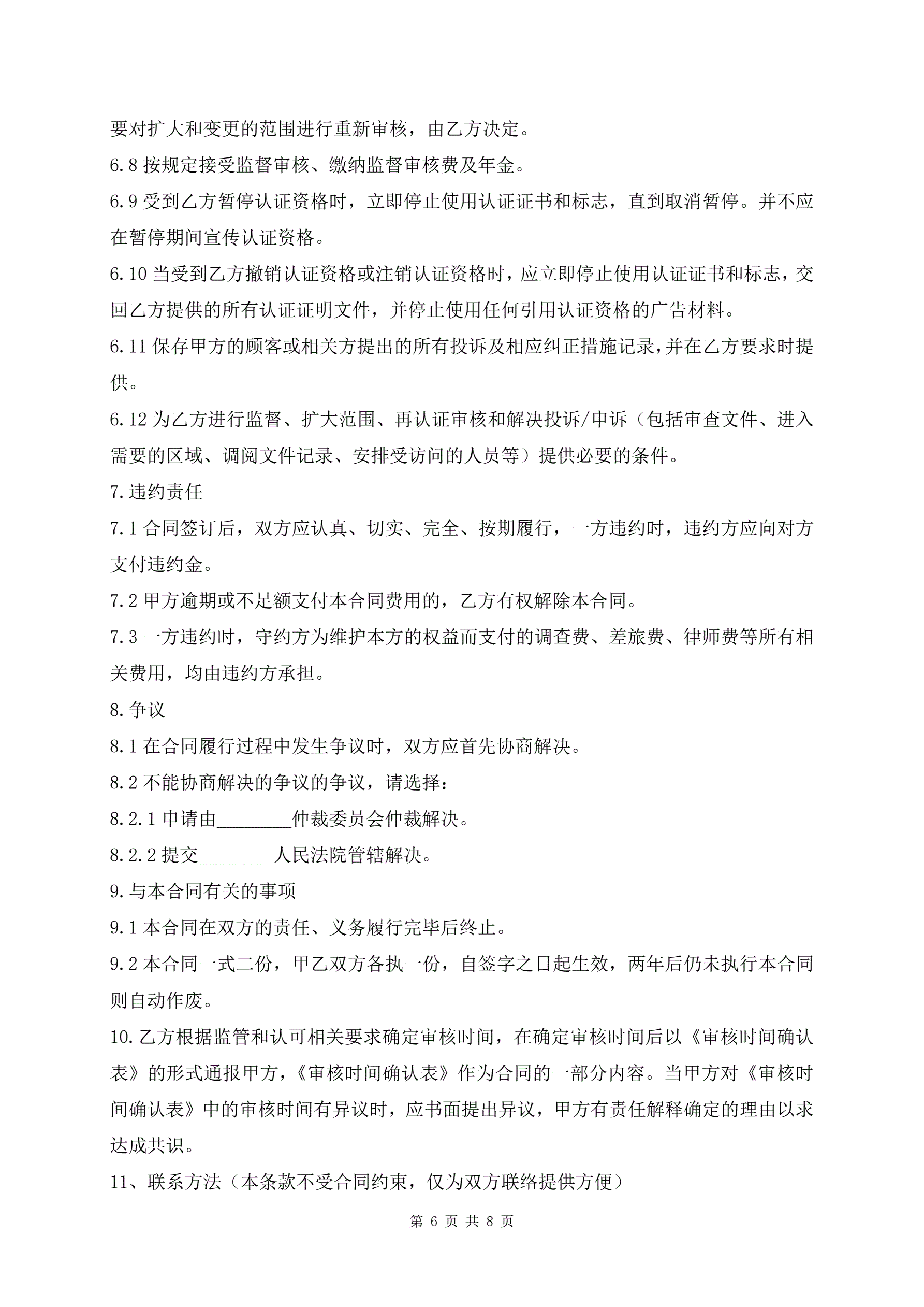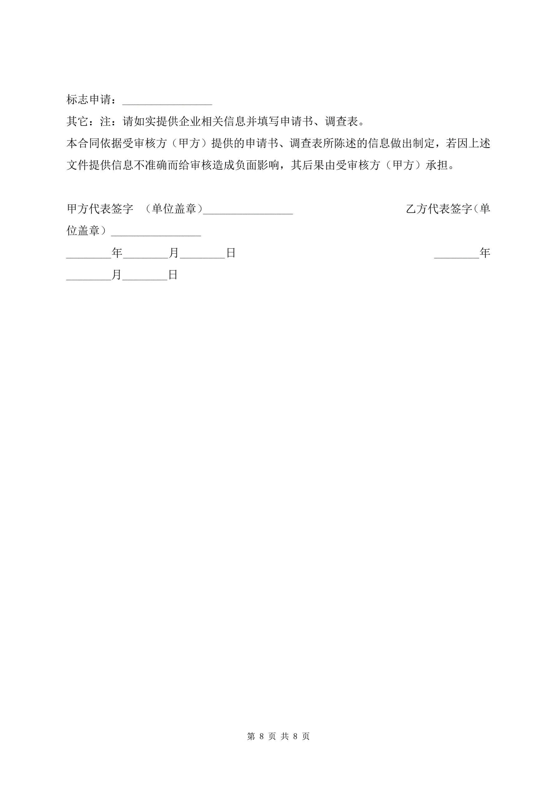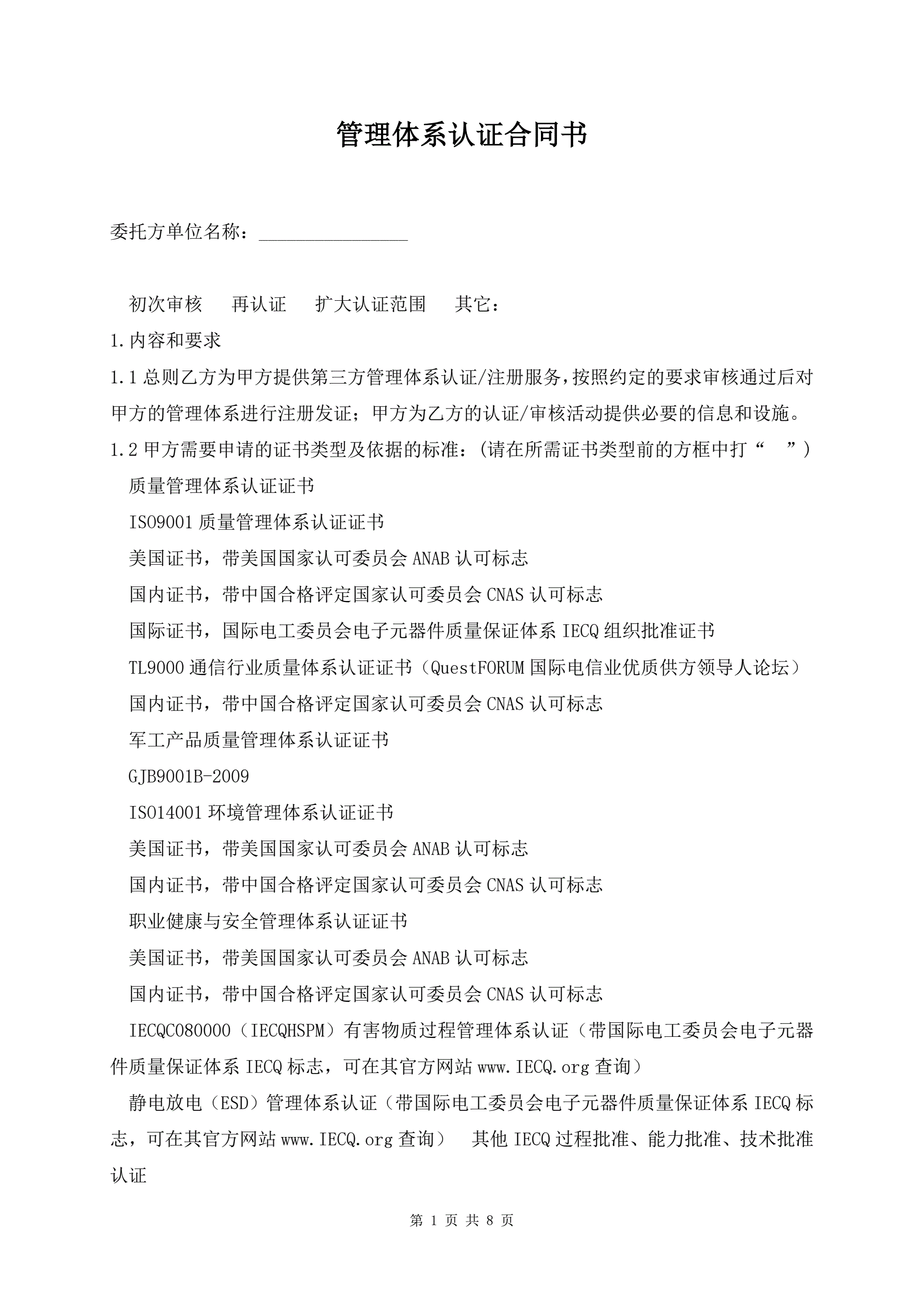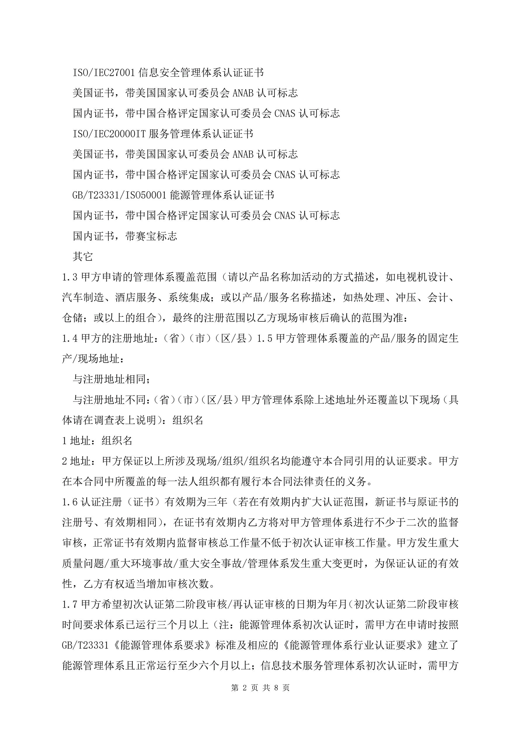 管理体系认证合同书