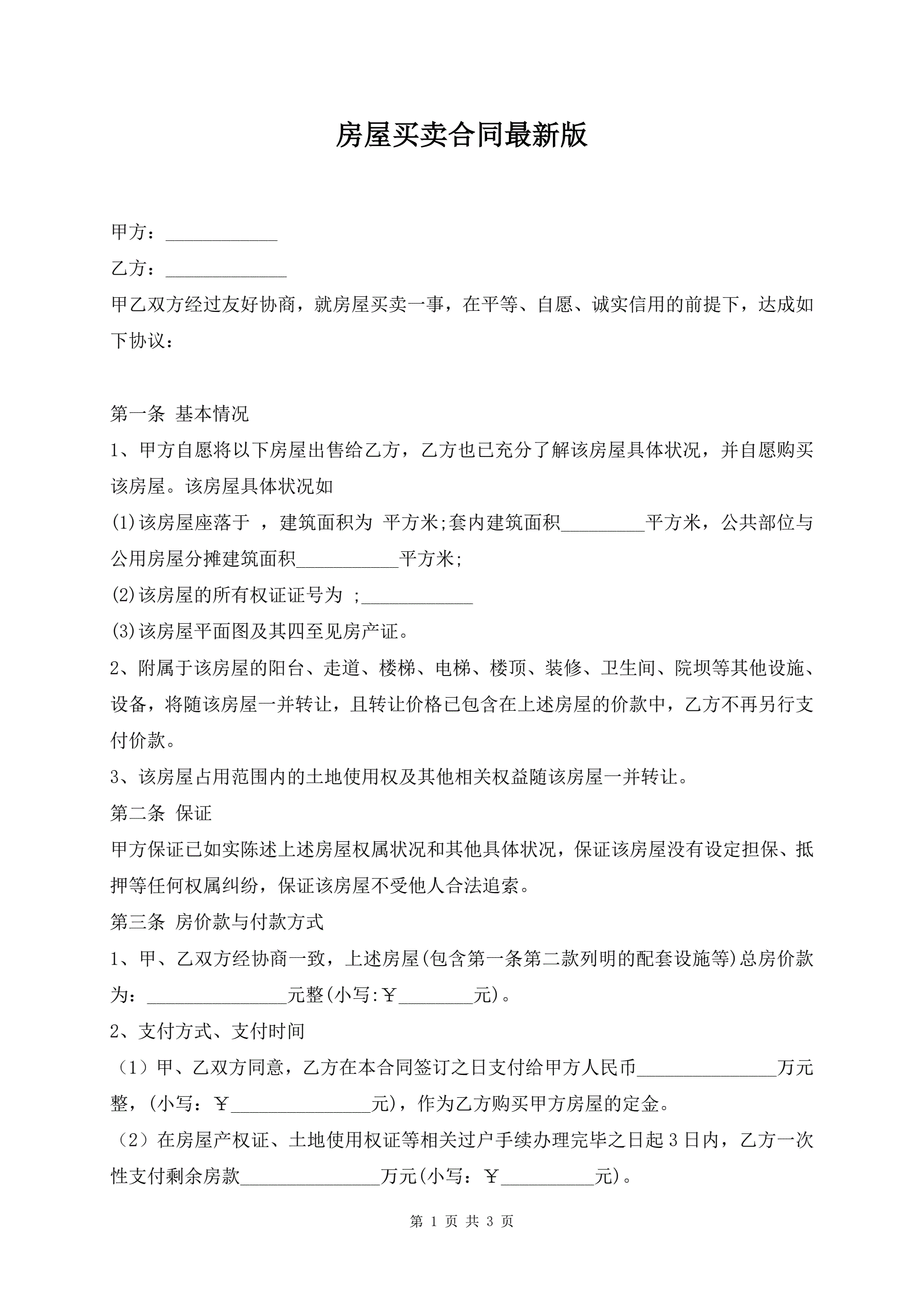房屋买卖合同最新版