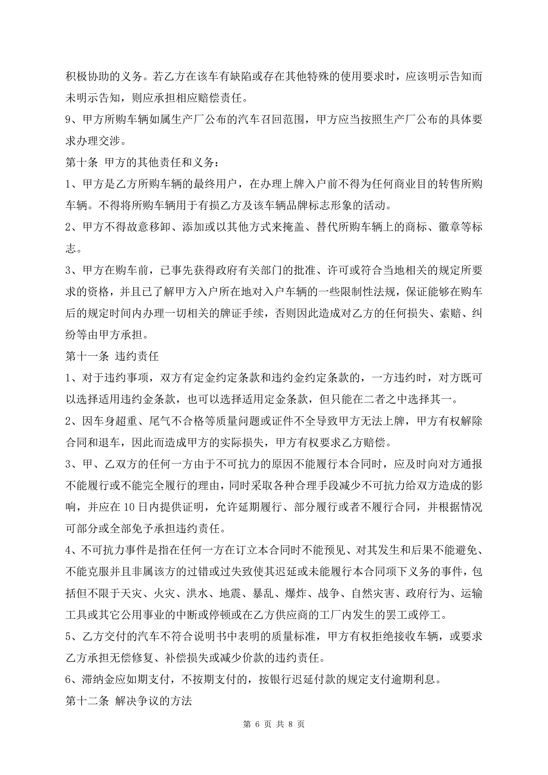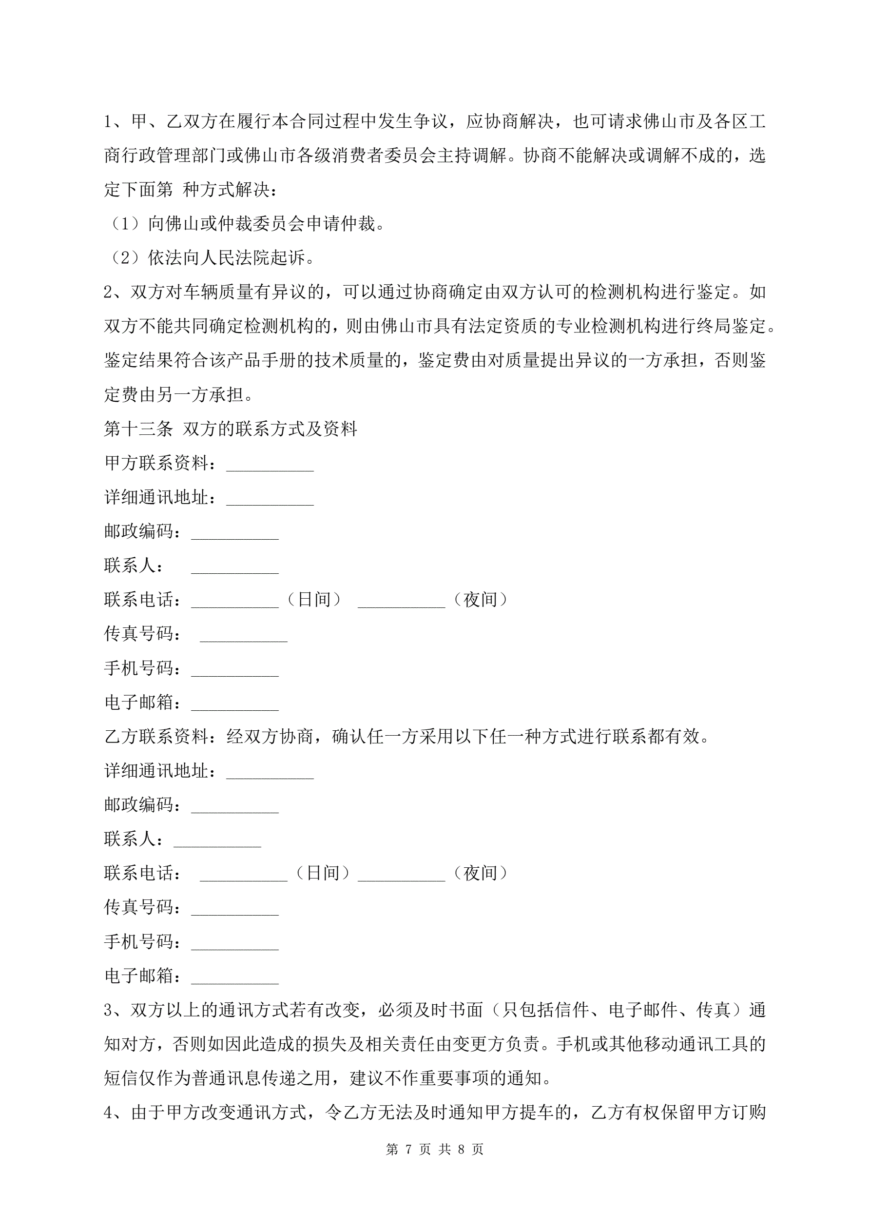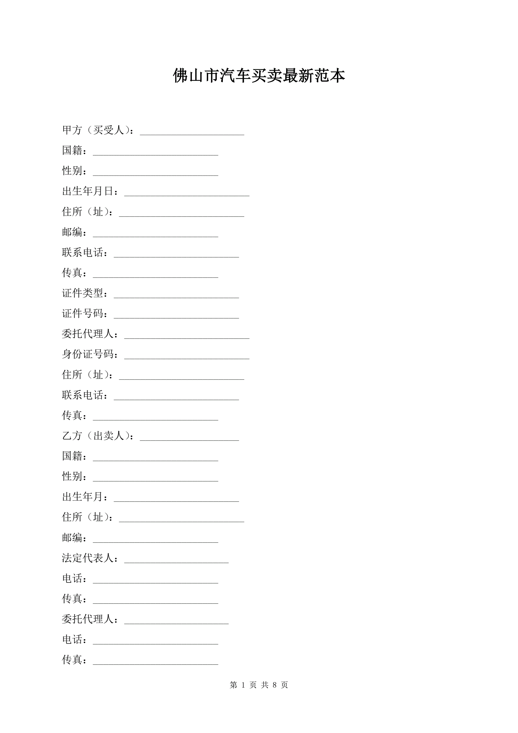 佛山市汽车买卖最新范本