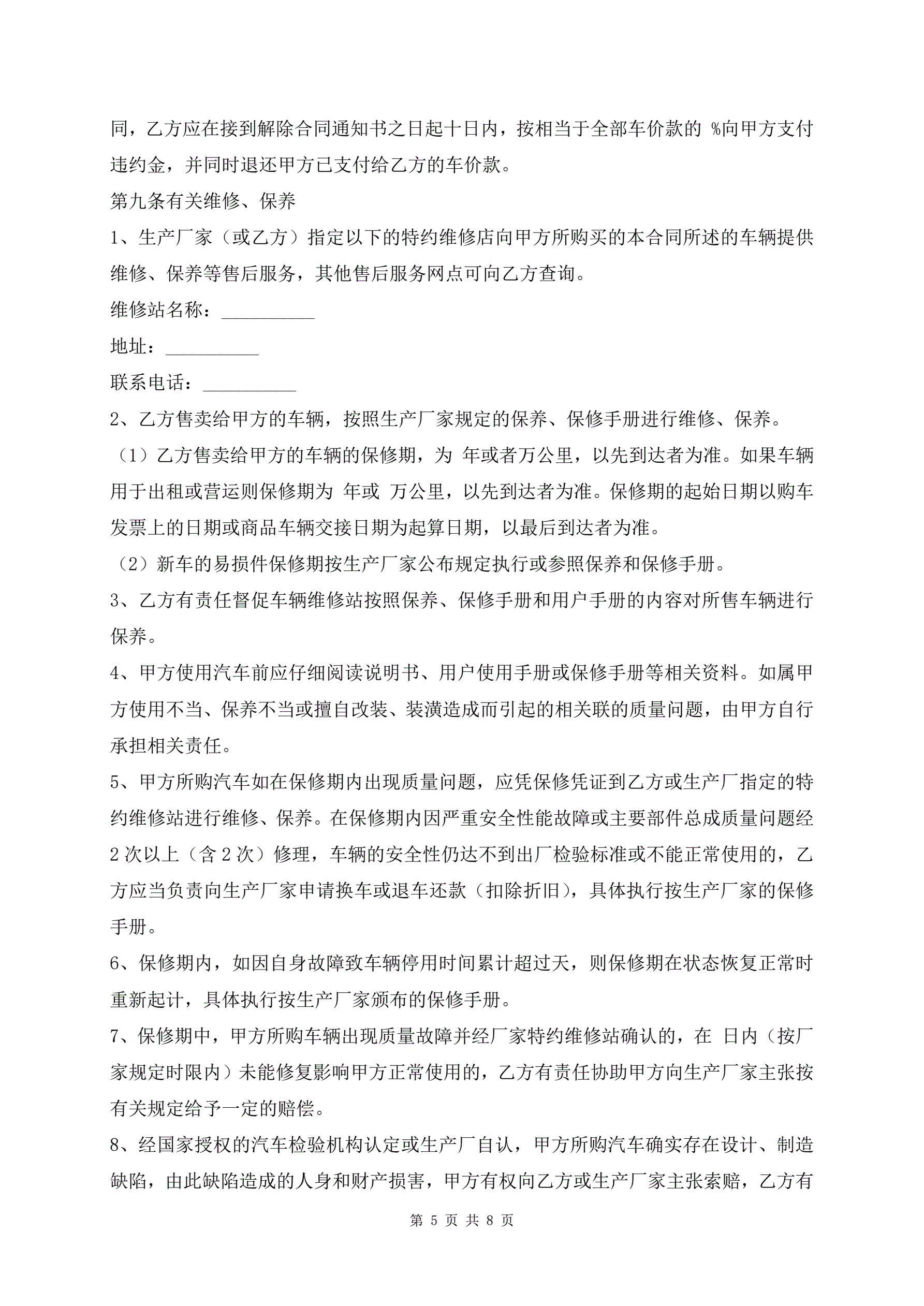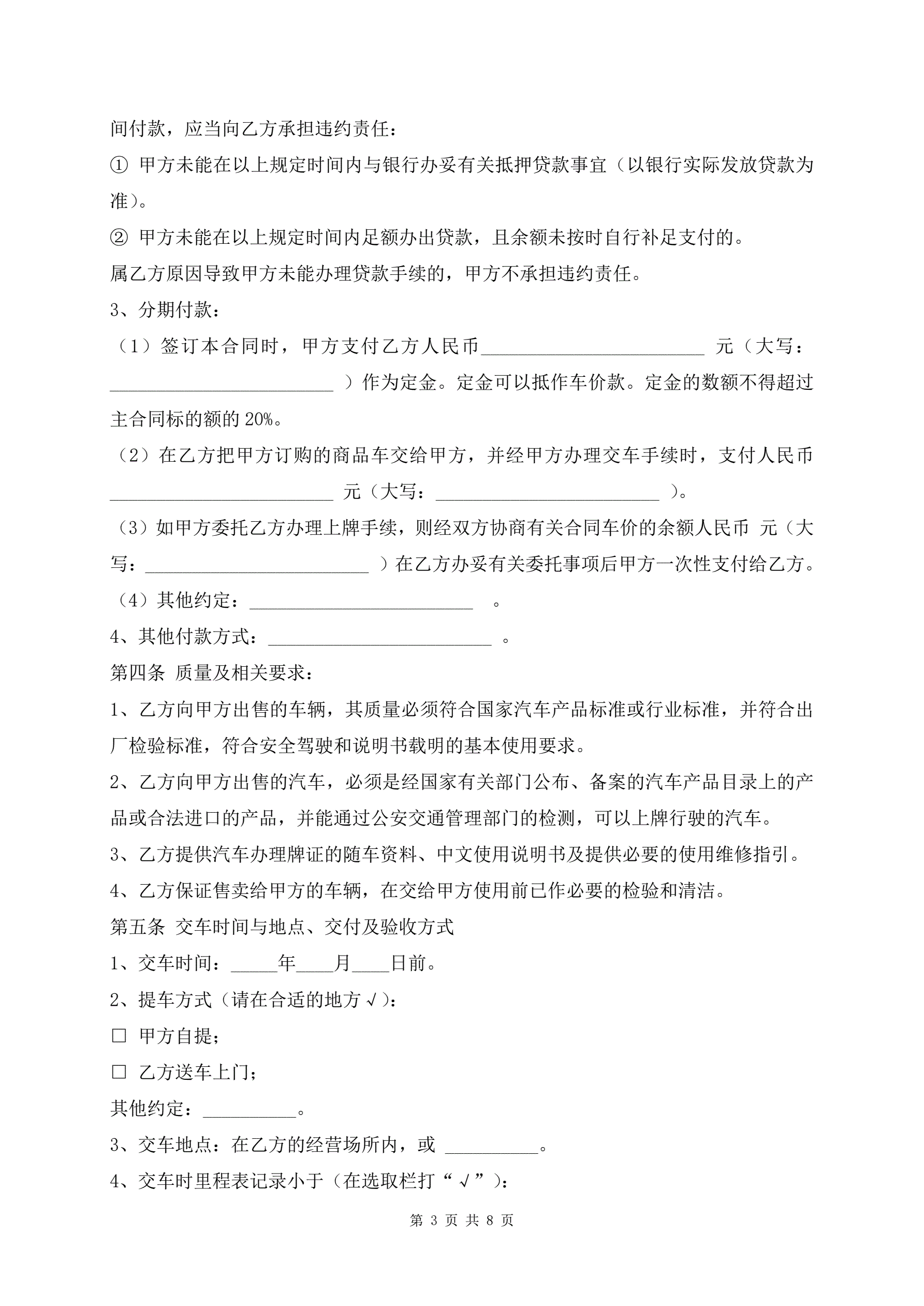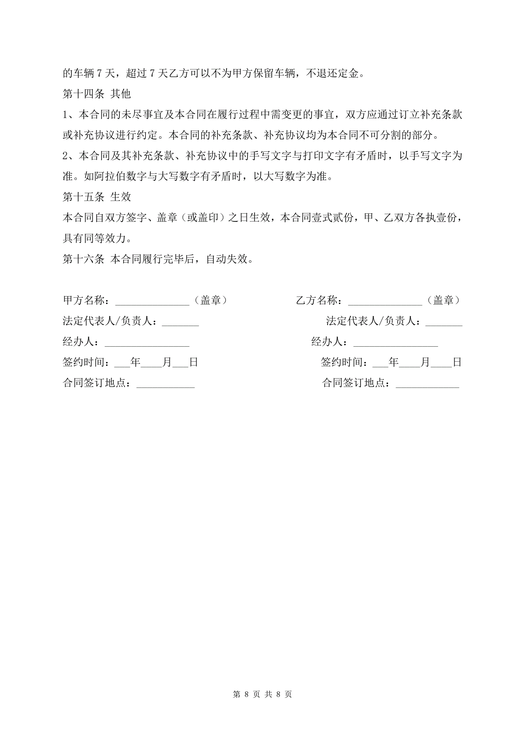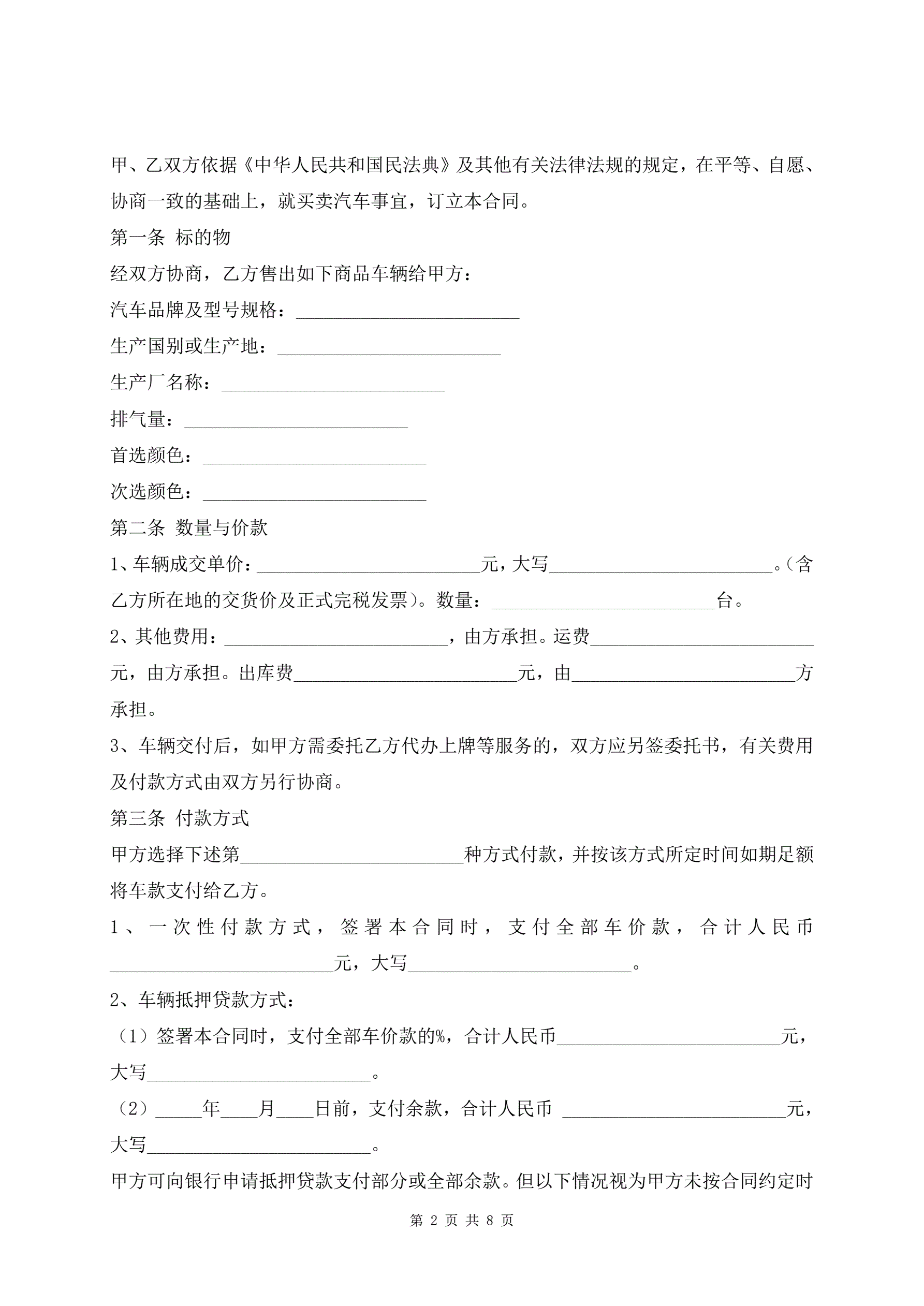 佛山市汽车买卖最新范本