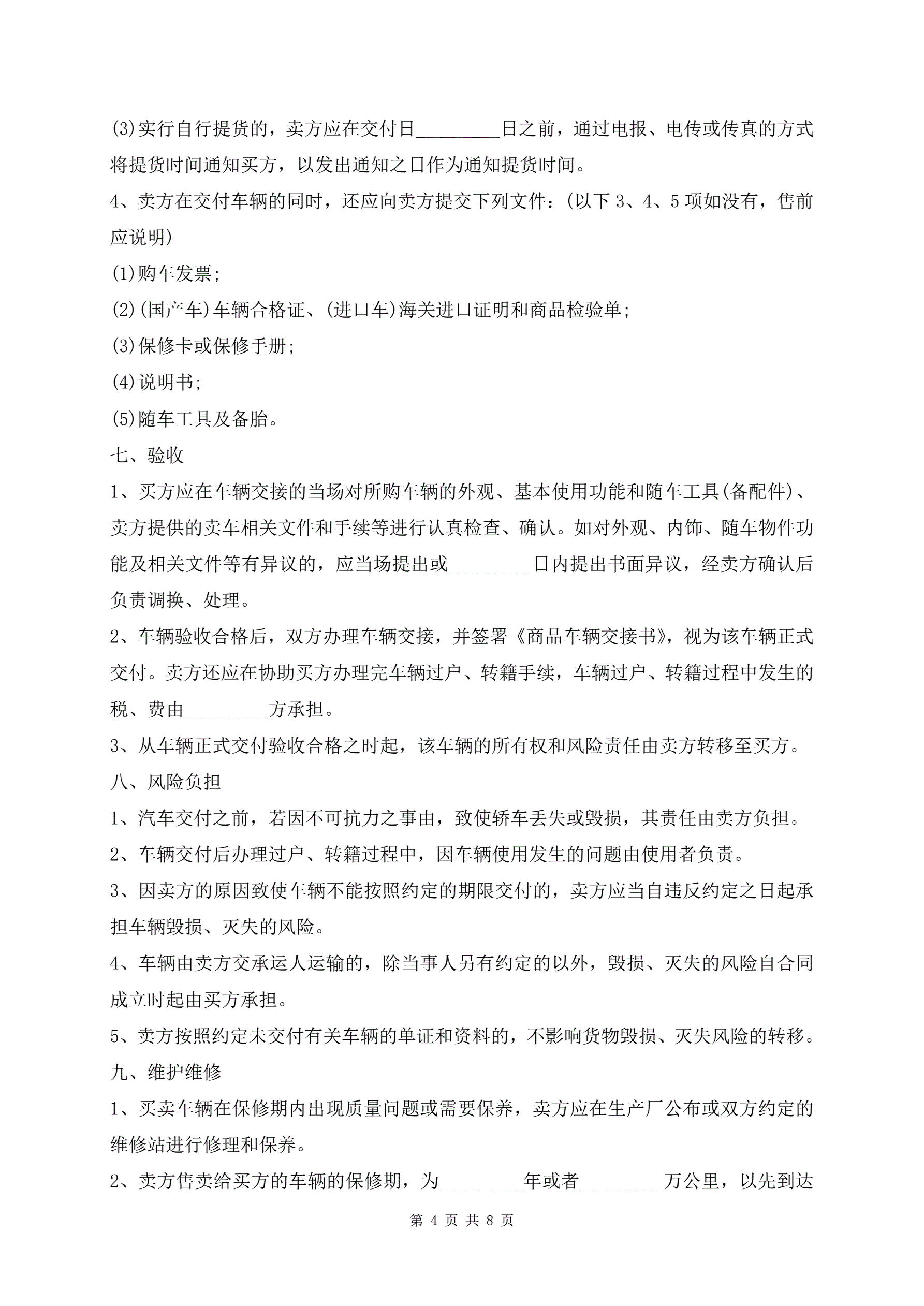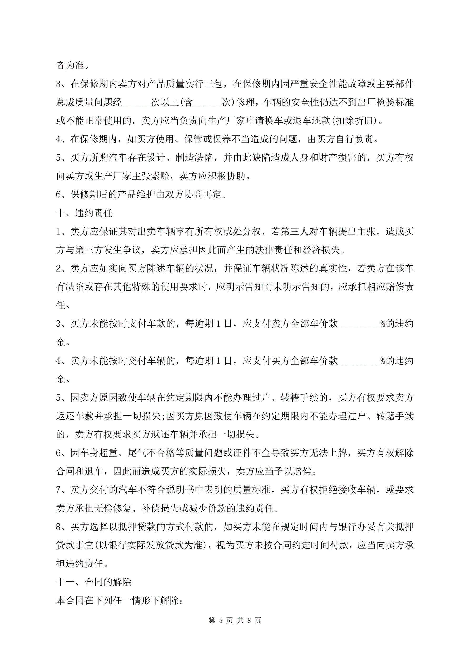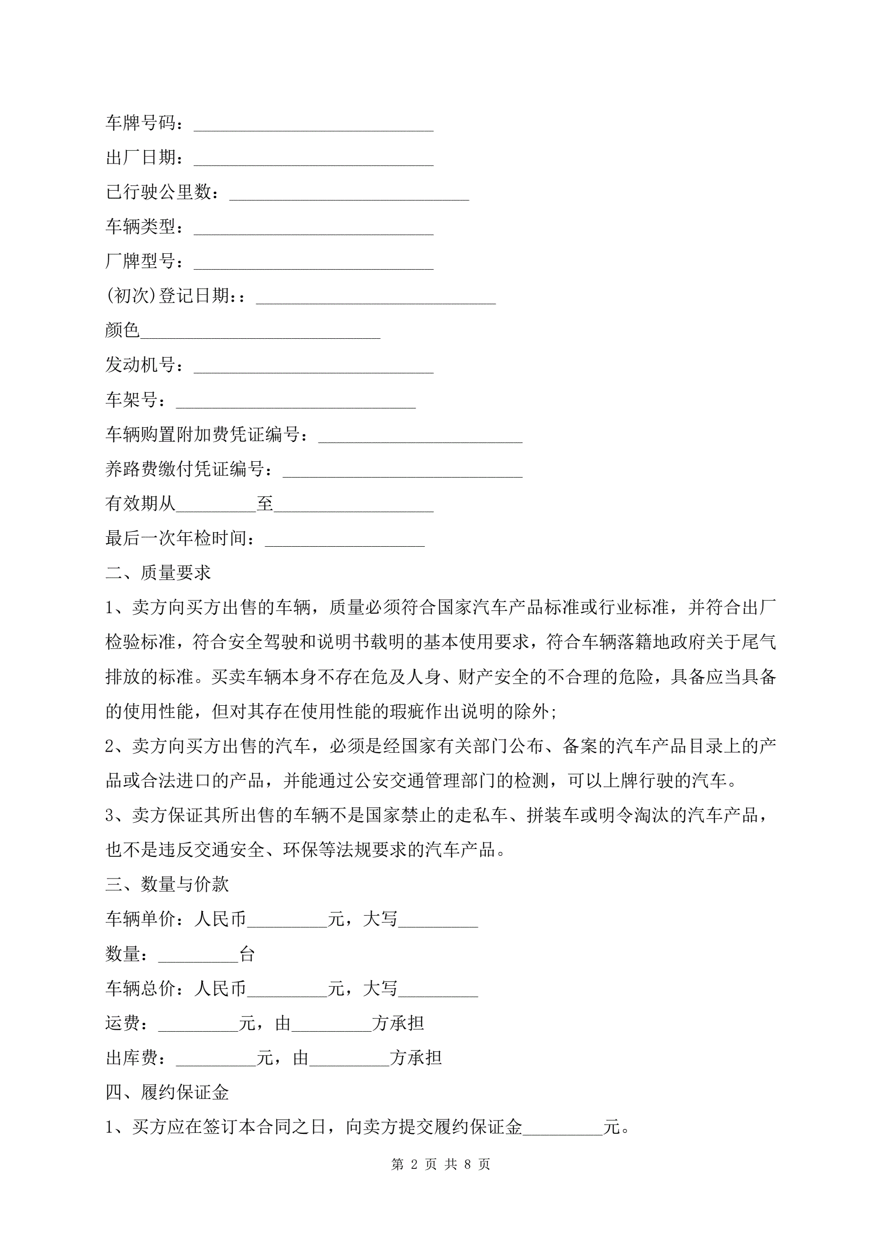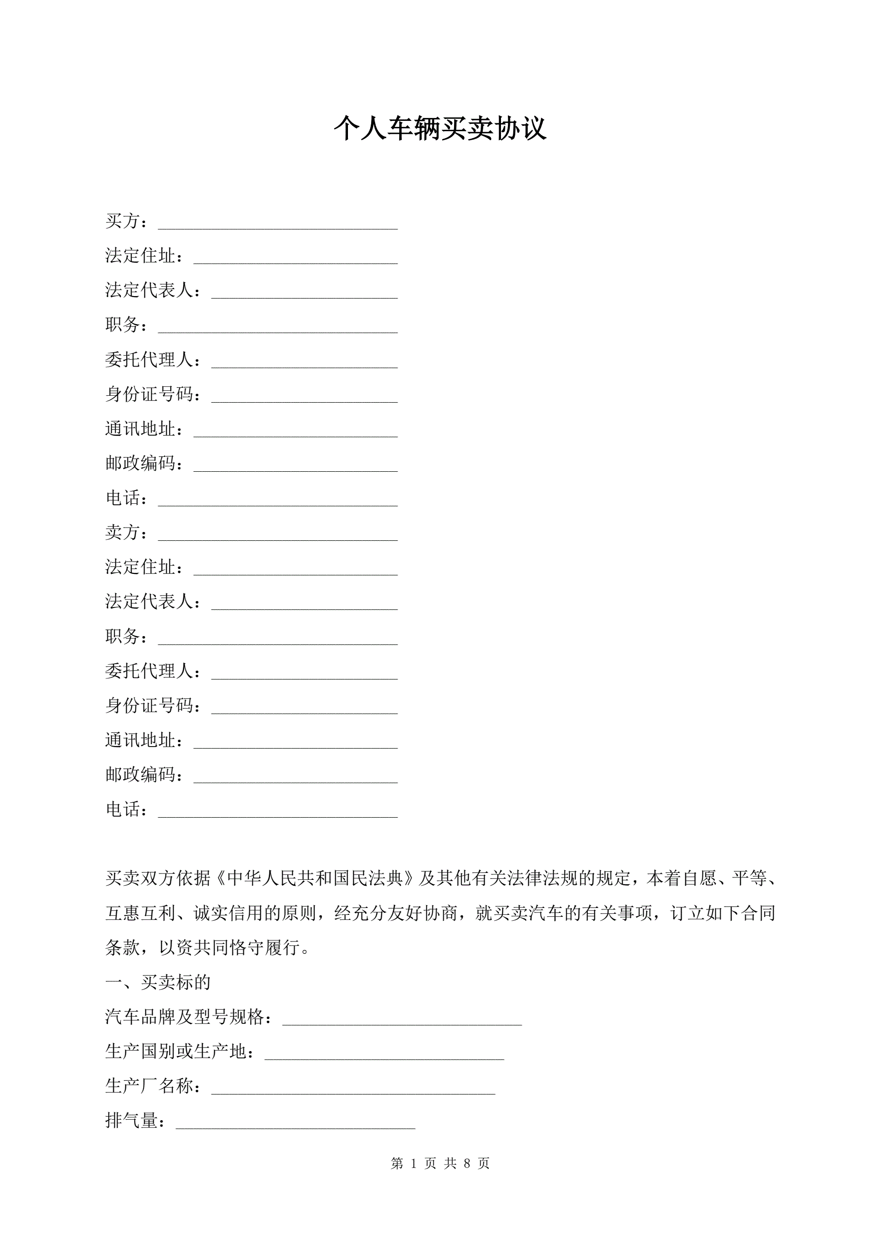 个人车辆买卖协议