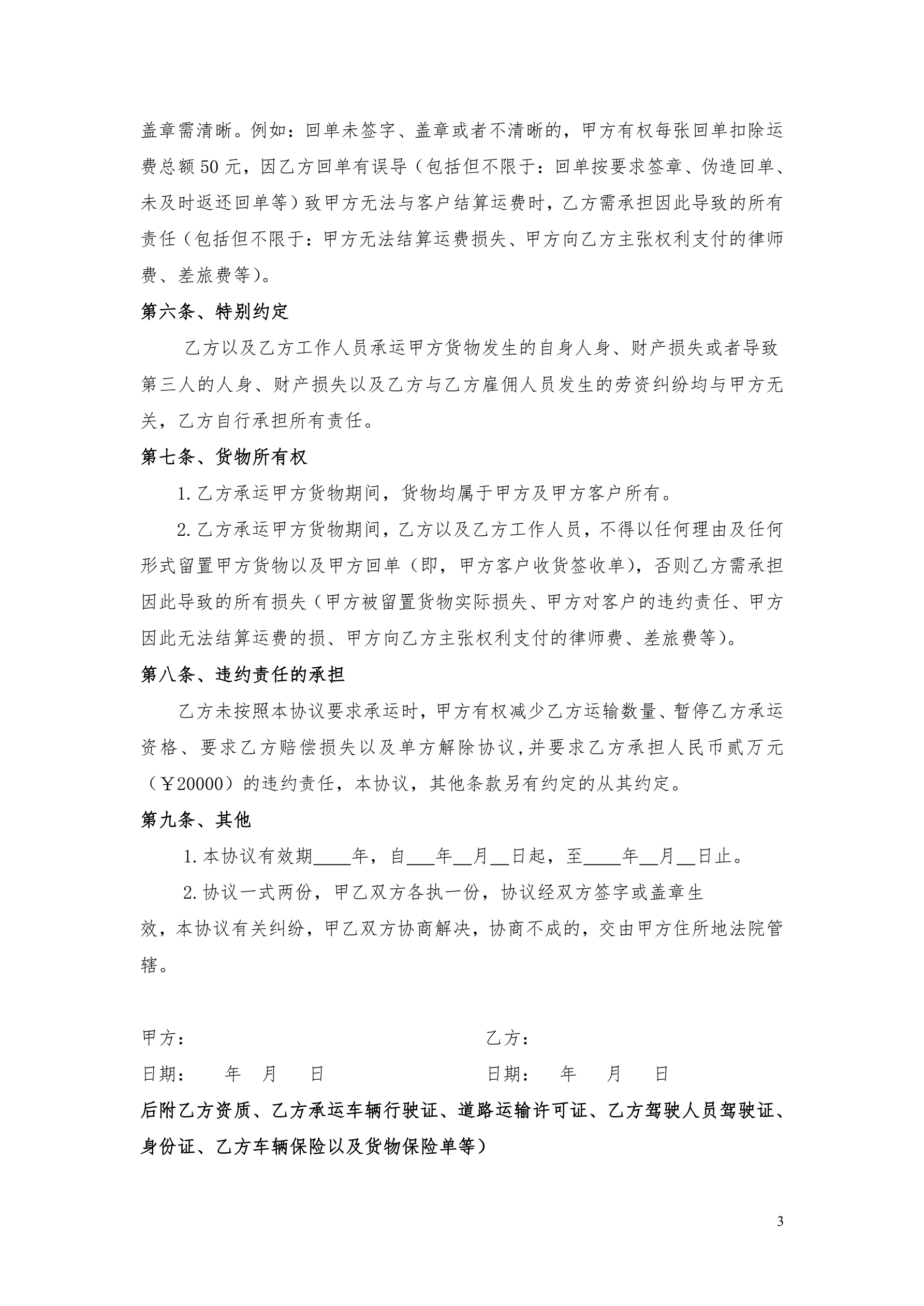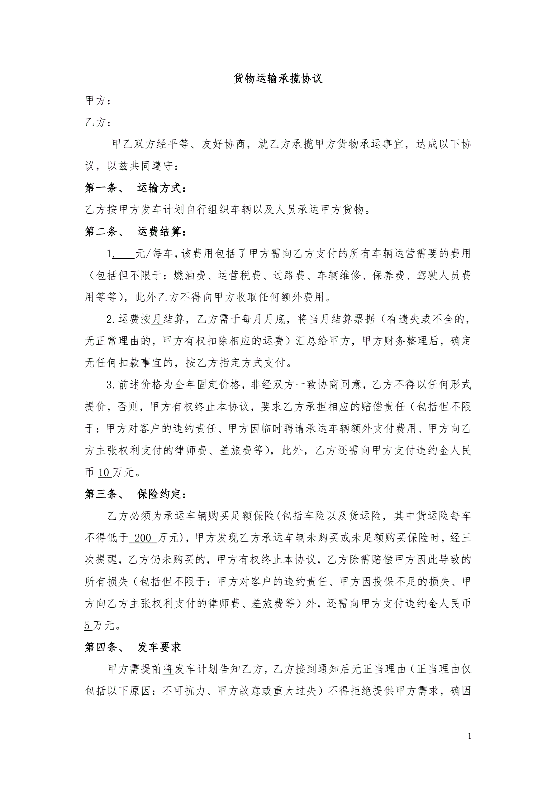 >运输合同(与车队签订)