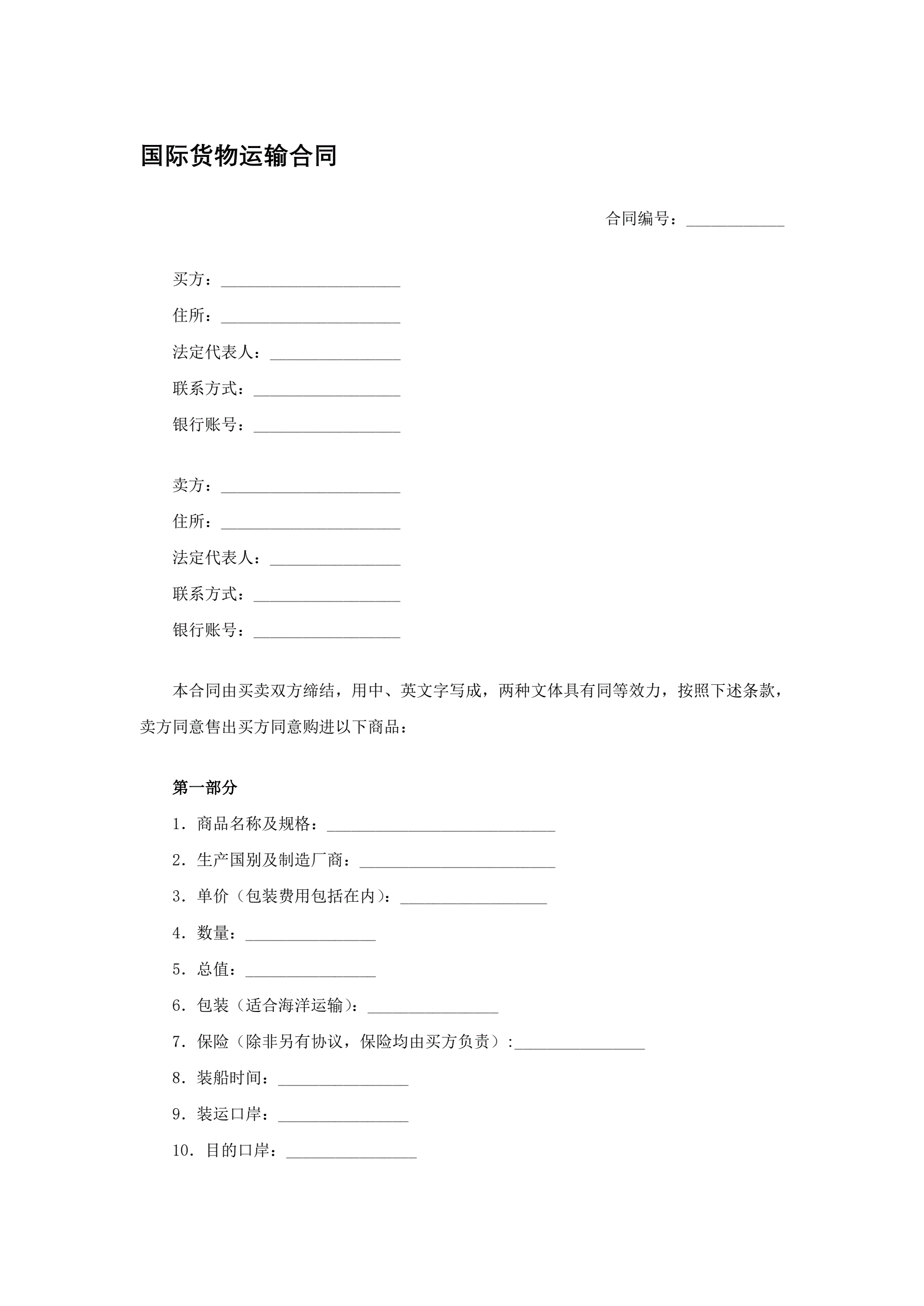 国际货物运输合同