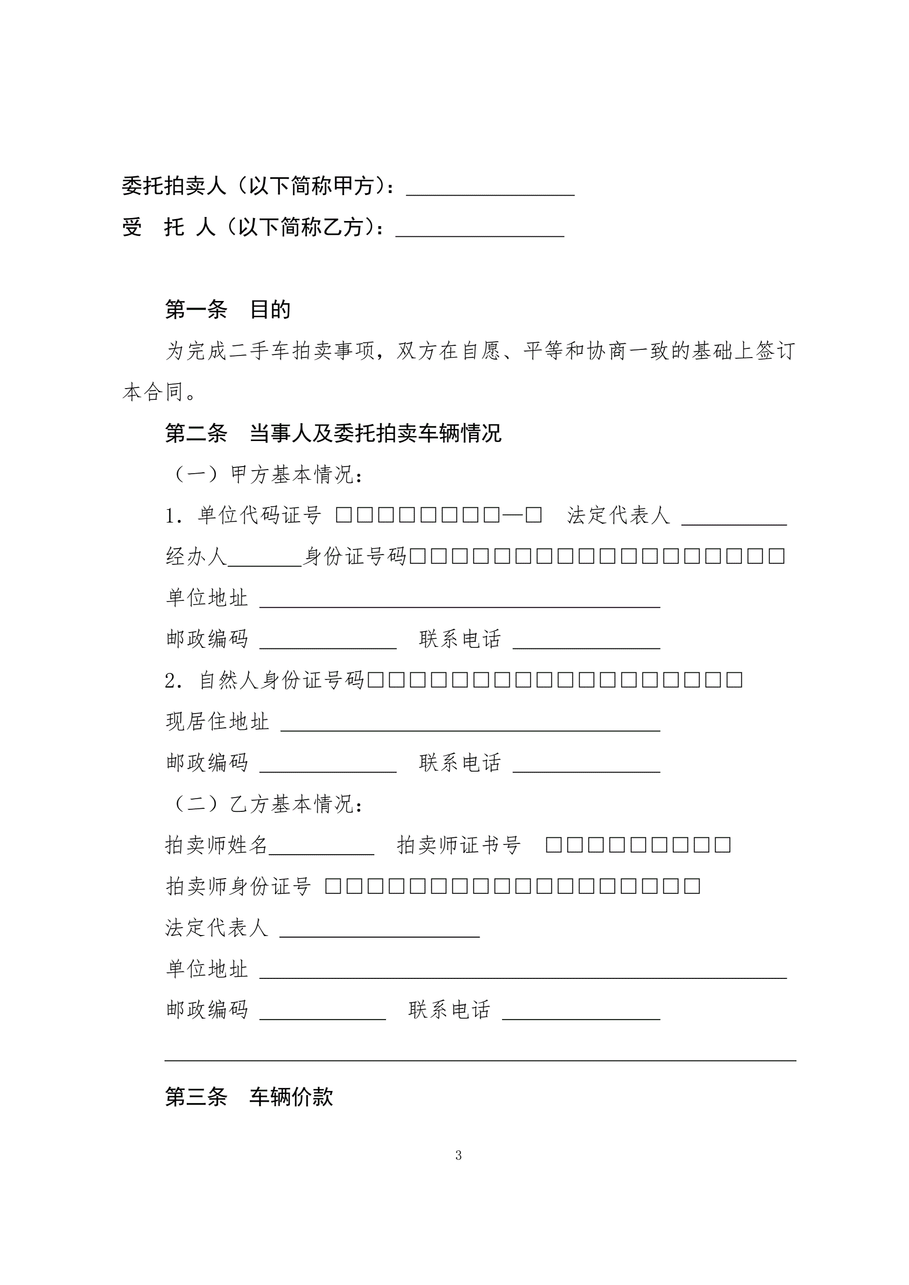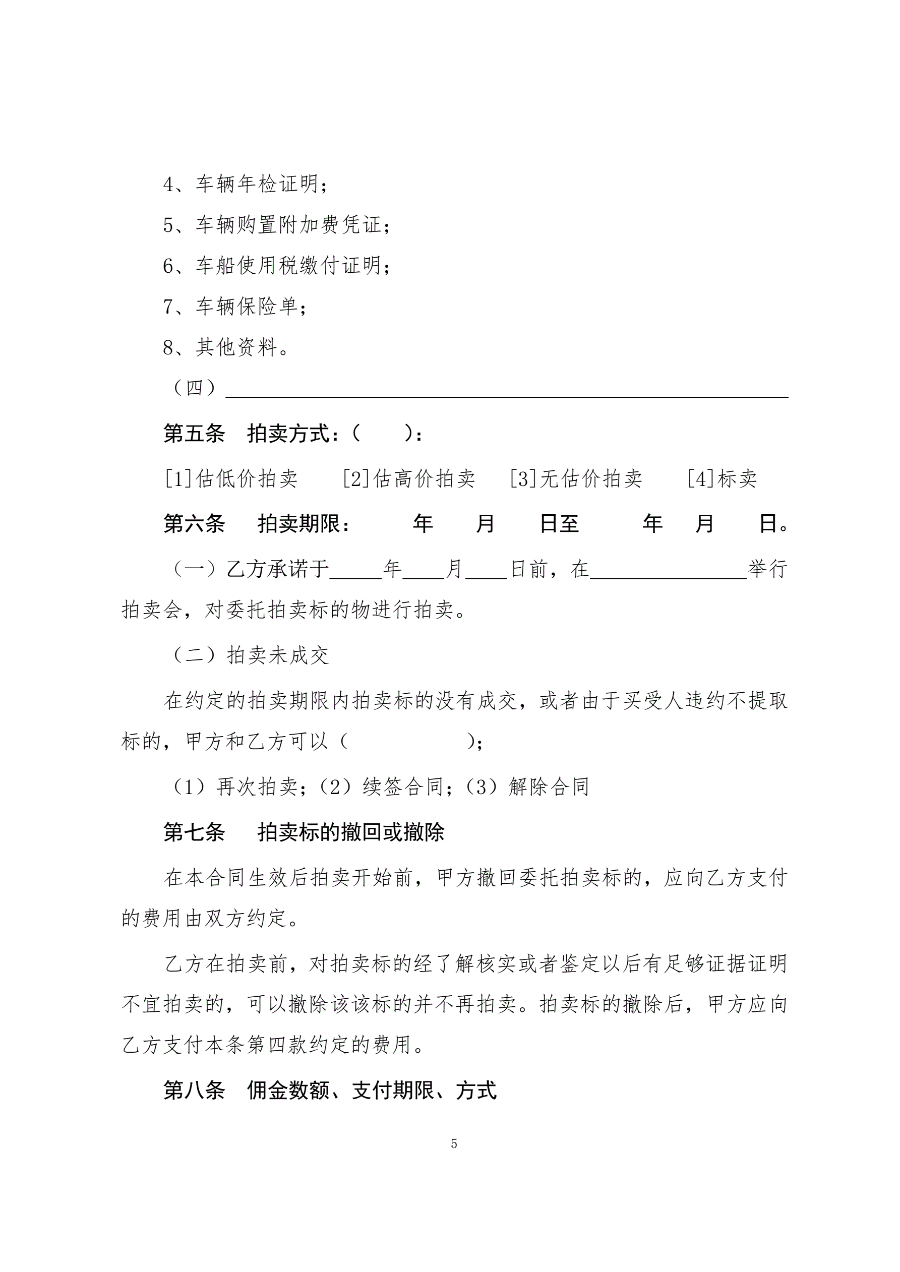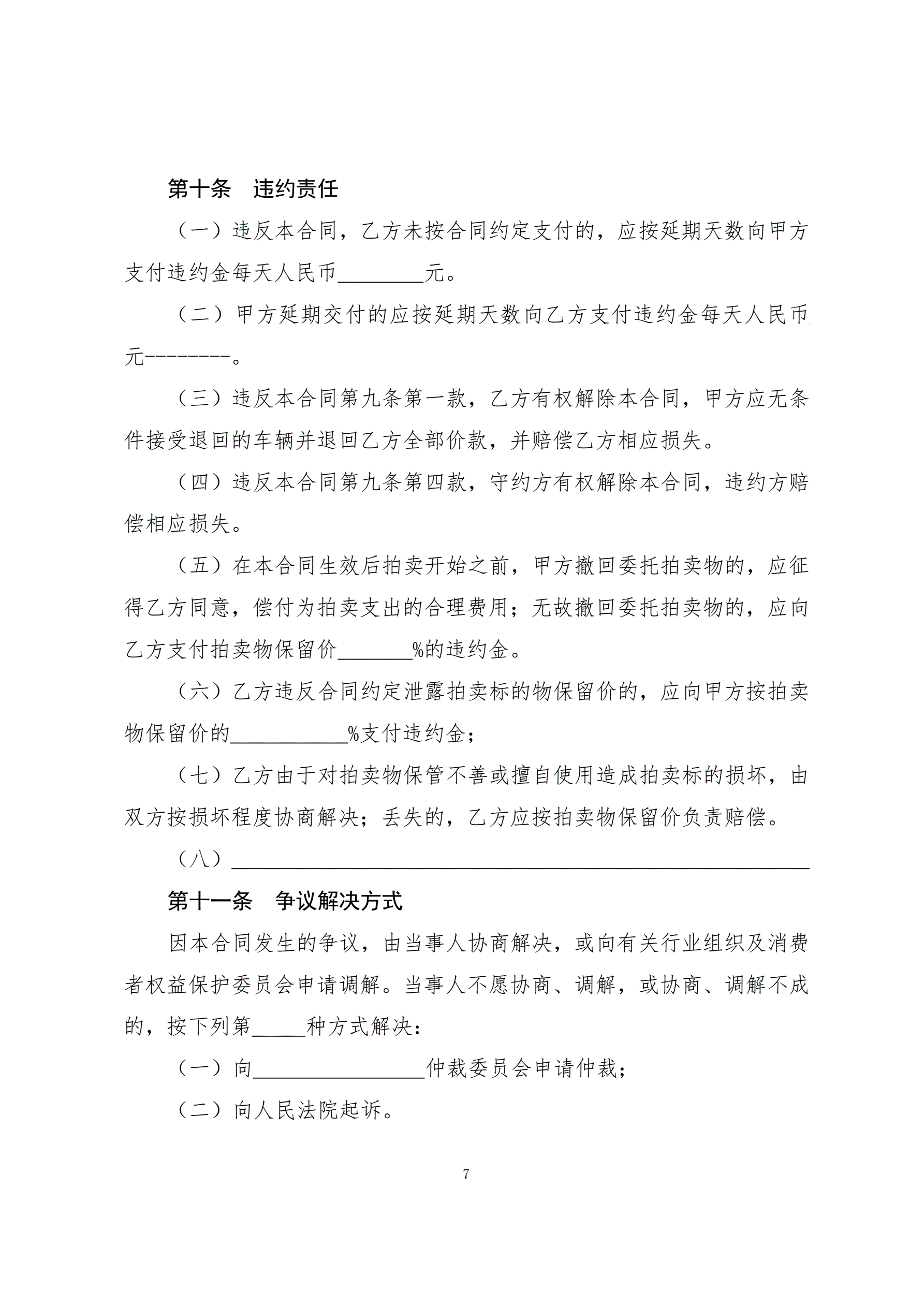 7二手车委托拍卖合同