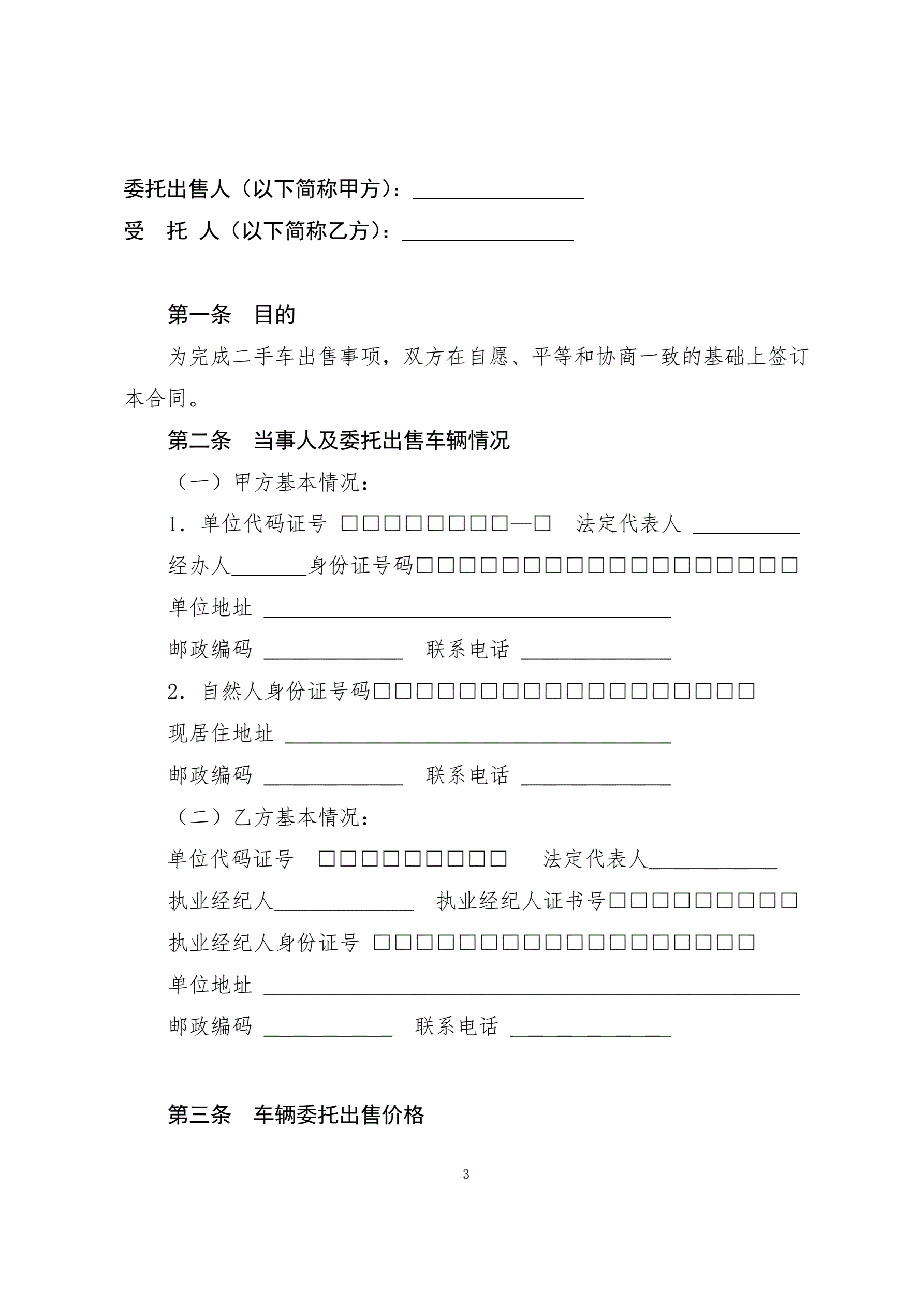 >4二手车委托出售合同