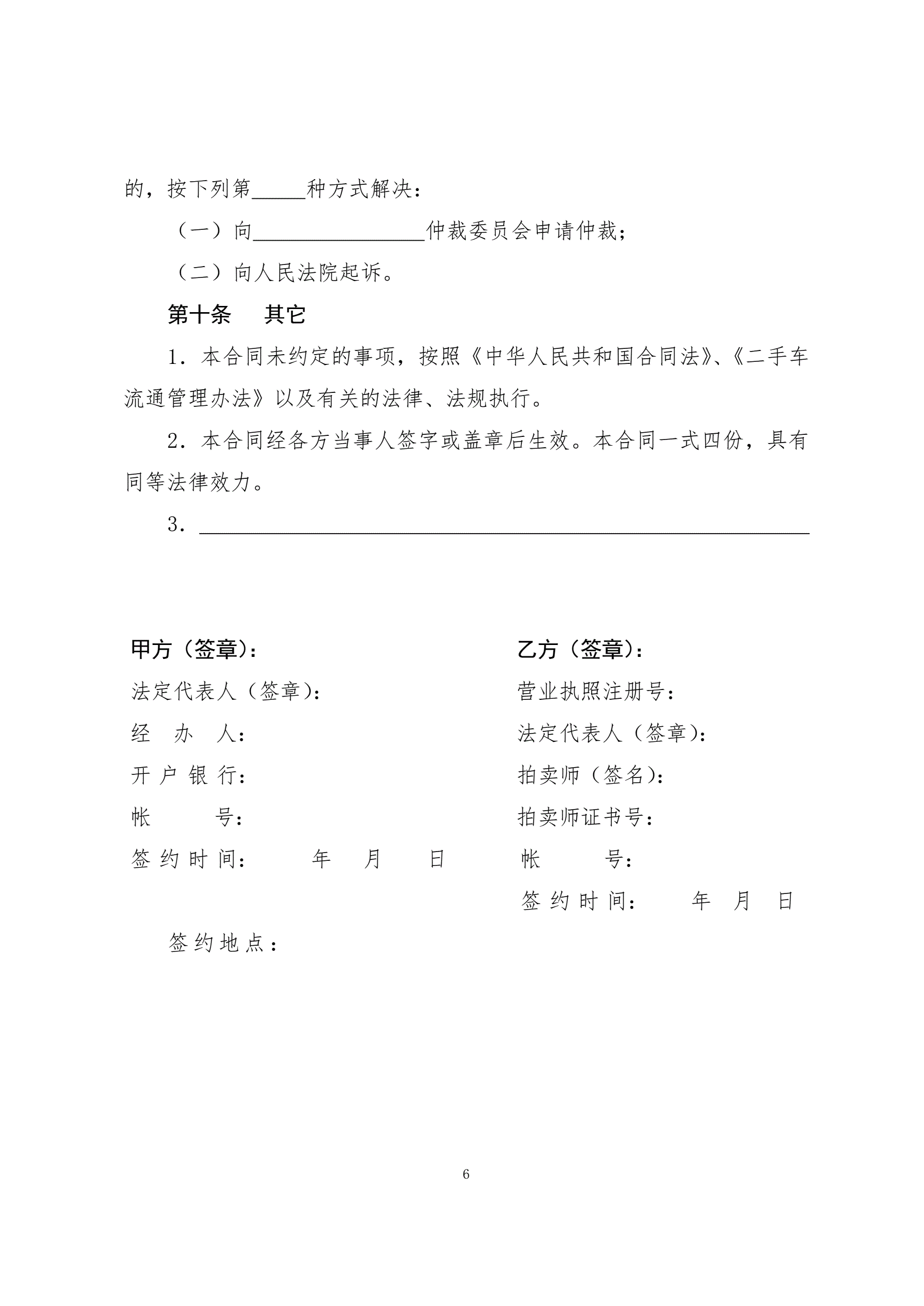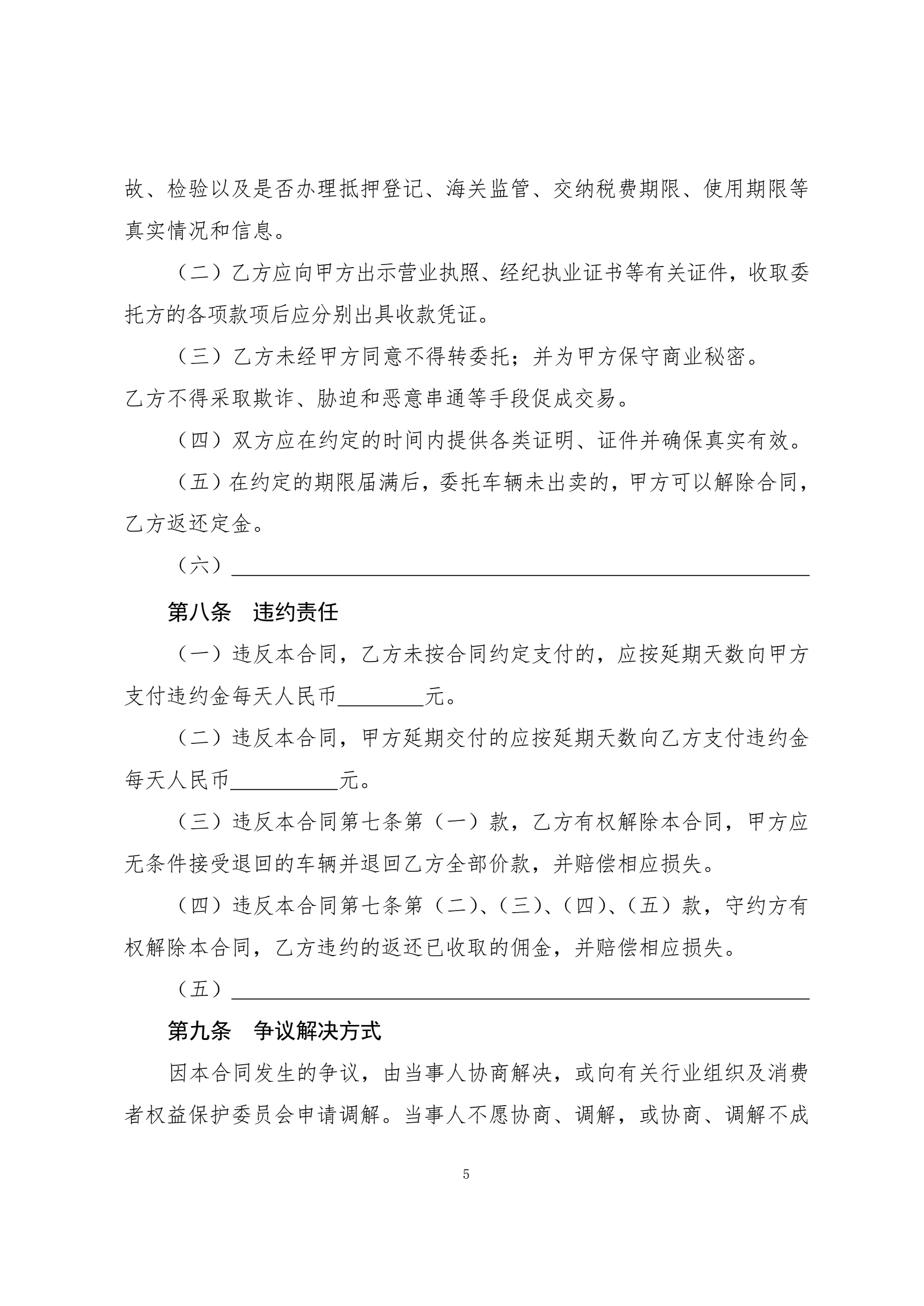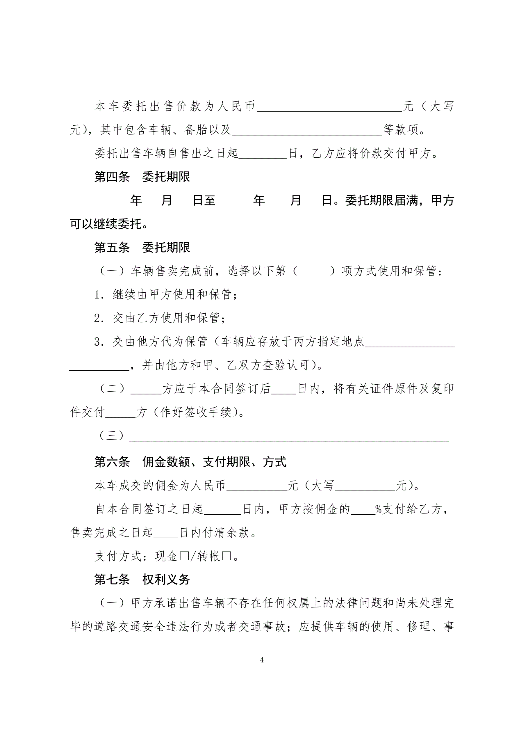 4二手车委托出售合同