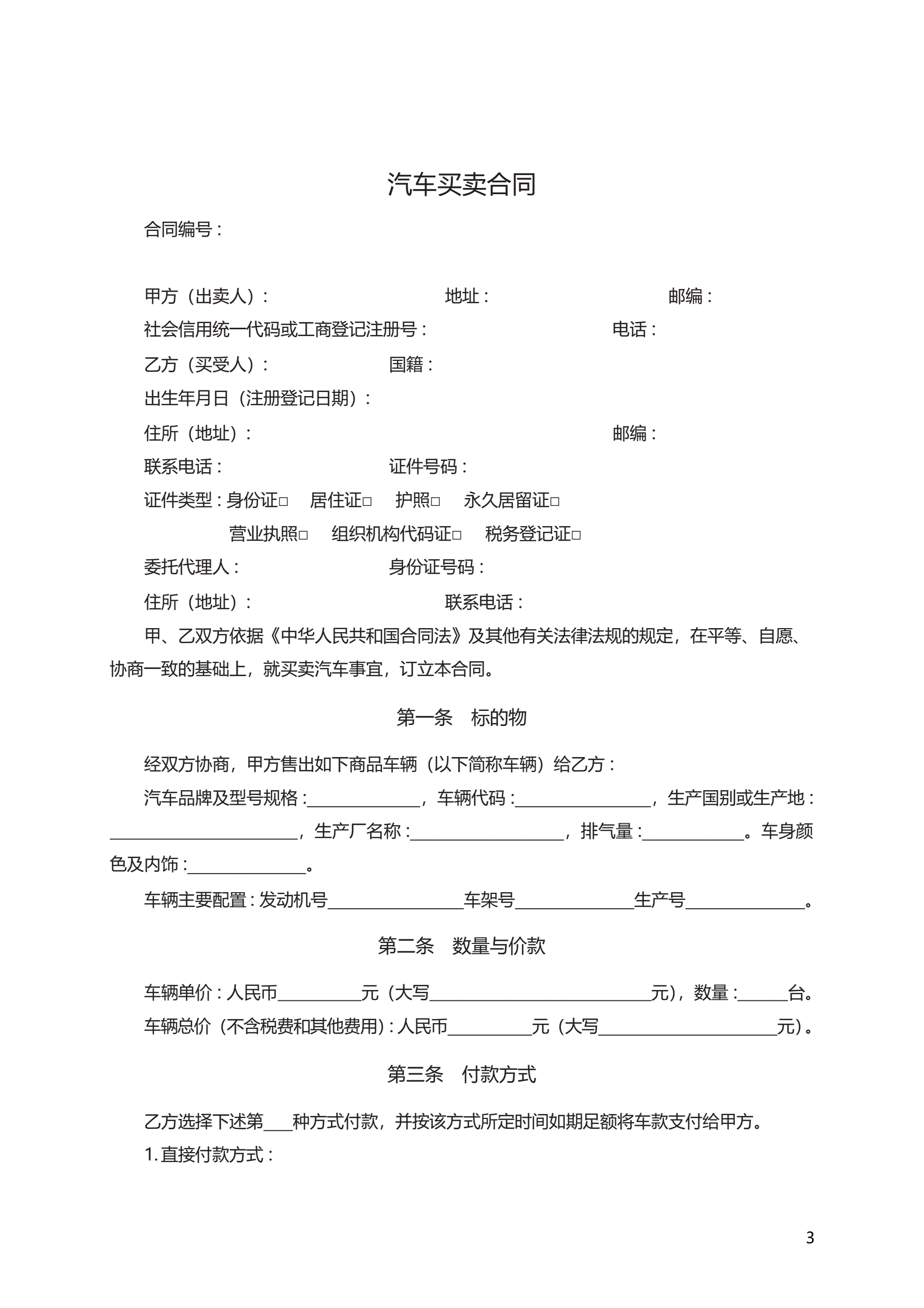 >汽车买卖合同 GF—2015—0121